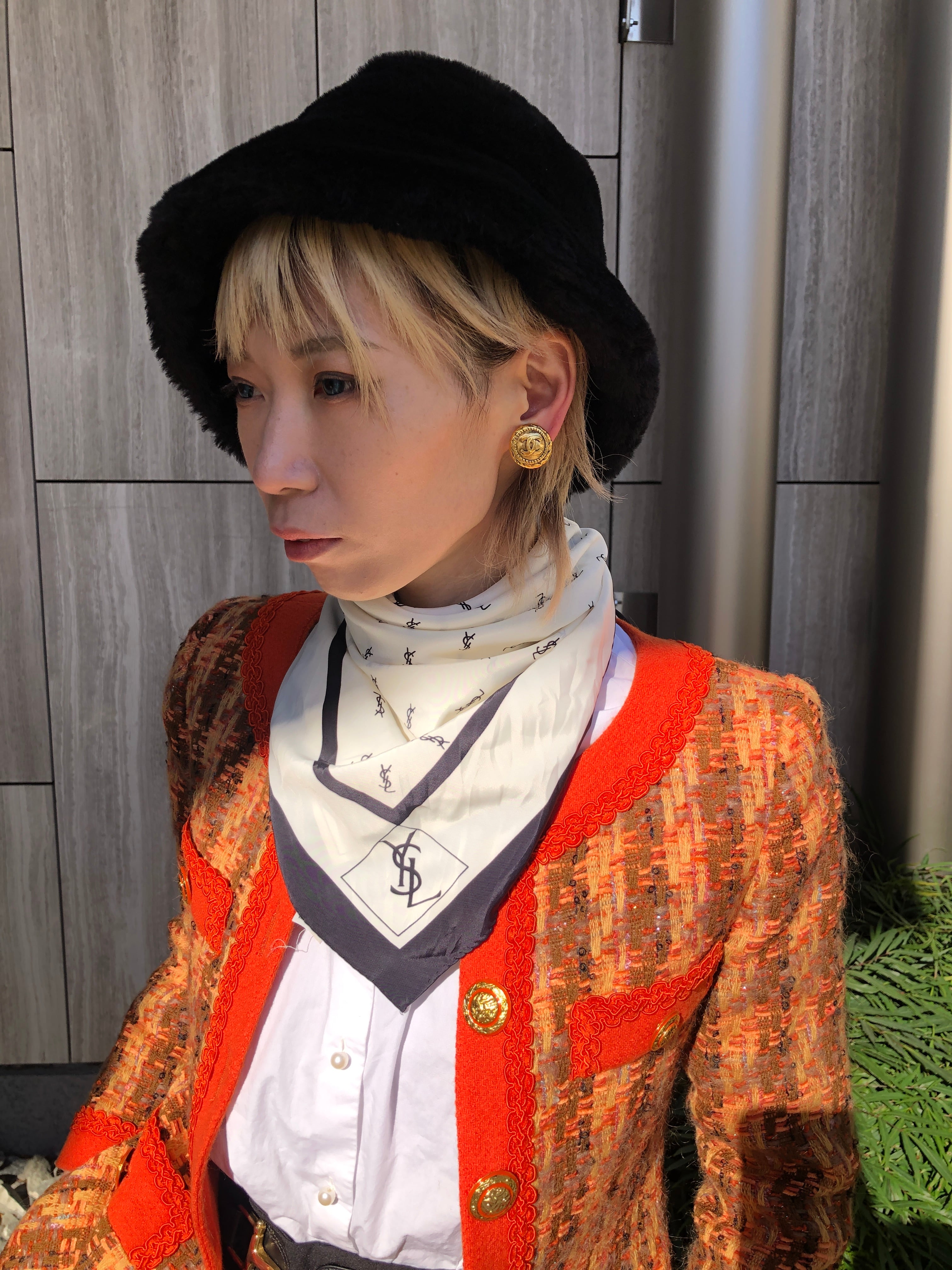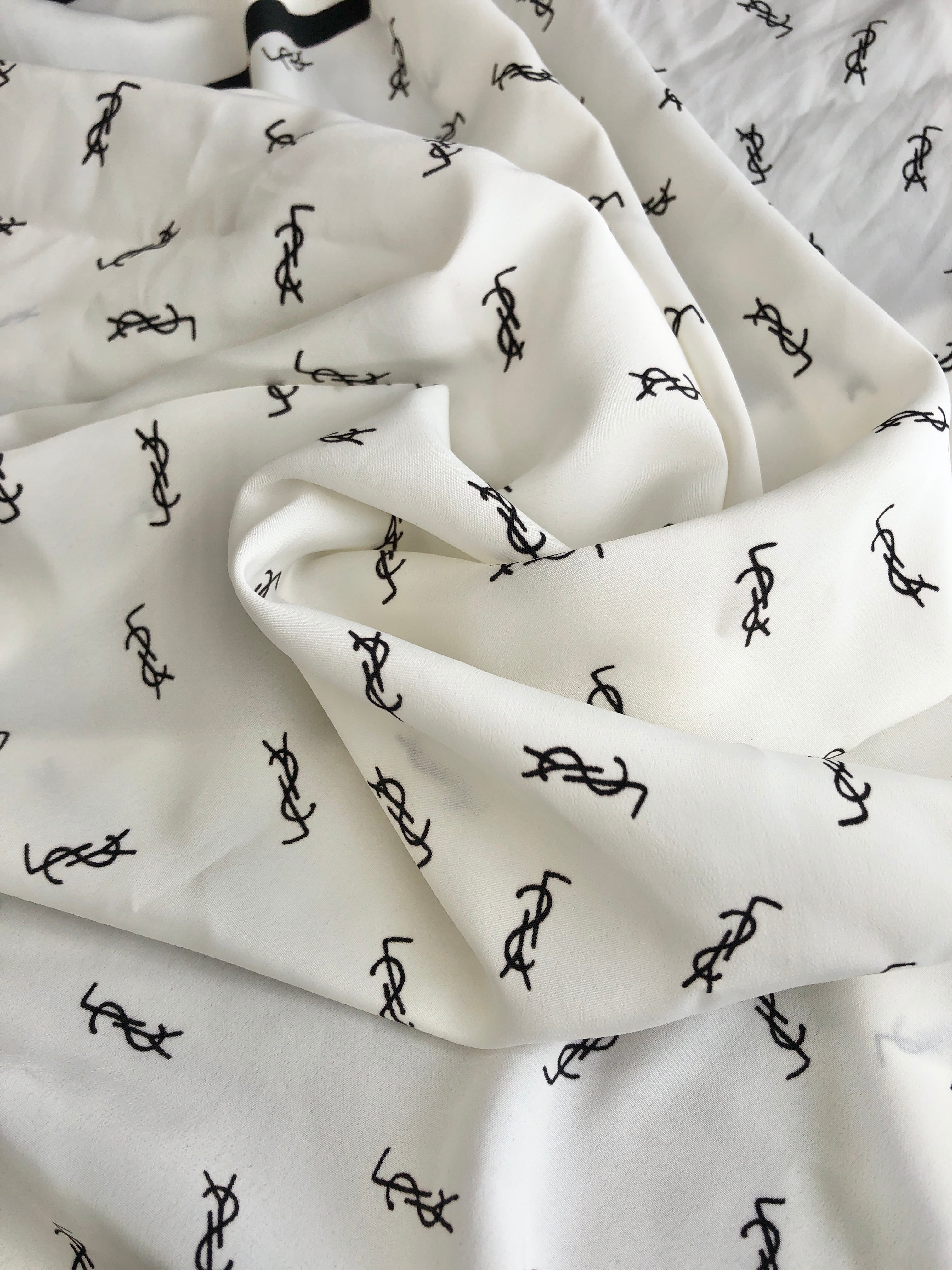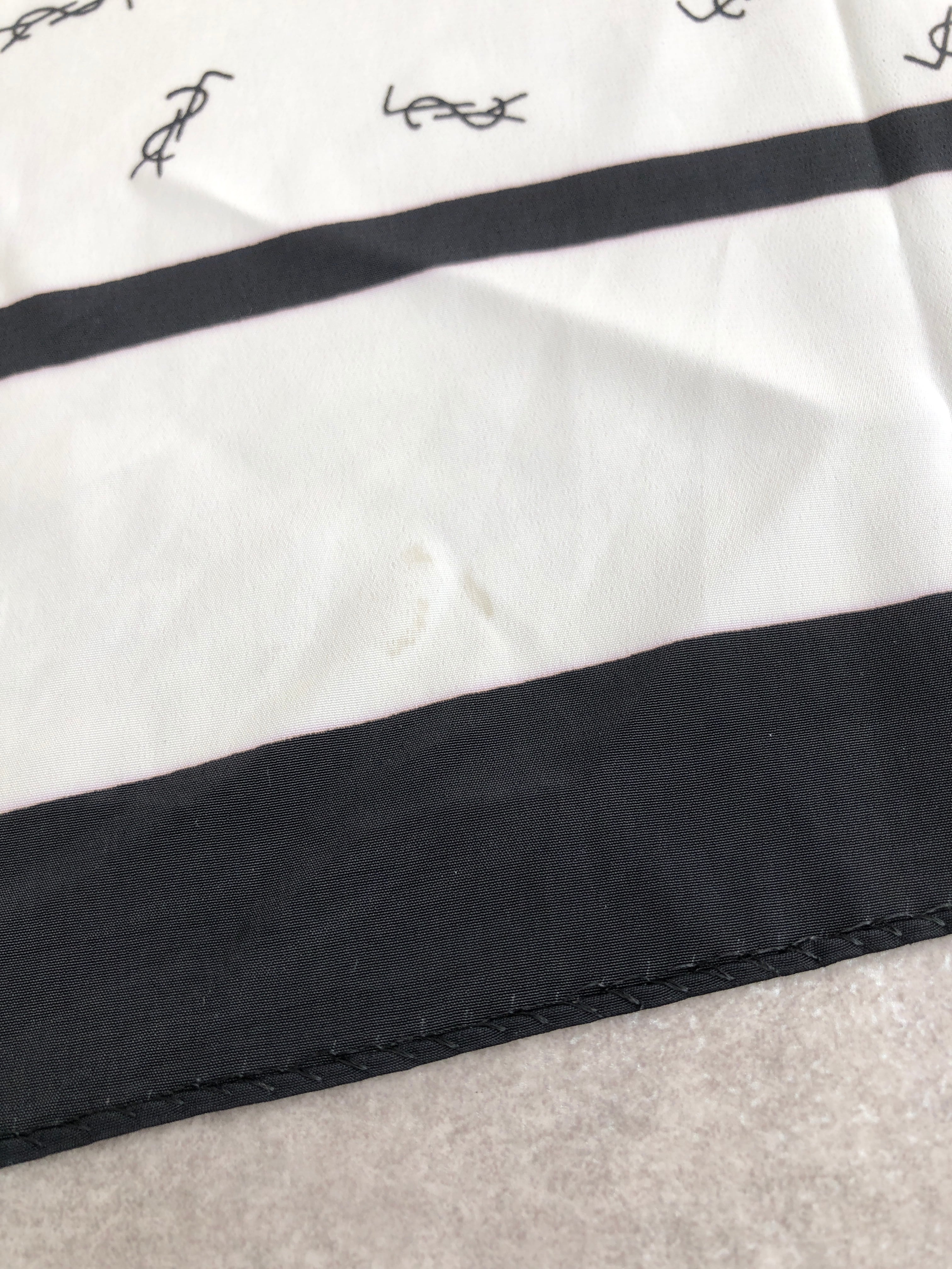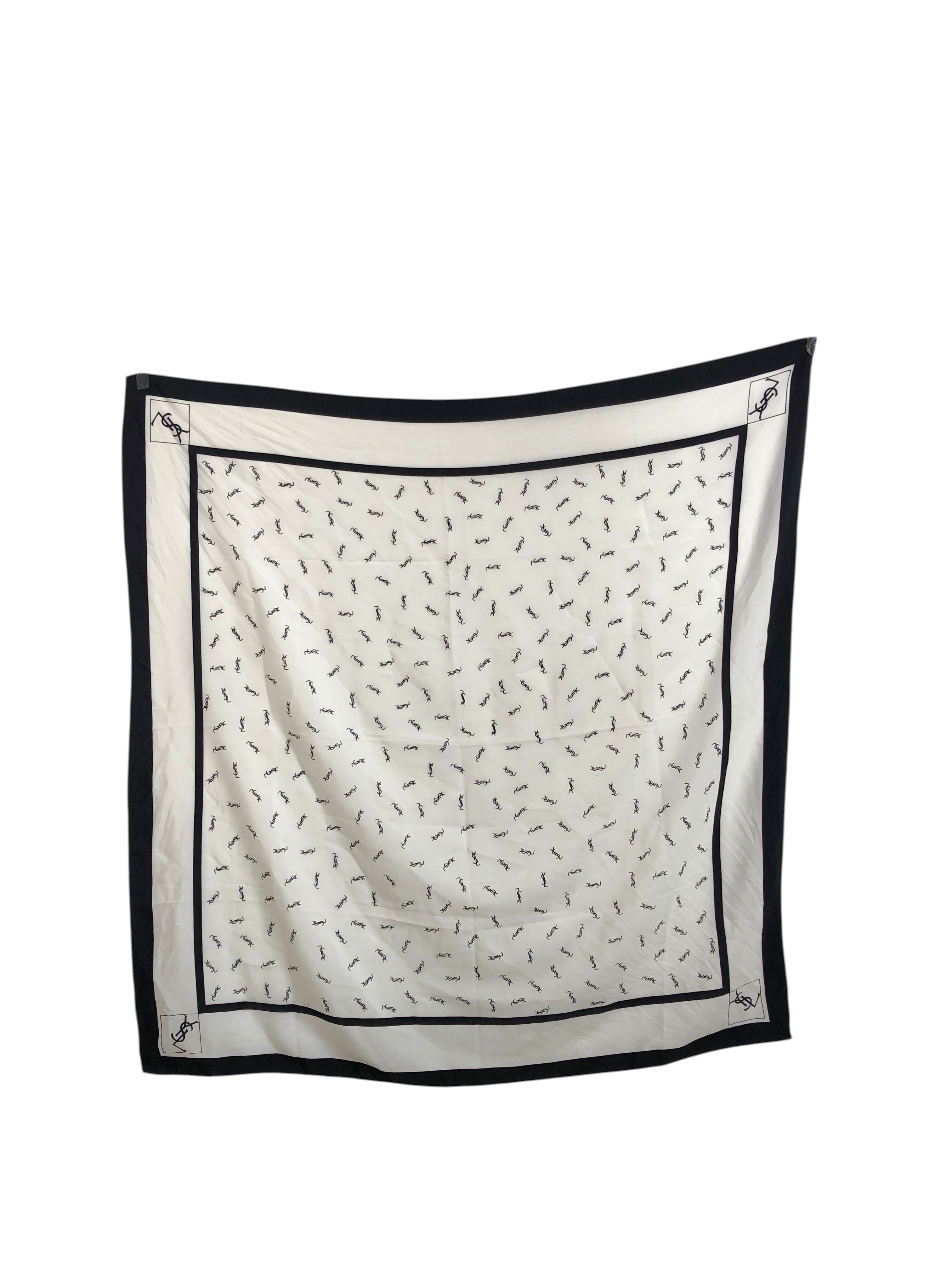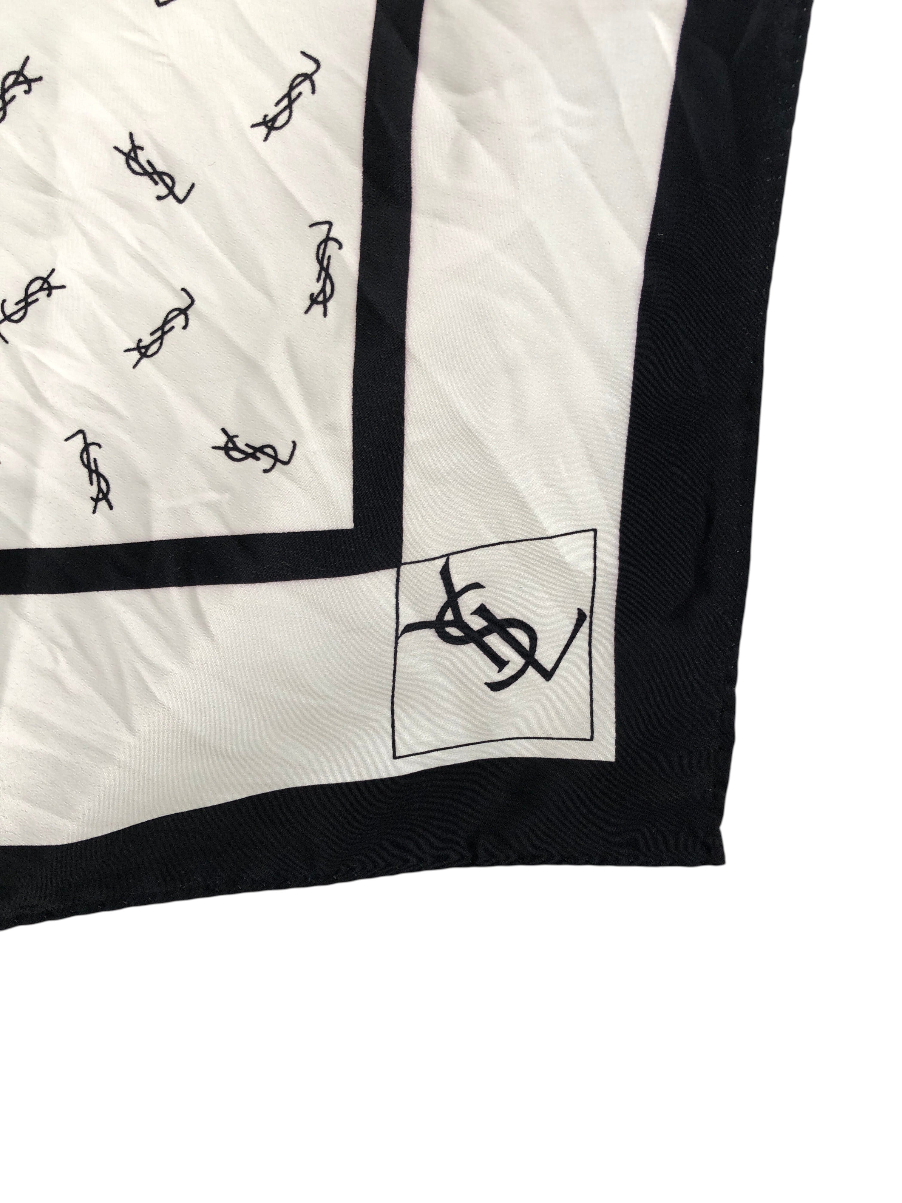 Yves Saint Laurent イヴ・サンローラン スカーフ ブラック ホワイト YSL SILK100% vintage ヴィンテージ オールド ex6c7b