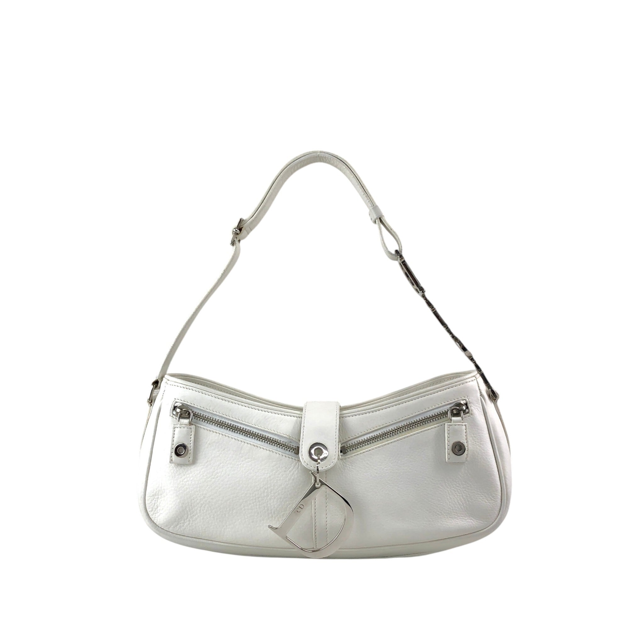 Christian Dior クリスチャン ディオール ショルダーバッグ ホワイト Dモチーフ レザー ワンショルダー vintage ヴィンテージ オールド 8te7iw