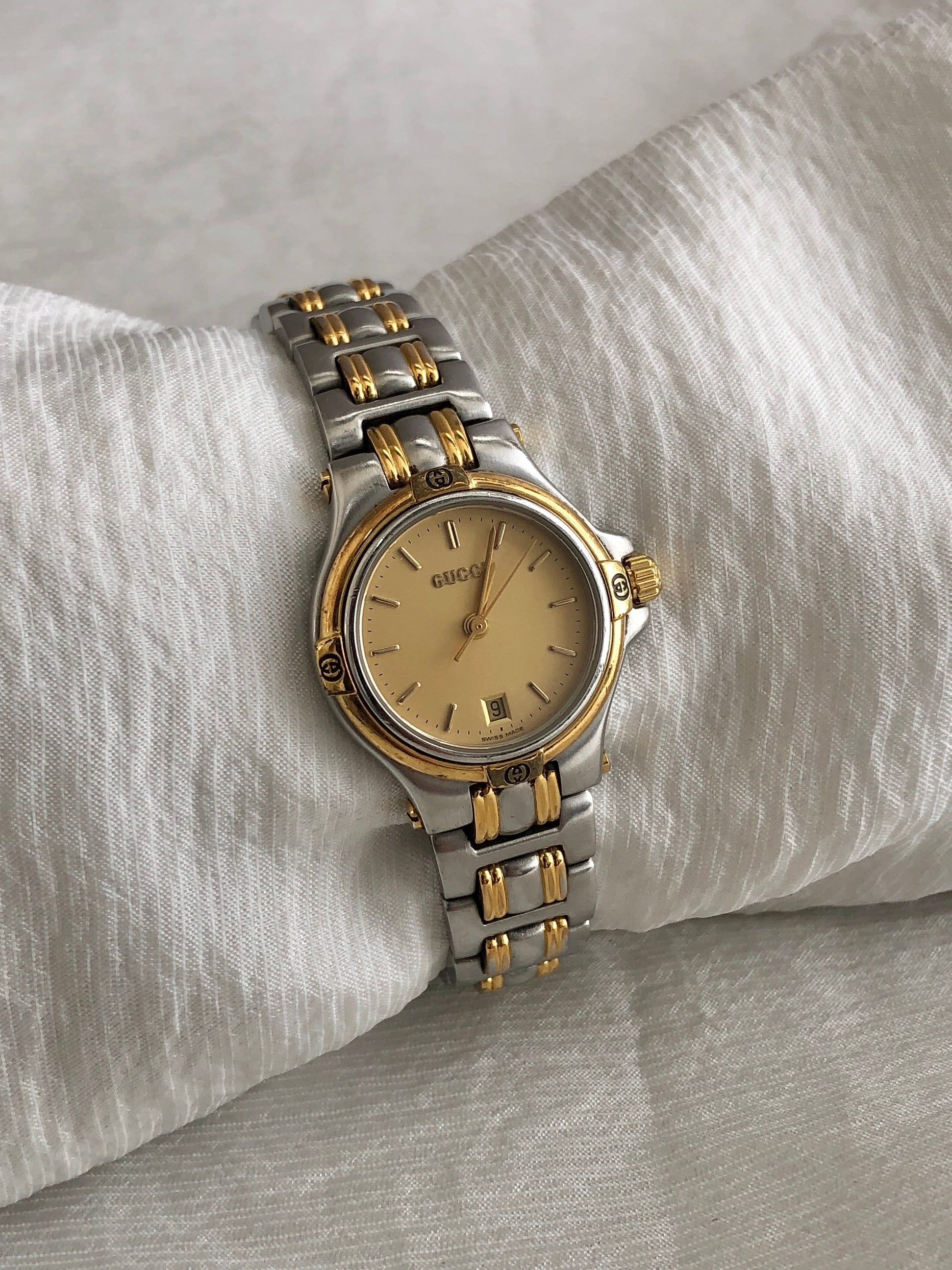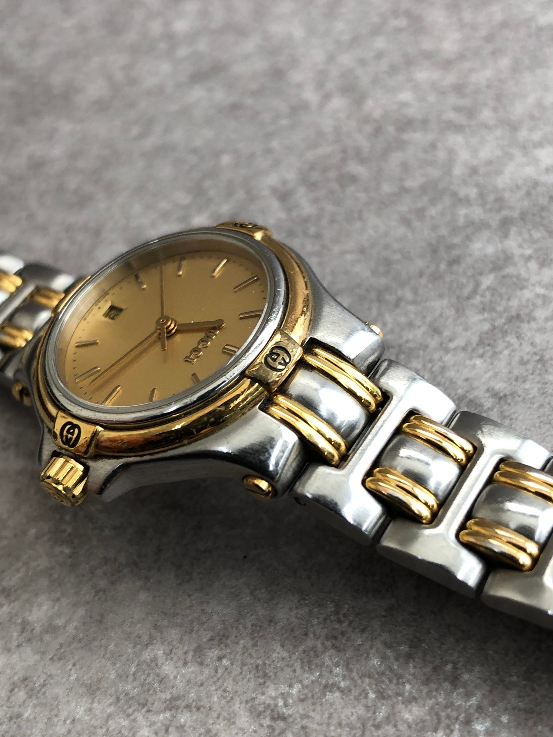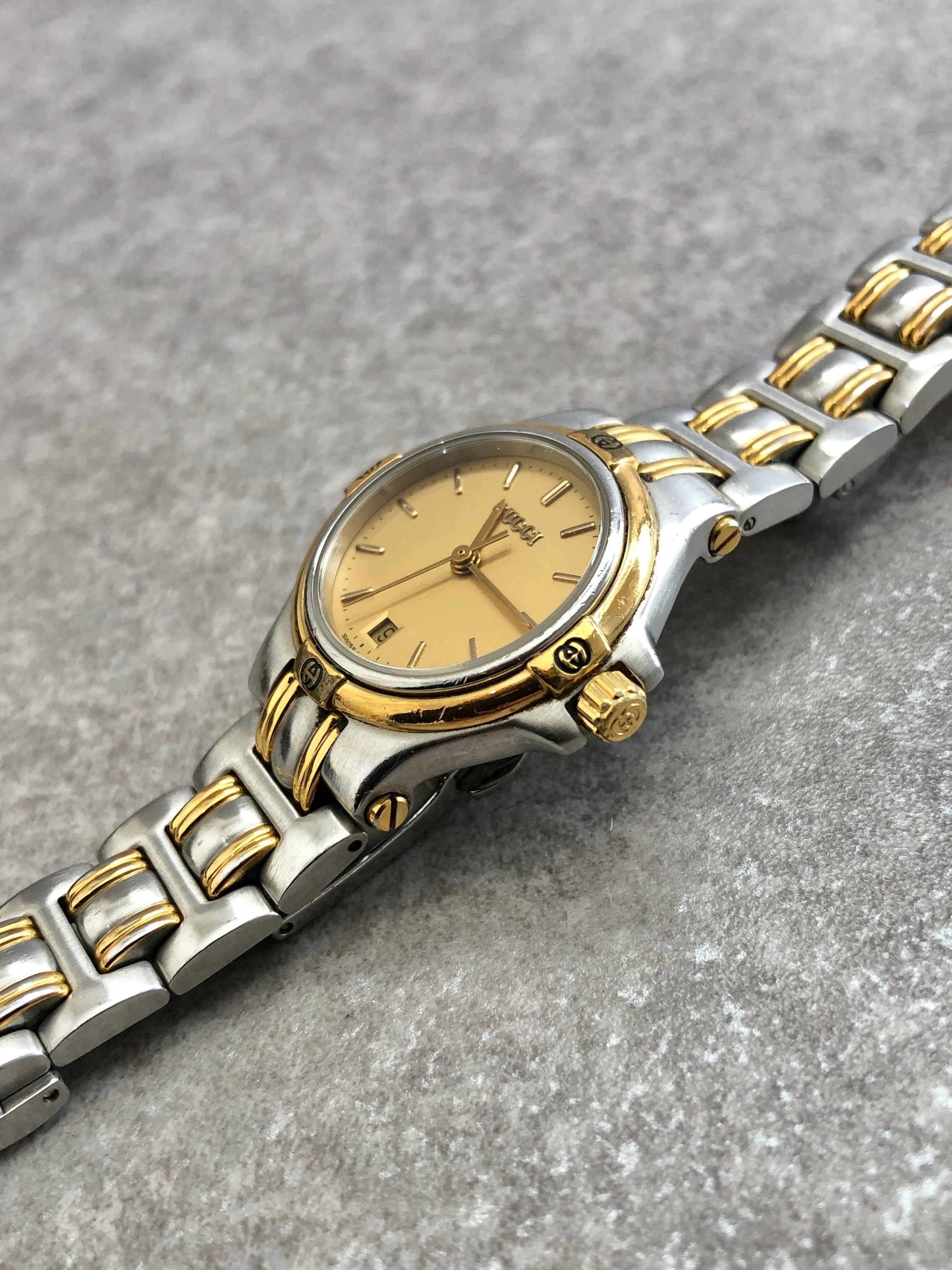 GUCCI グッチ 腕時計 シルバー×ゴールド GG ステンレススチール 9000L vintage ヴィンテージ オールド 5mha2a