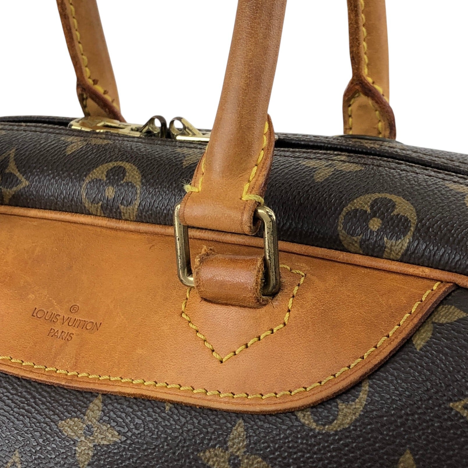 LOUIS VUITTON ルイヴィトン モノグラム ハンドバッグ ブラウン PVC レザー ドーヴィル vintage ヴィンテージ オールド bwp3ix