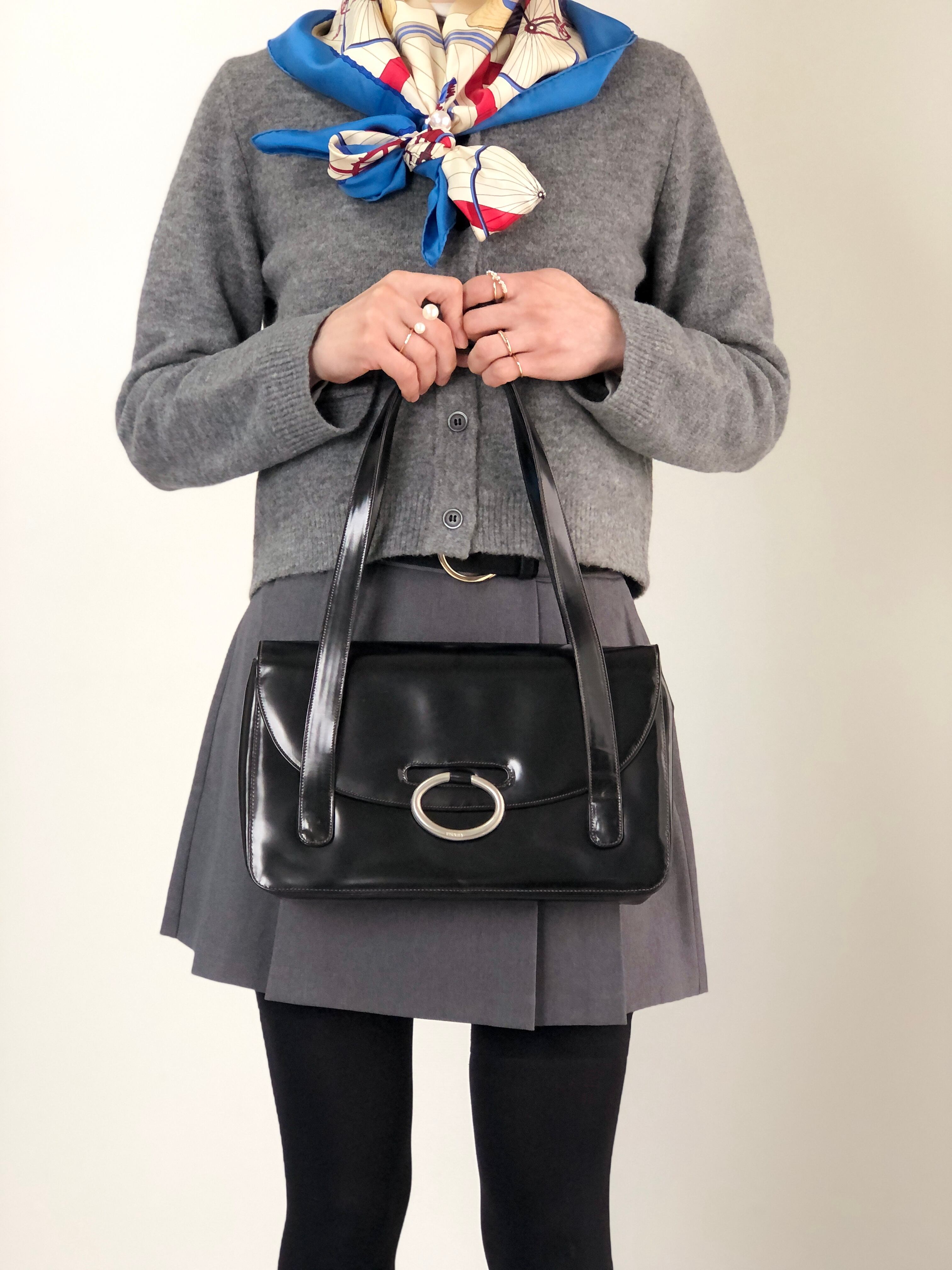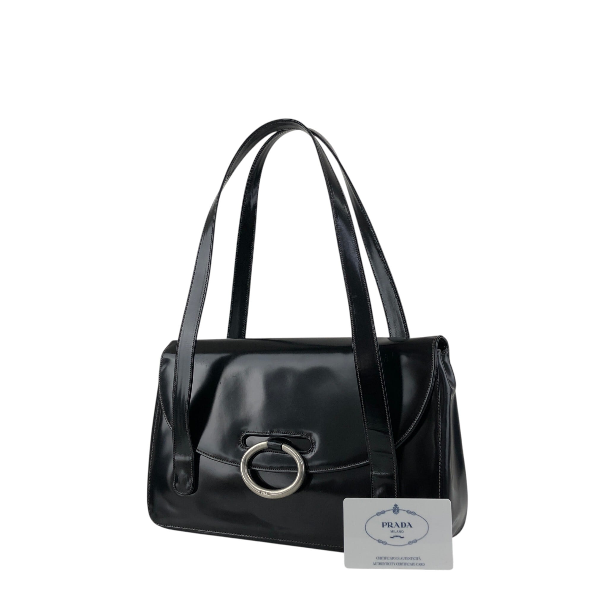 PRADA プラダ ハンドバッグ ブラック エナメル トートバッグ vintage ヴィンテージ オールド 5yawfv