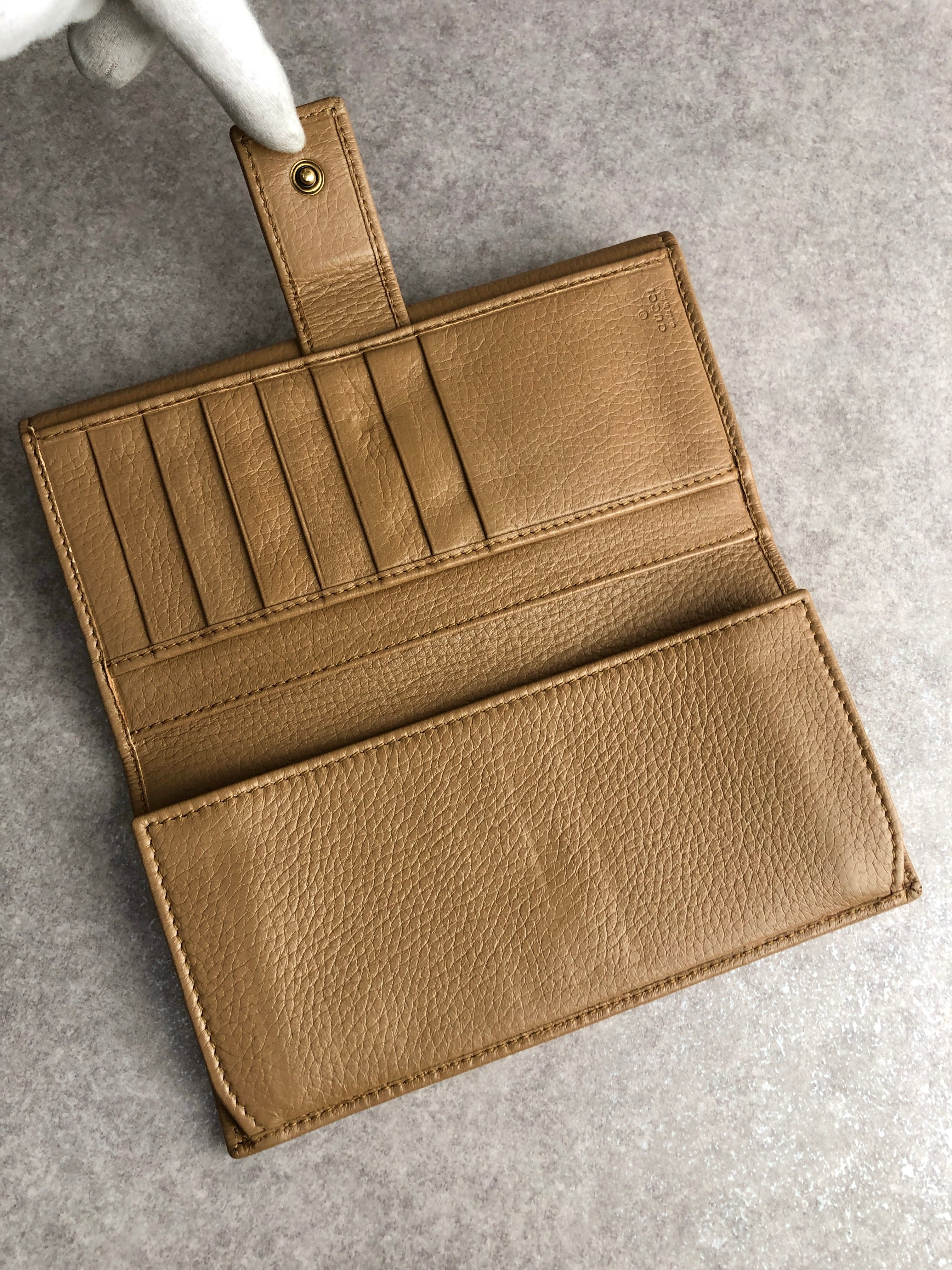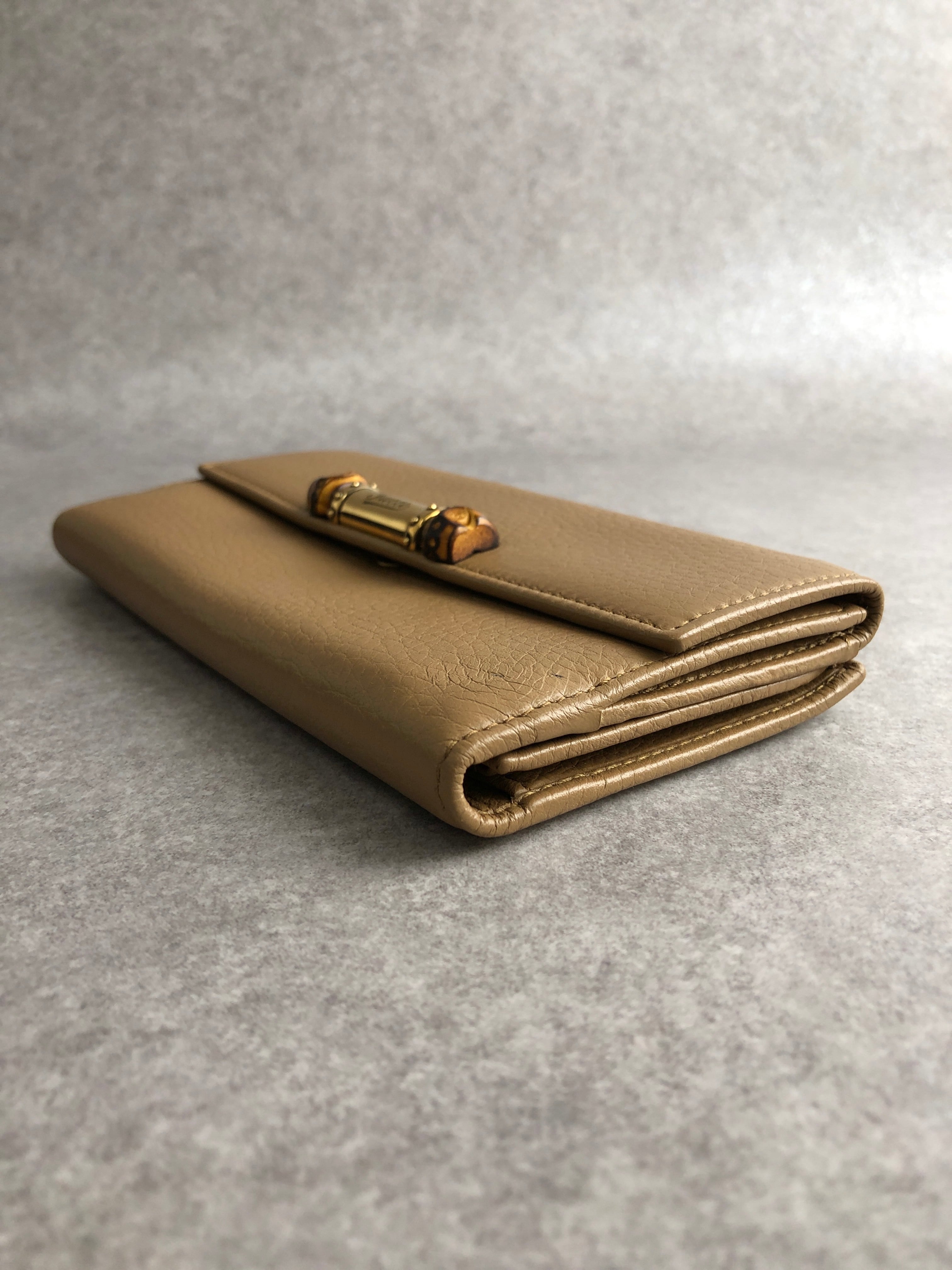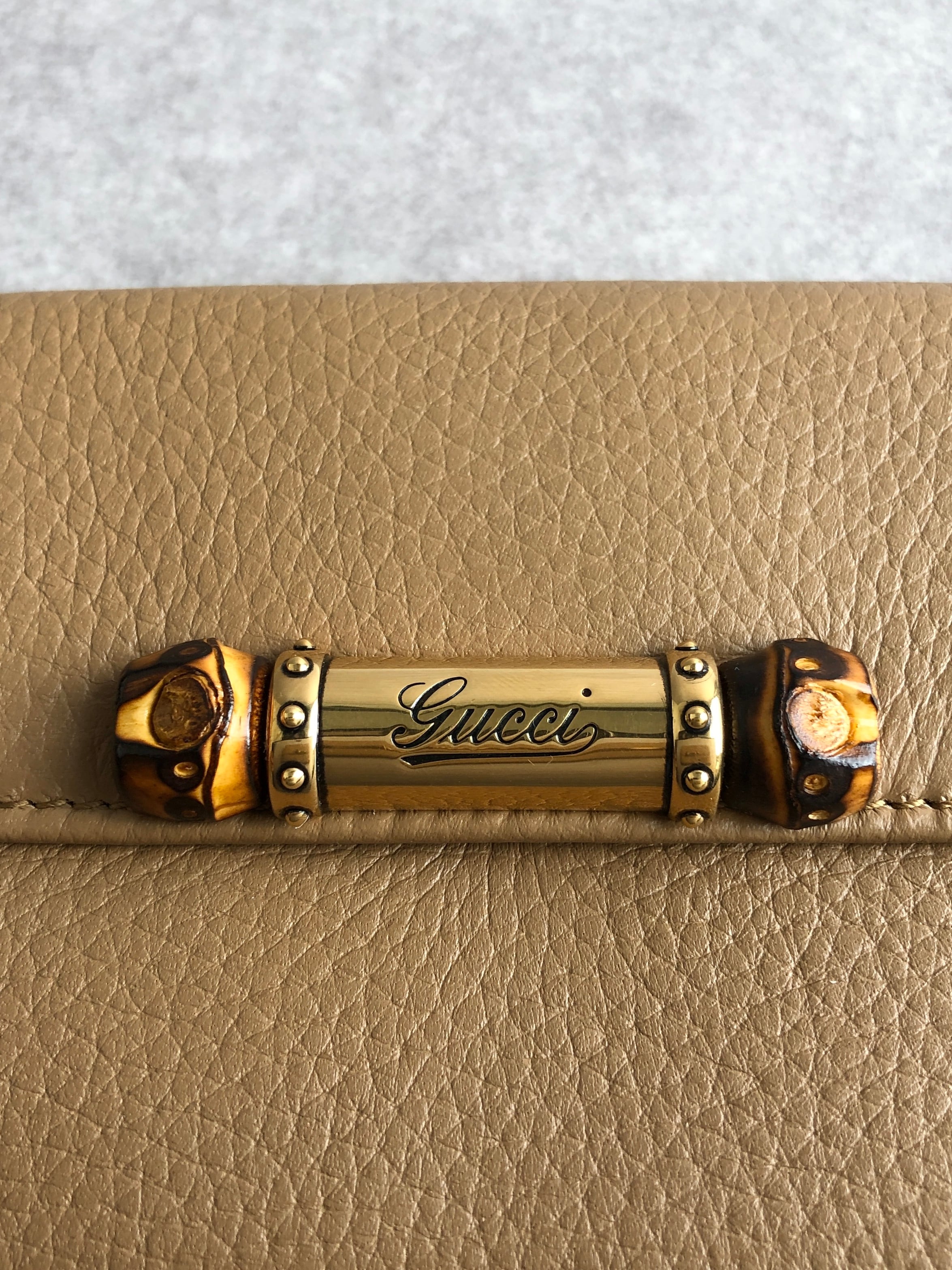 GUCCI グッチ 財布 ベージュ バンブー レザー 長財布 2つ折り vintage ヴィンテージ オールド kj6mc3