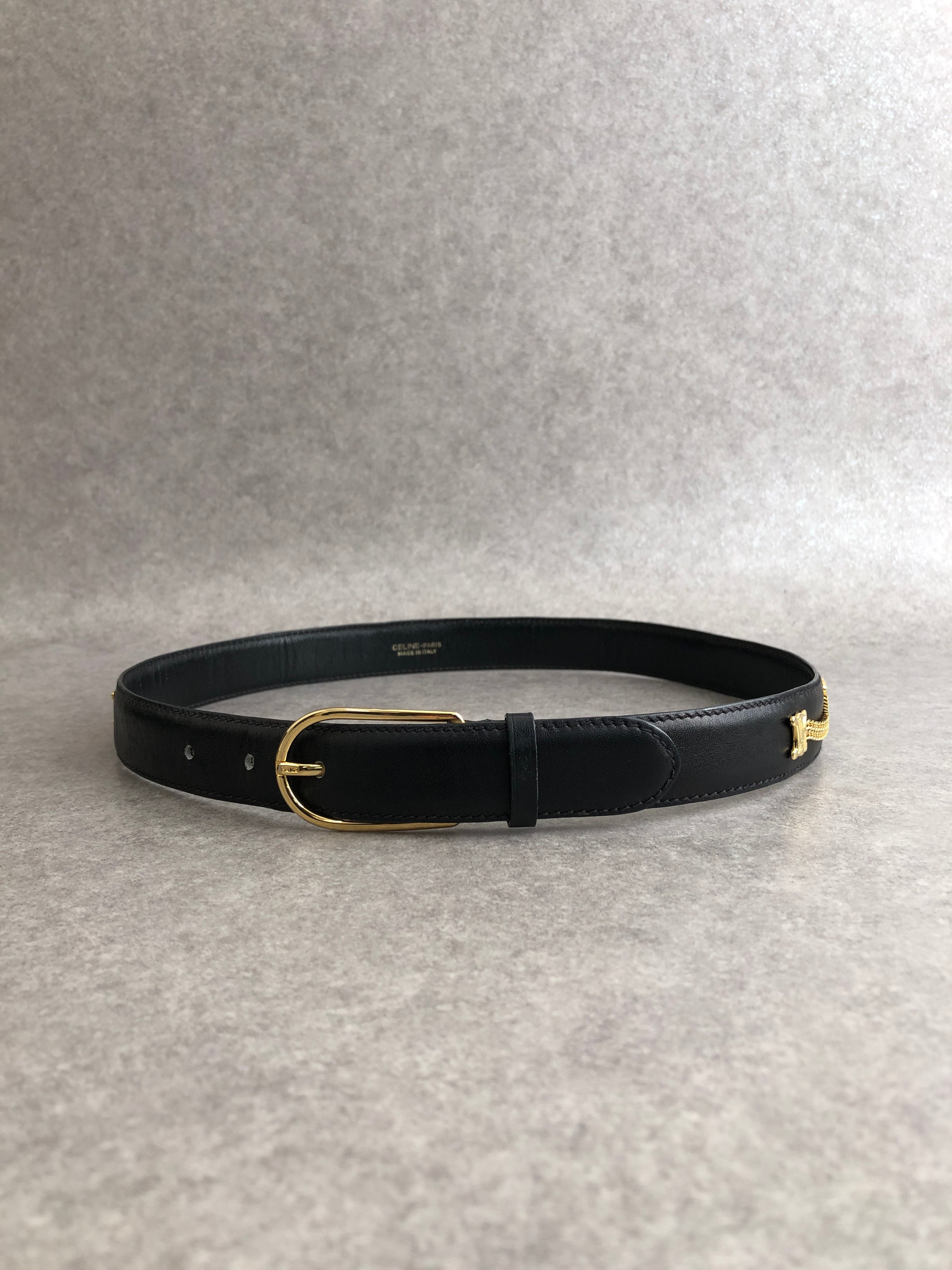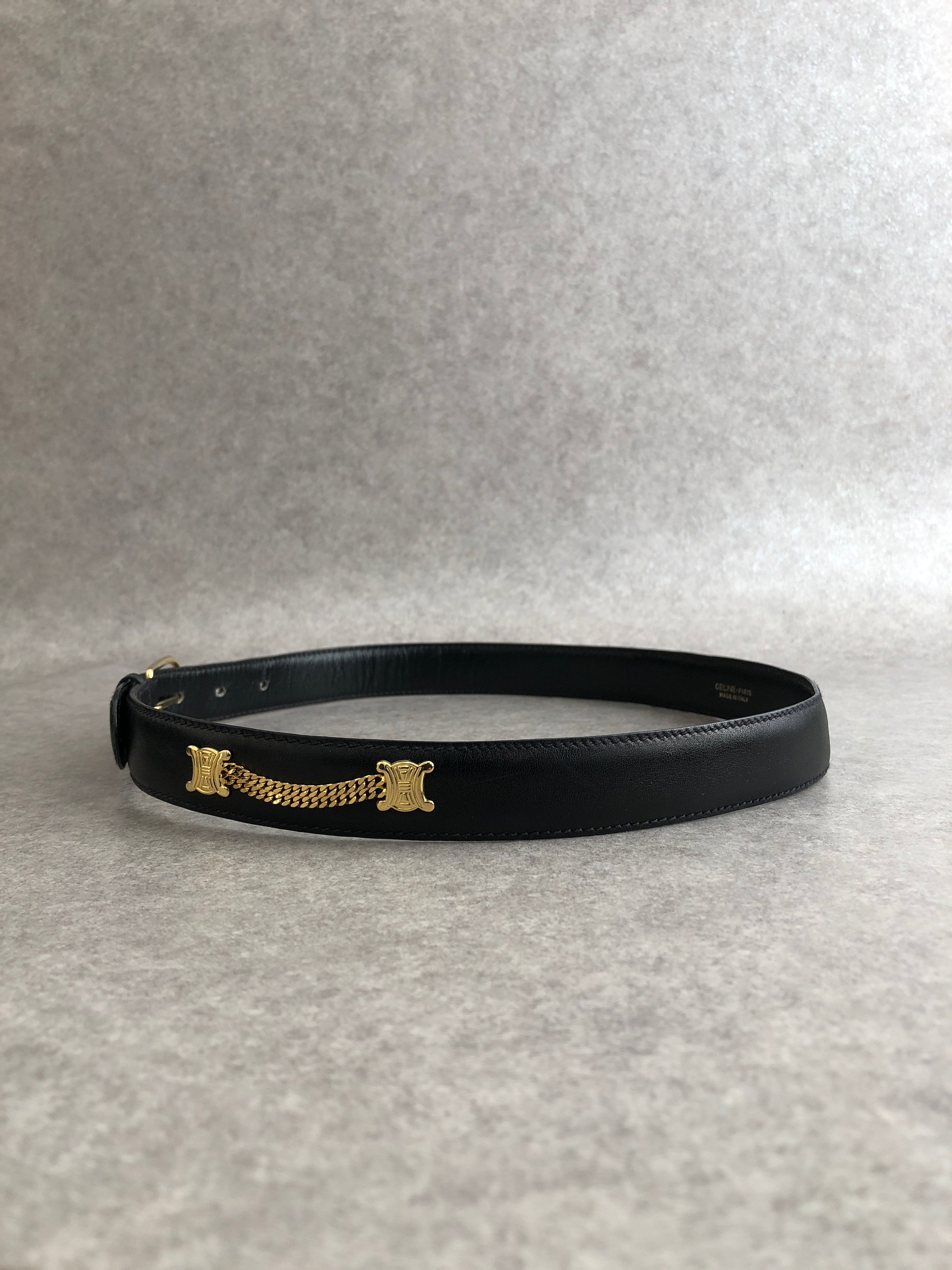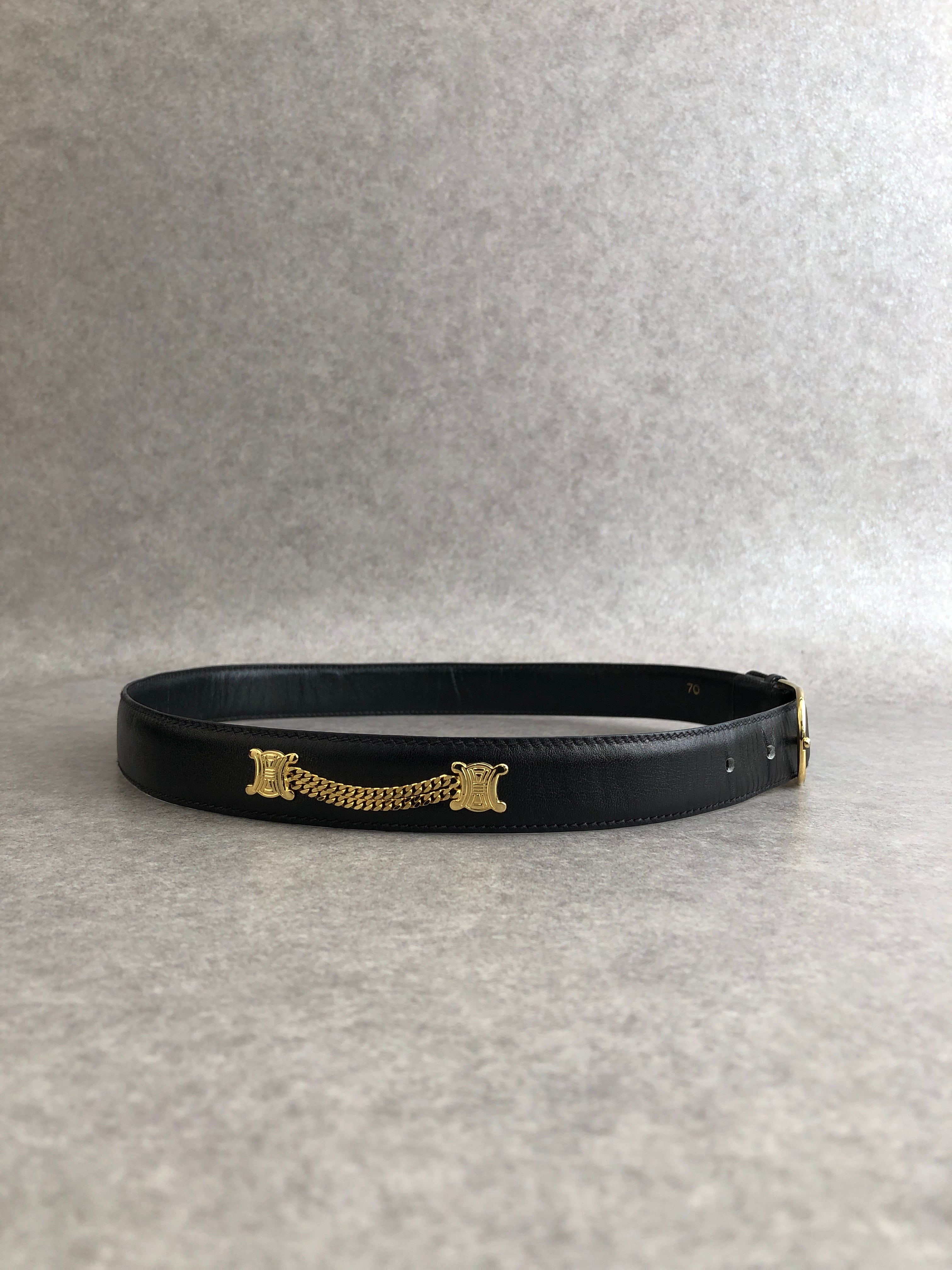 CELINE セリーヌ ベルト ブラック トリオンフ レザー チェック vintage ヴィンテージ オールドセリーヌ uw4euk
