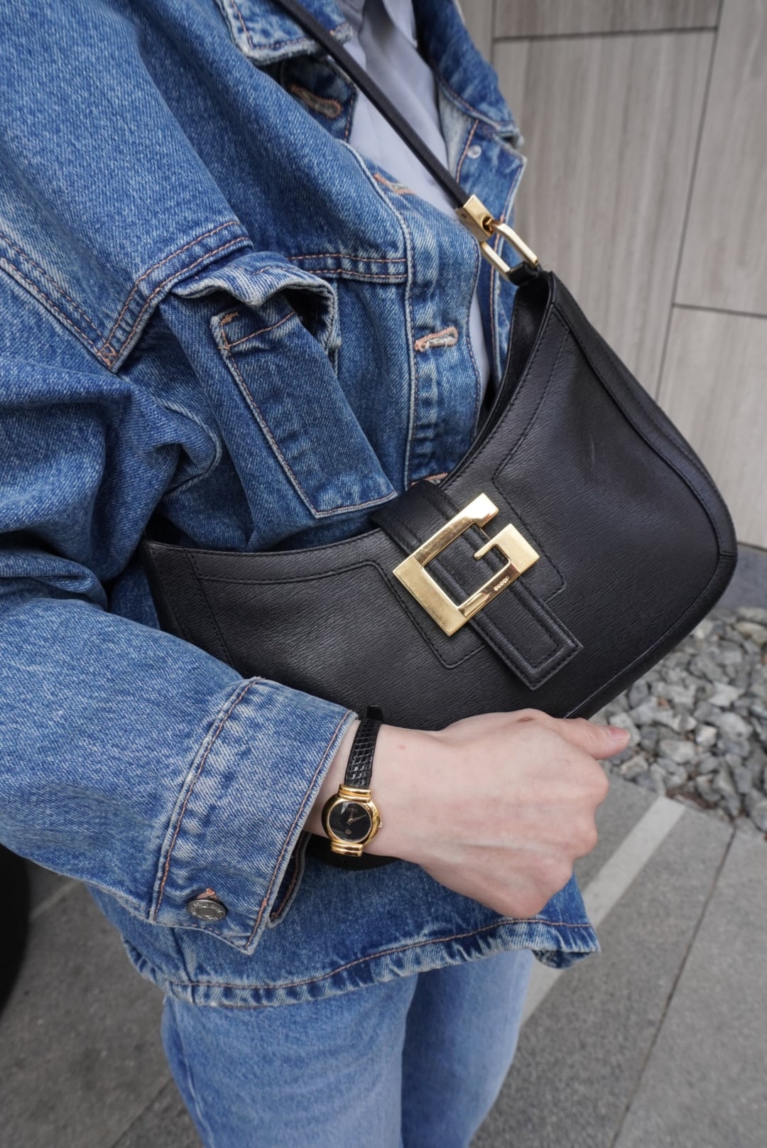 GUCCI グッチ ショルダーバッグ ブラック Gモチーフ レザー ワンショルダー vintage ヴィンテージ オールド 3z62yh