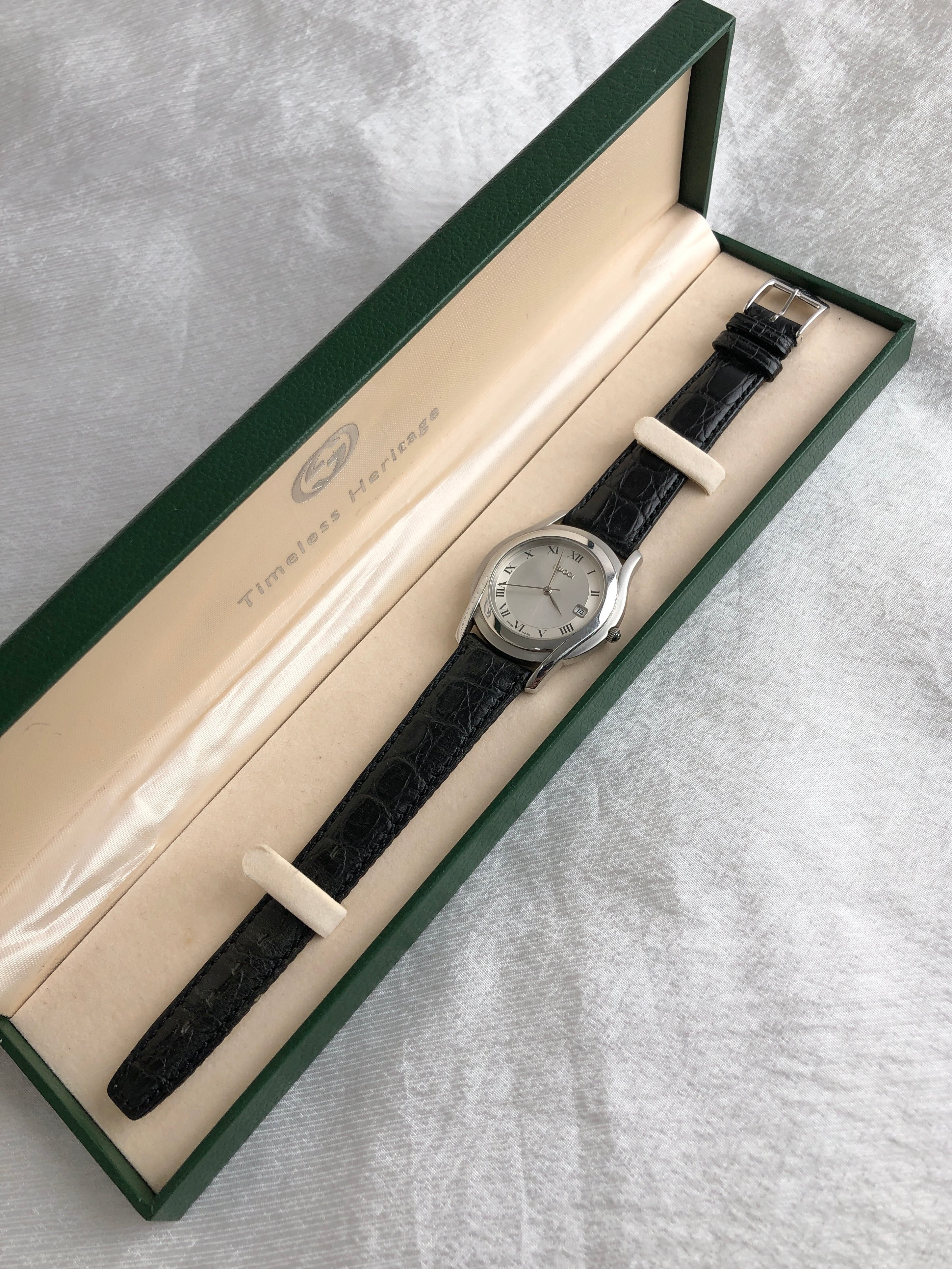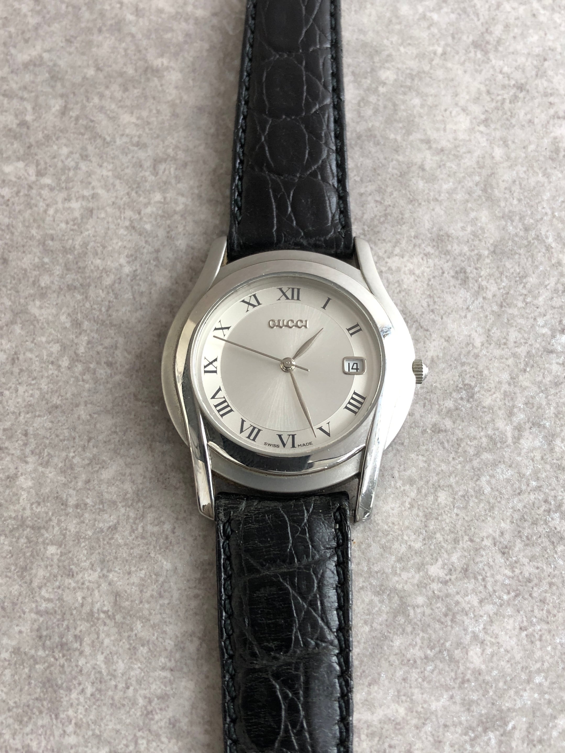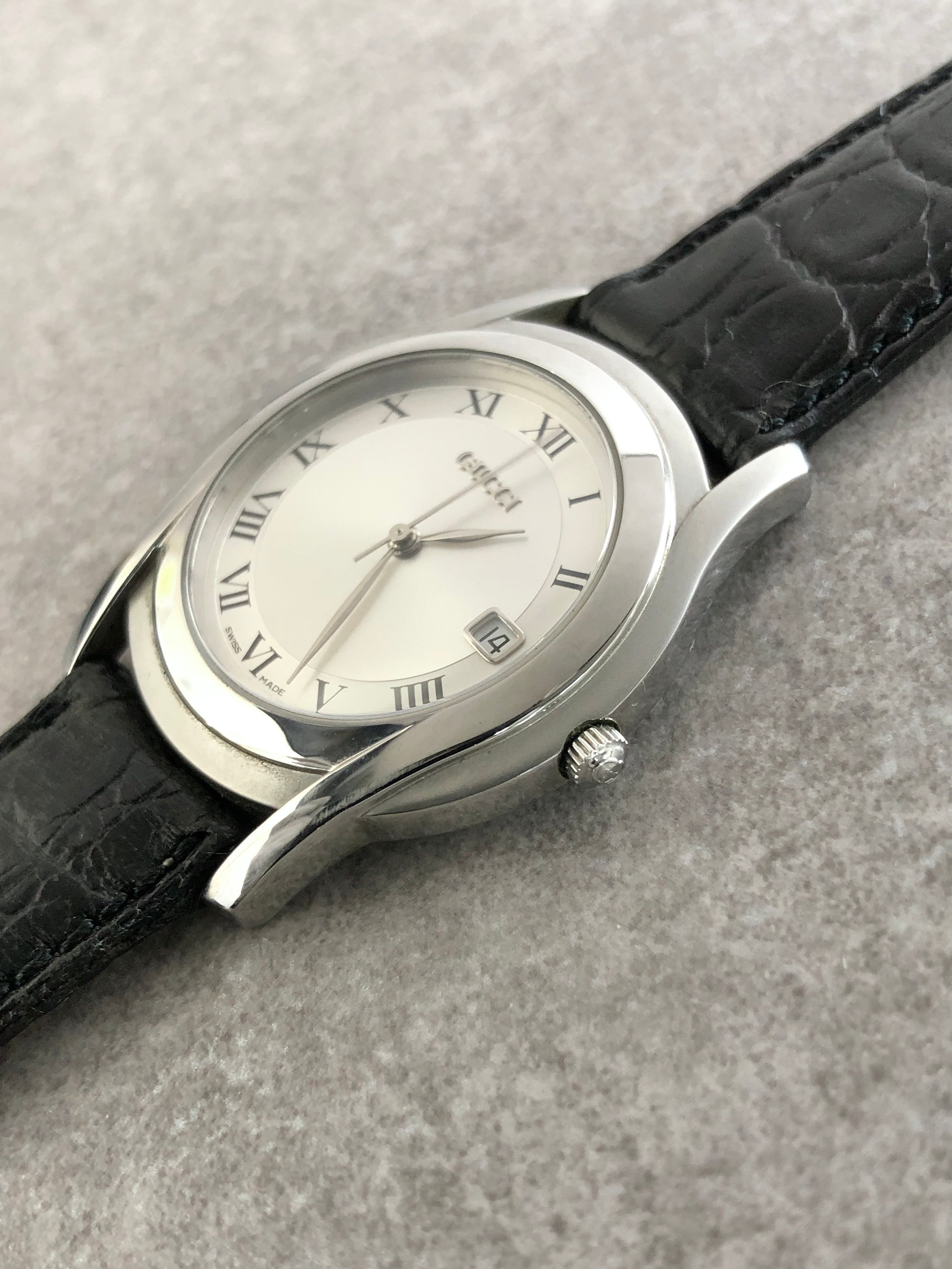 GUCCI グッチ 腕時計 シルバー×ブラック ローマ文字 ステンレススチール 5500M vintage ヴィンテージ オールド 24mgta
