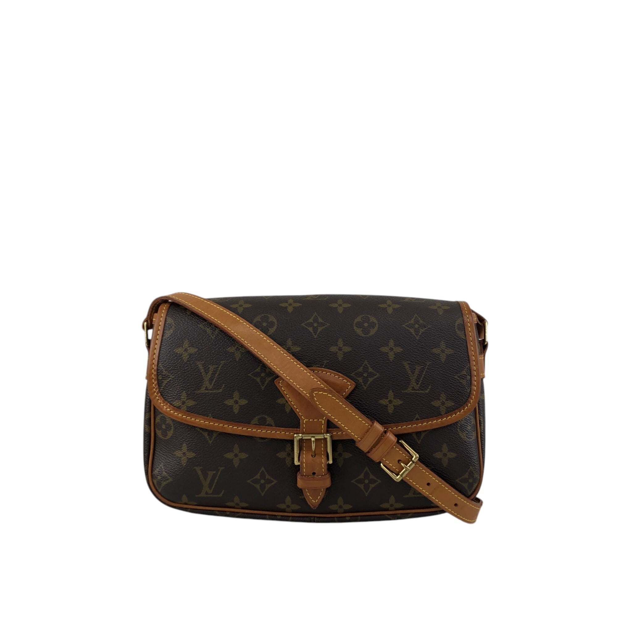 LOUIS VUITTON ルイヴィトン ソローニュ モノグラム ショルダーバッグ ブラウン フロントバックル レザー vintage ヴィンテージ オールド ijy8tn