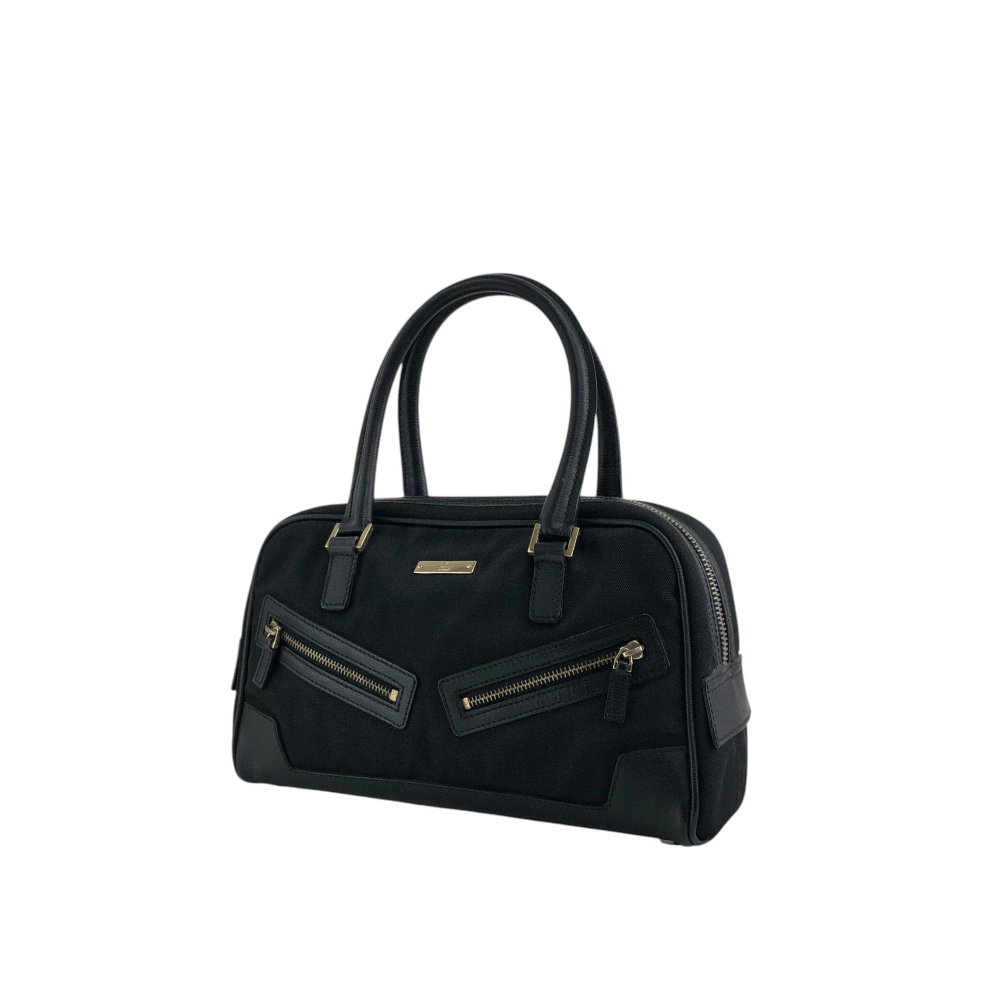 GUCCI グッチ ハンドバッグ ブラック ロゴプレート キャンバス ミニボストン vintage ヴィンテージ オールド zw2fwz