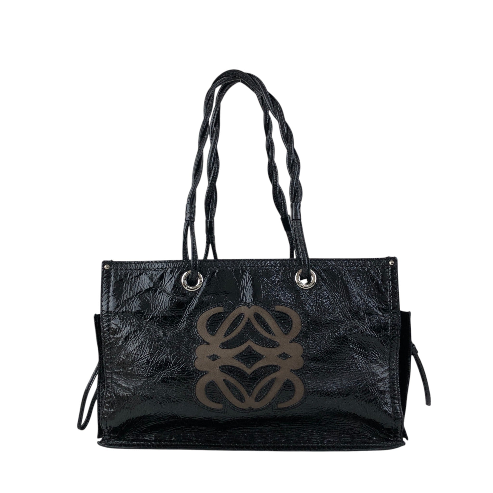 LOEWE ロエベ ハンドバッグ ブラック アナグラム エナメル トートバッグ vintage ヴィンテージ オールド n7ecge