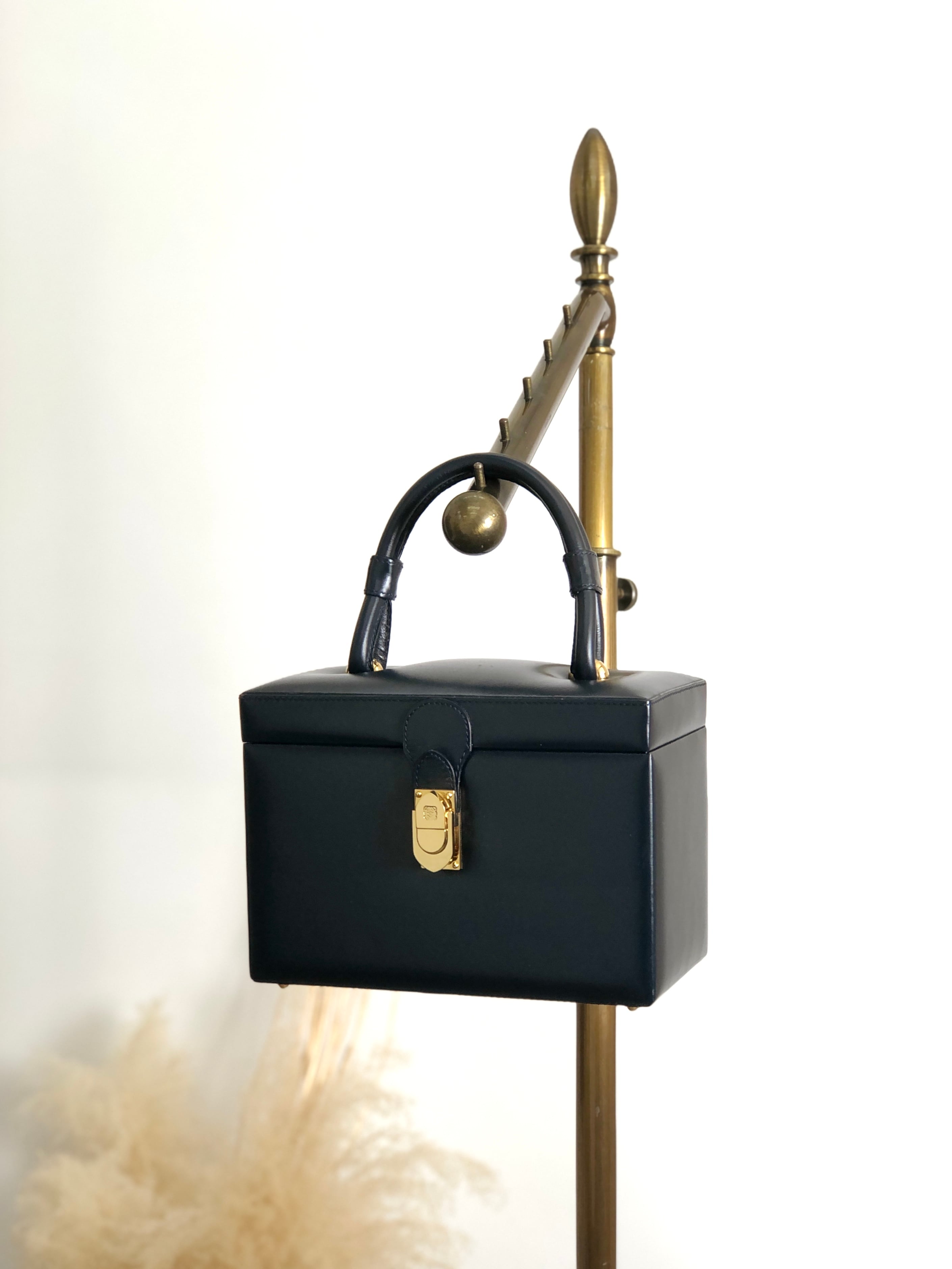 LOEWE ロエベ ハンドバッグ ネイビー アナグラム レザー バニティバッグ vintage ヴィンテージ オールド kwwgaf