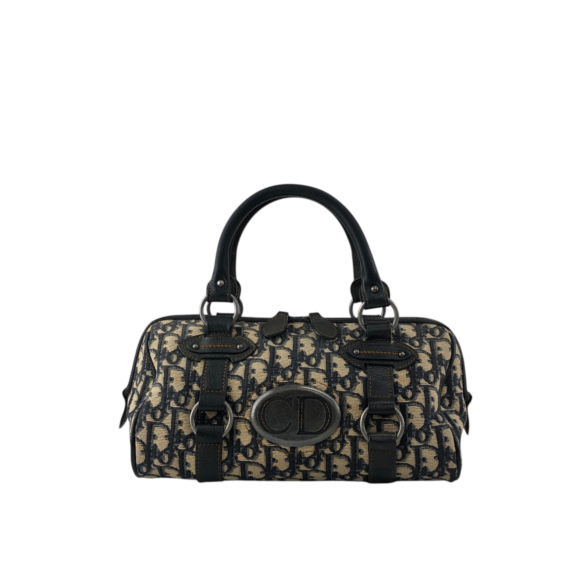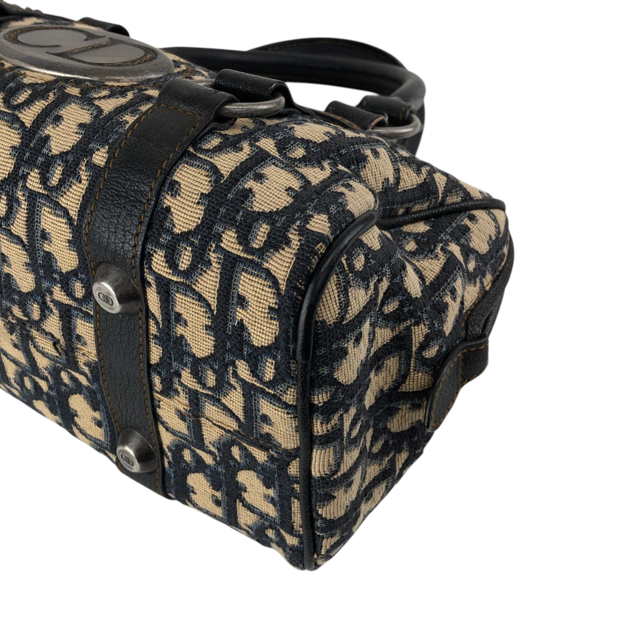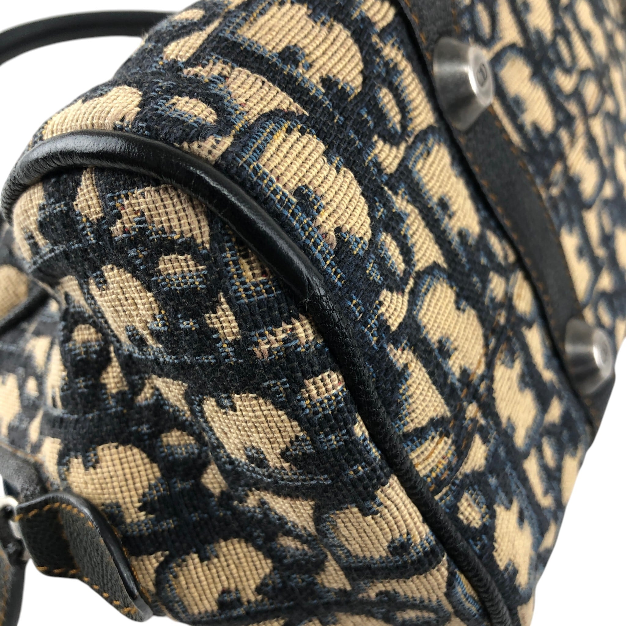 Christian Dior クリスチャン ディオール トロッター ハンドバッグ ネイビー CD ジャガード レザー ミニボストン vintage ヴィンテージ オールド yrrvj3