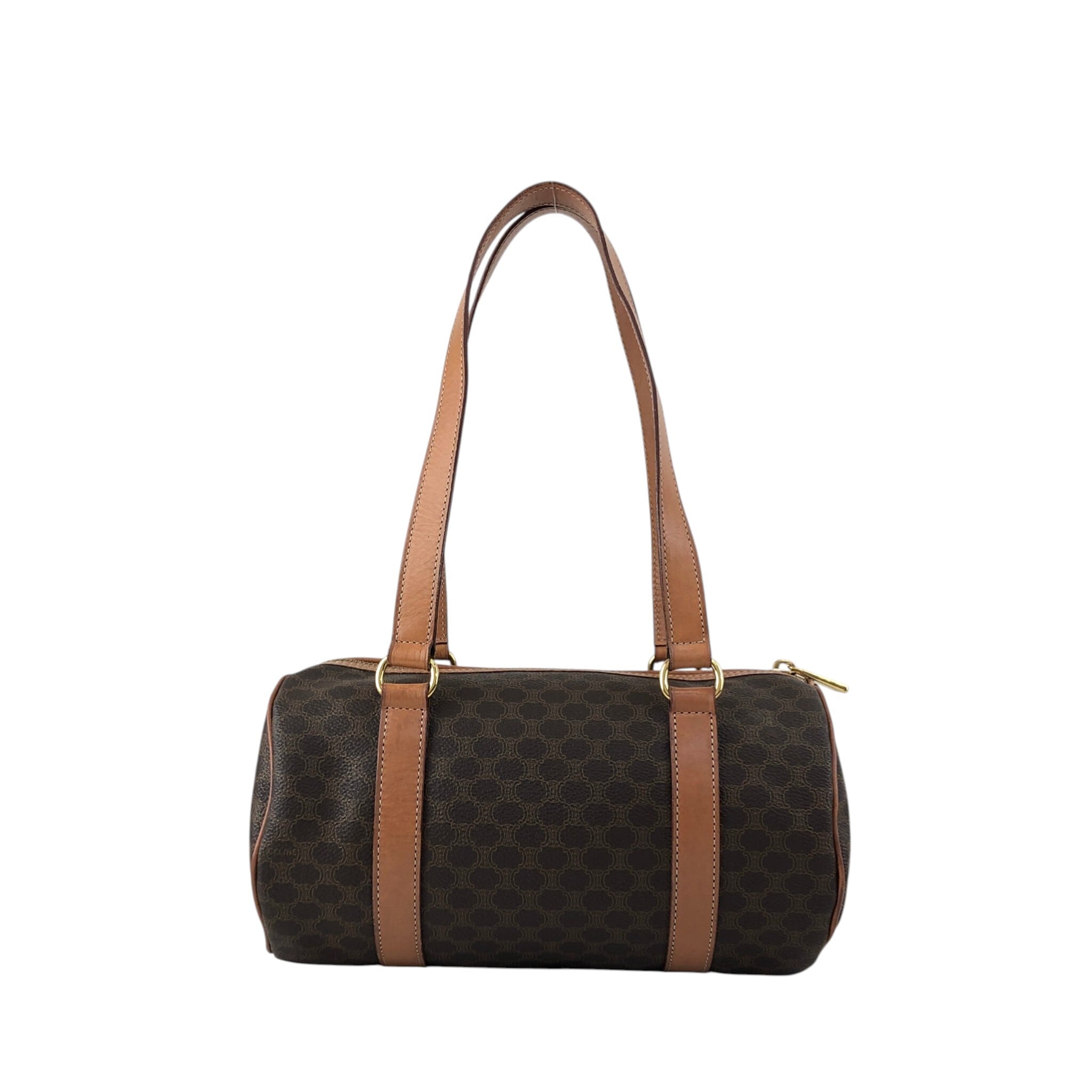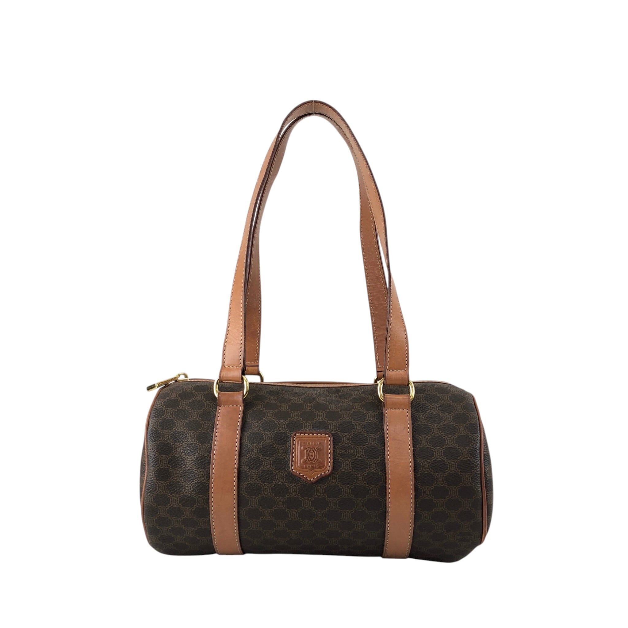 CELINE セリーヌ ハンドバッグ ブラウン ブラゾン型押し PVCレザー ロールバッグ vintage ヴィンテージ オールド 3wk4bc