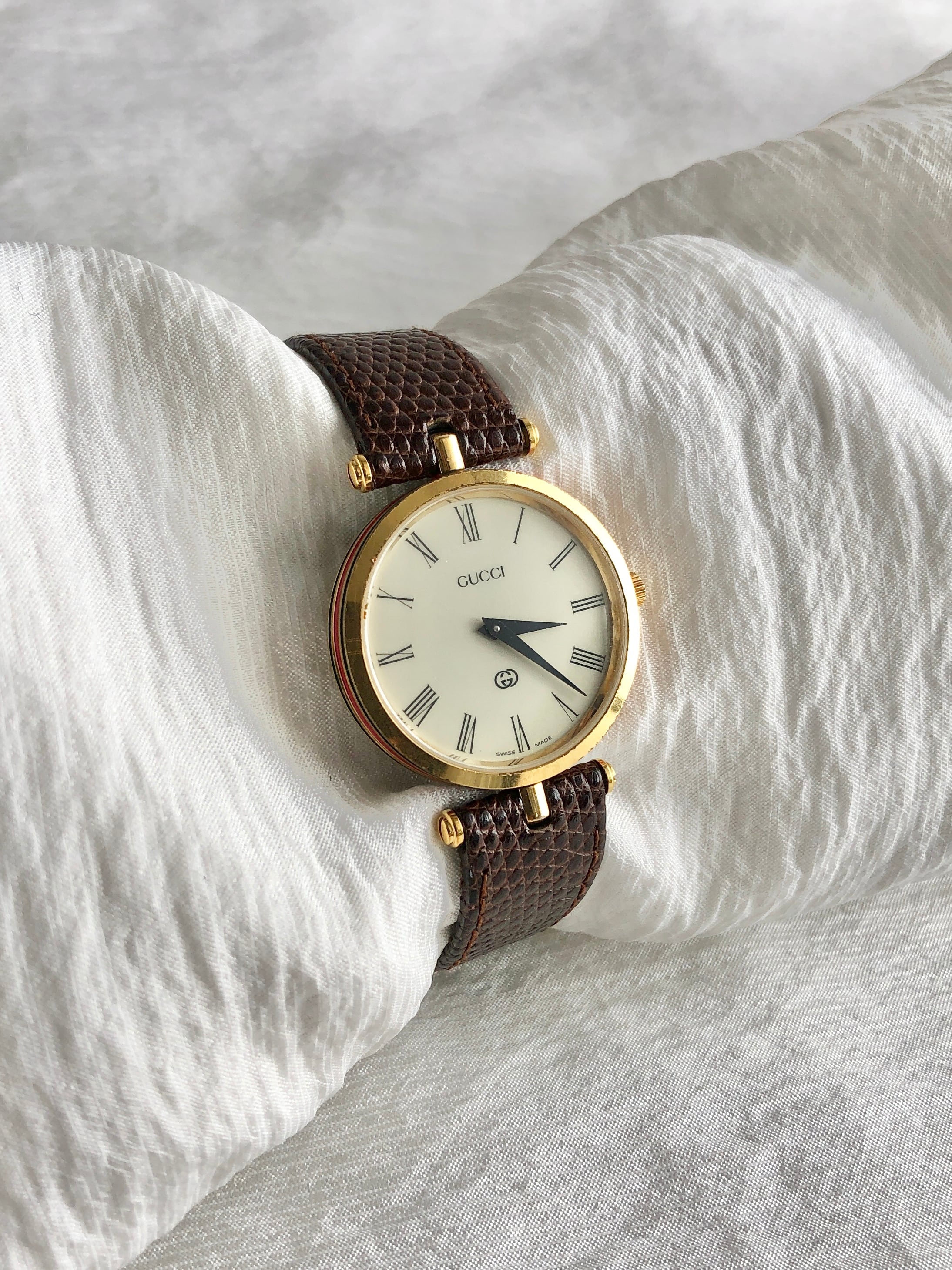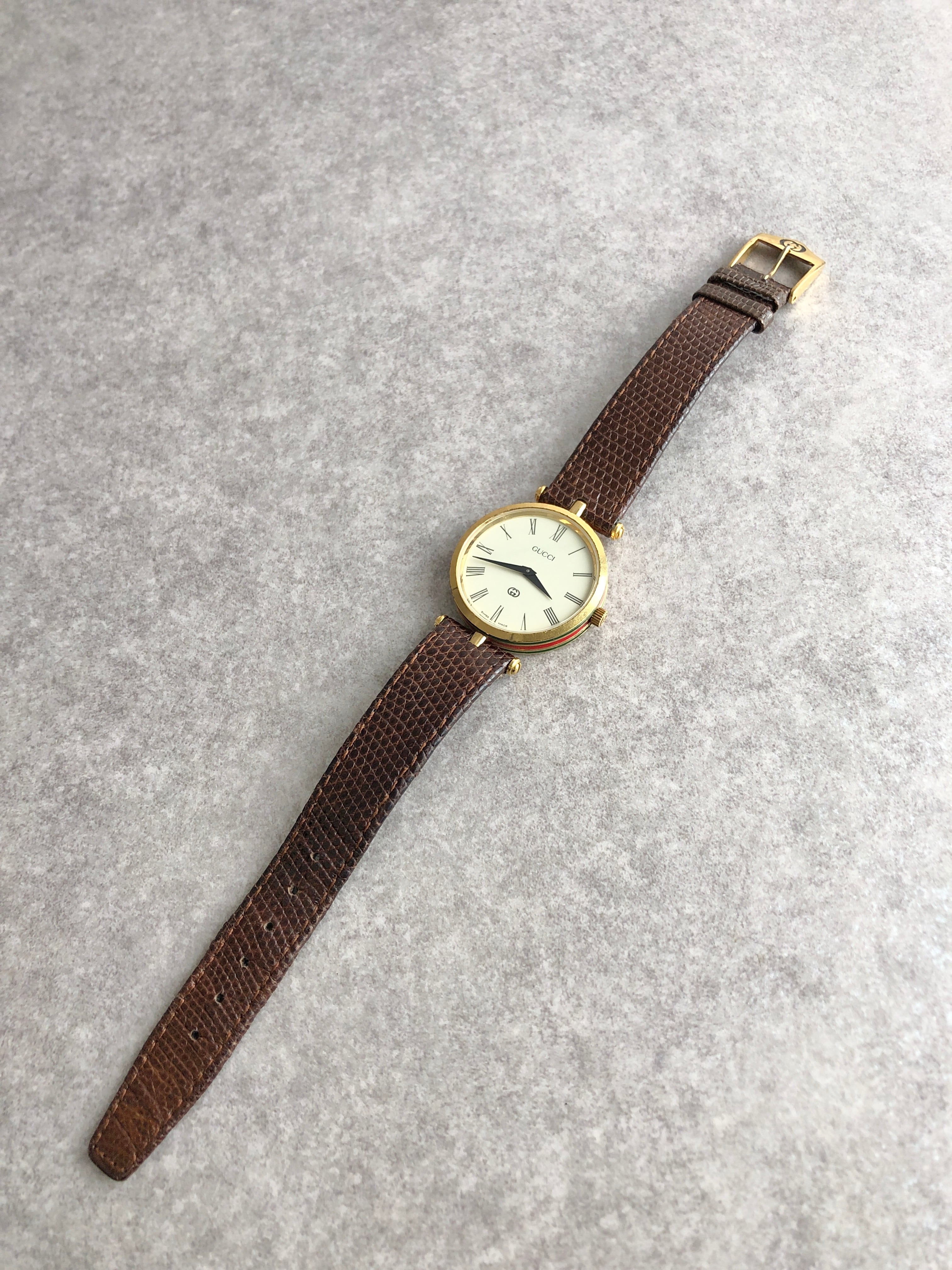 GUCCI グッチ シェリーライン 腕時計 ゴールド×ブラウン 型押しレザー vintage ヴィンテージ オールド bunxe7