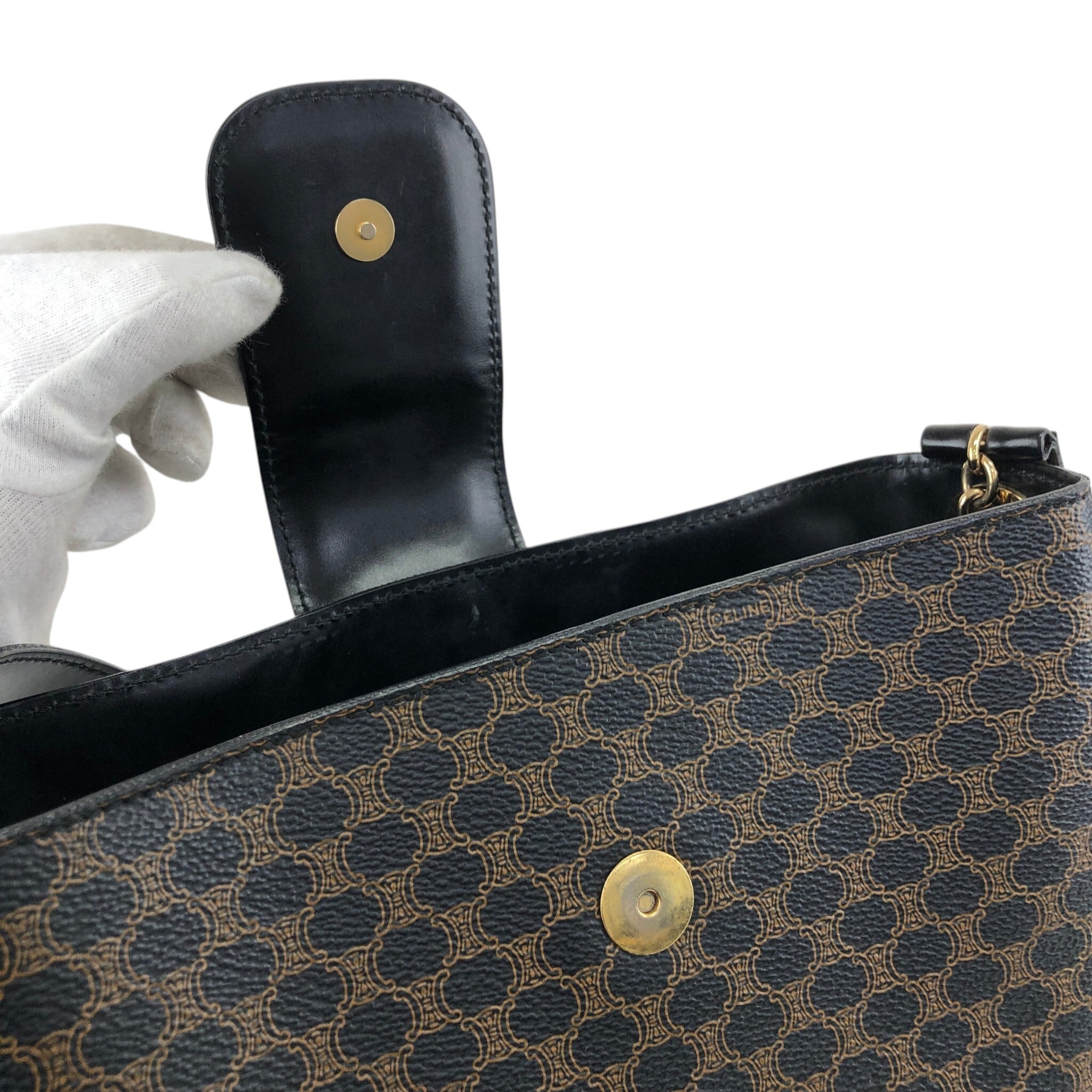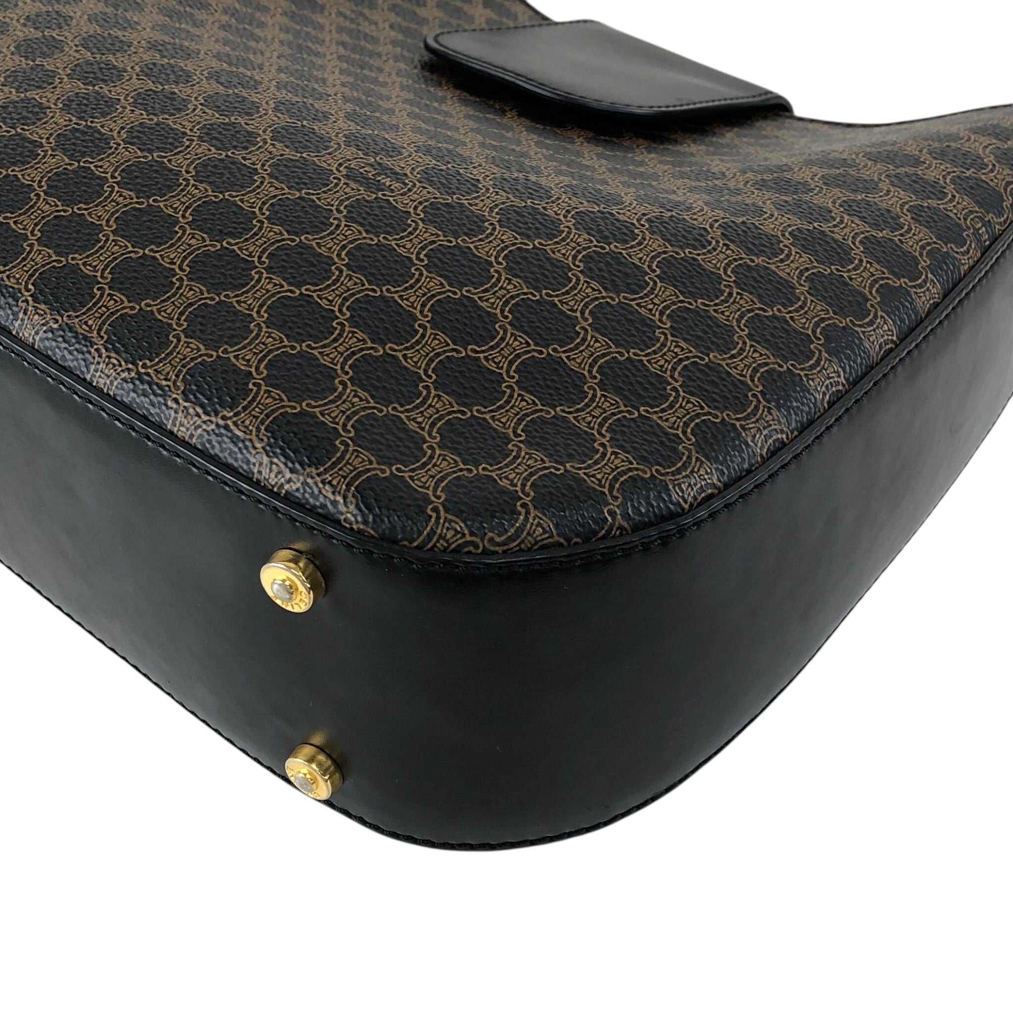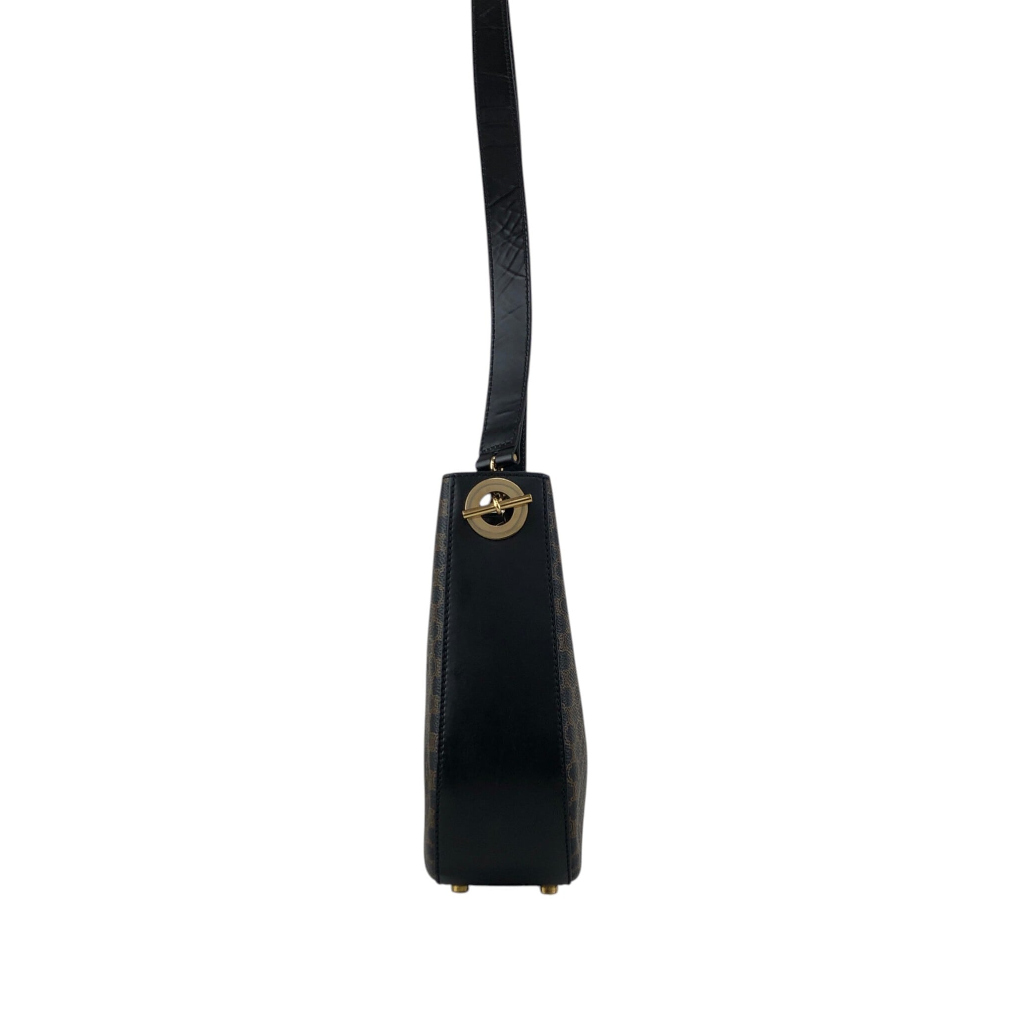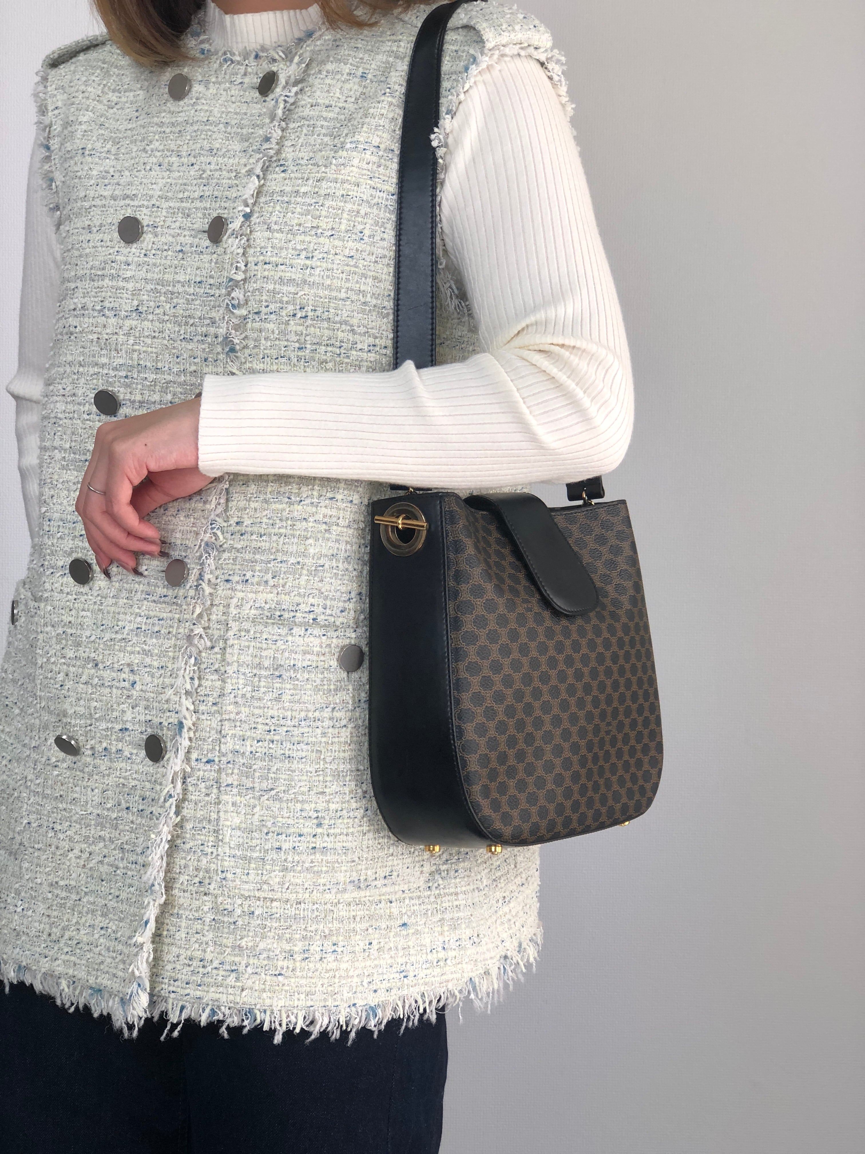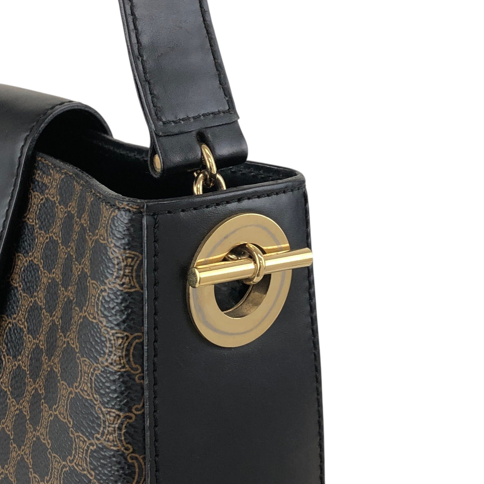 CELINE セリーヌ マカダム ショルダーバッグ ブラック サイドマンテル PVC ワンショルダー vintage ヴィンテージ オールド fphffk