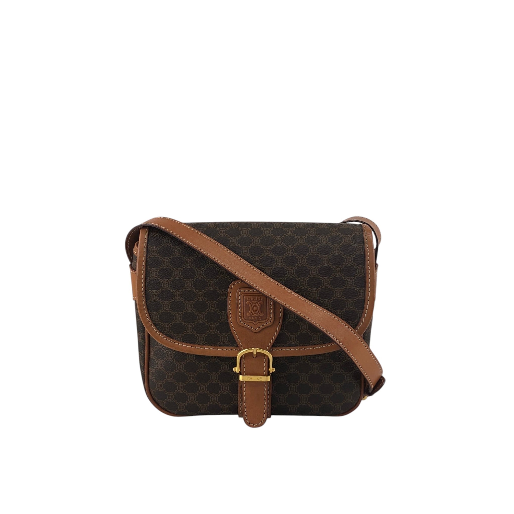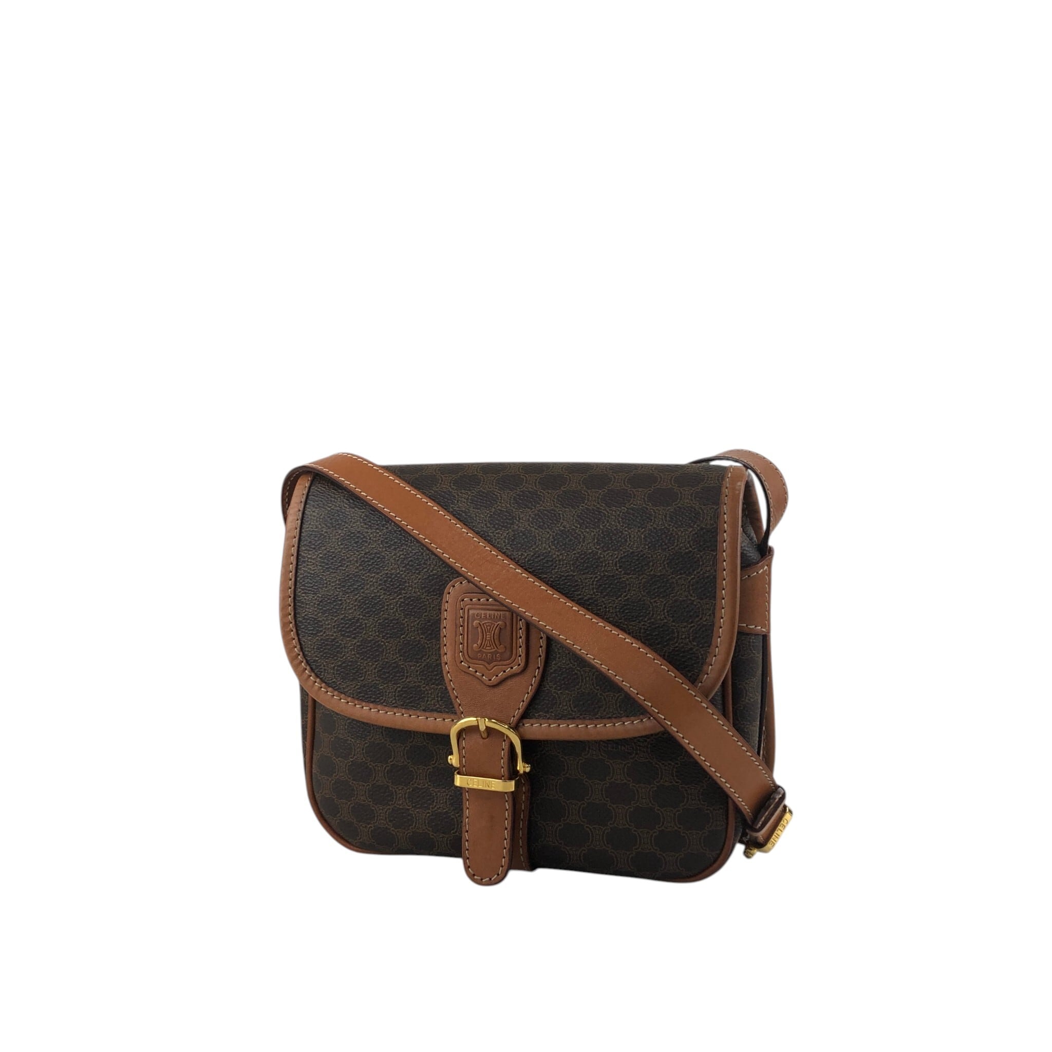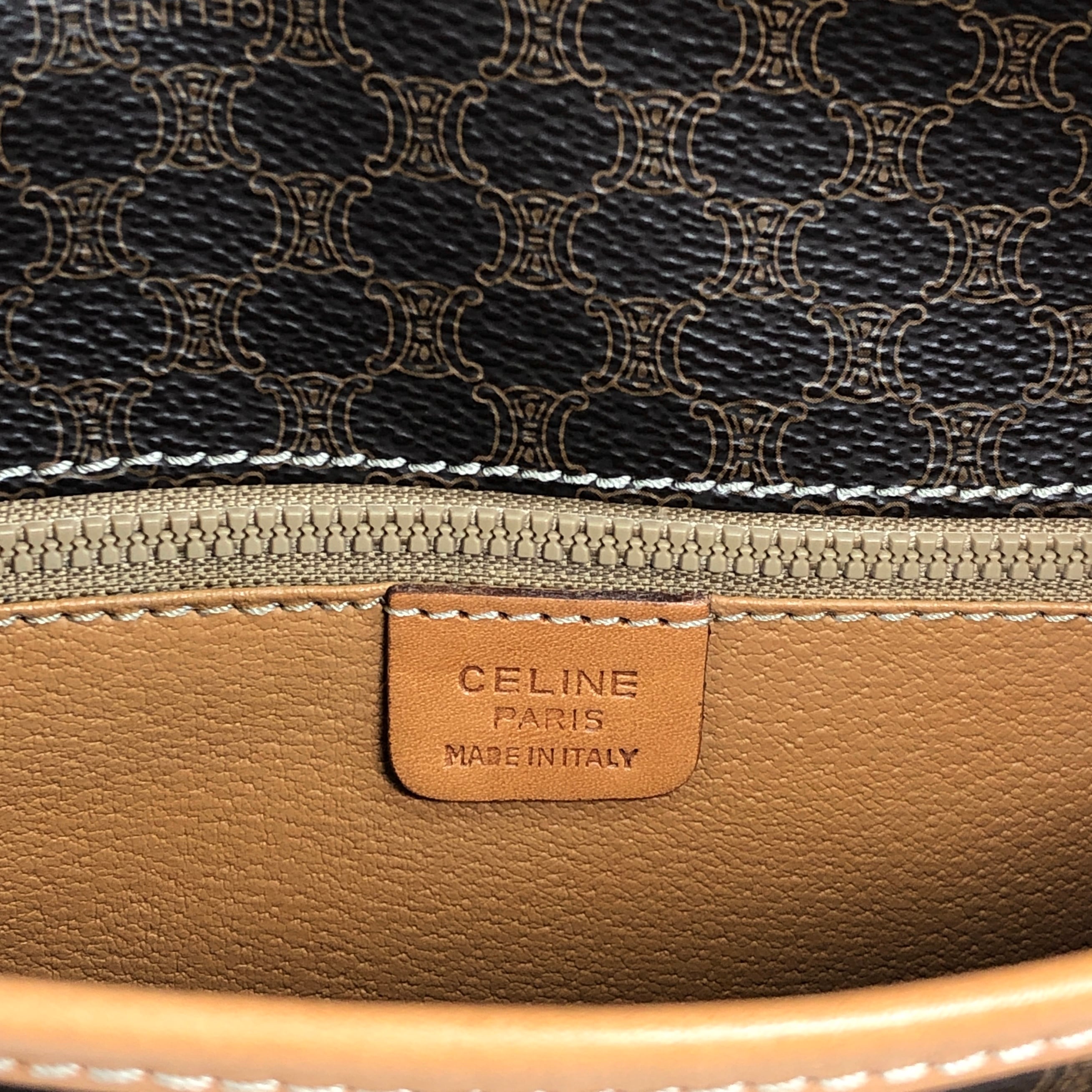 CELINE セリーヌ ショルダーバッグ ブラウン ブラゾン型押し フロントバックル PVCレザー vintage ヴィンテージ オールド rxknkd