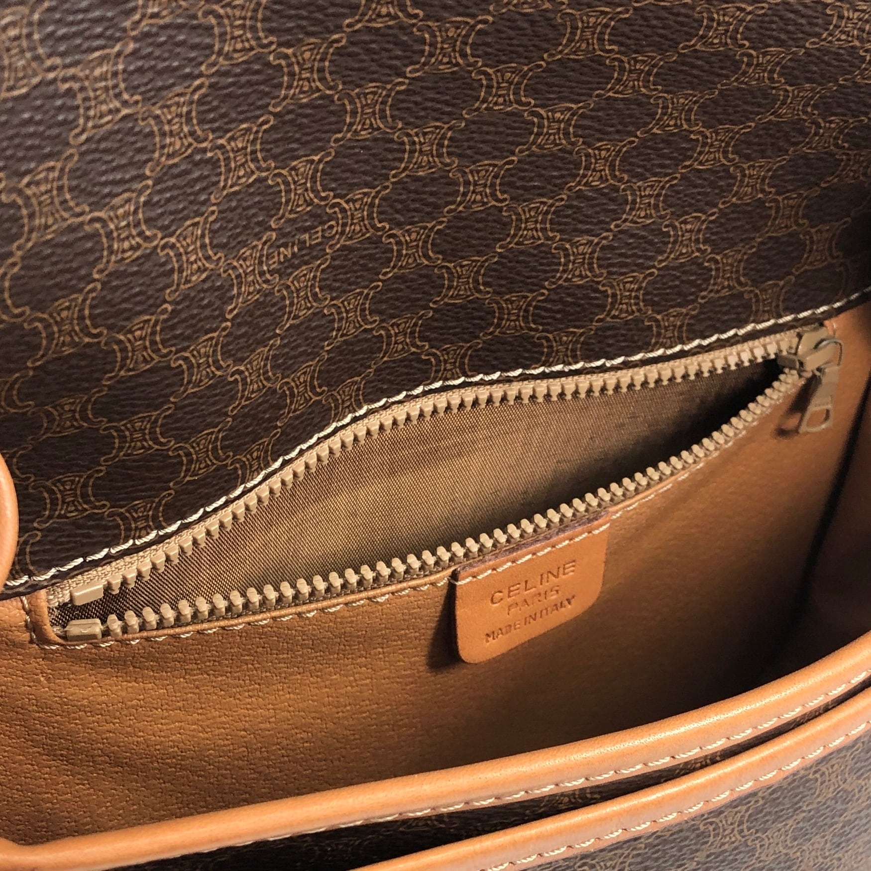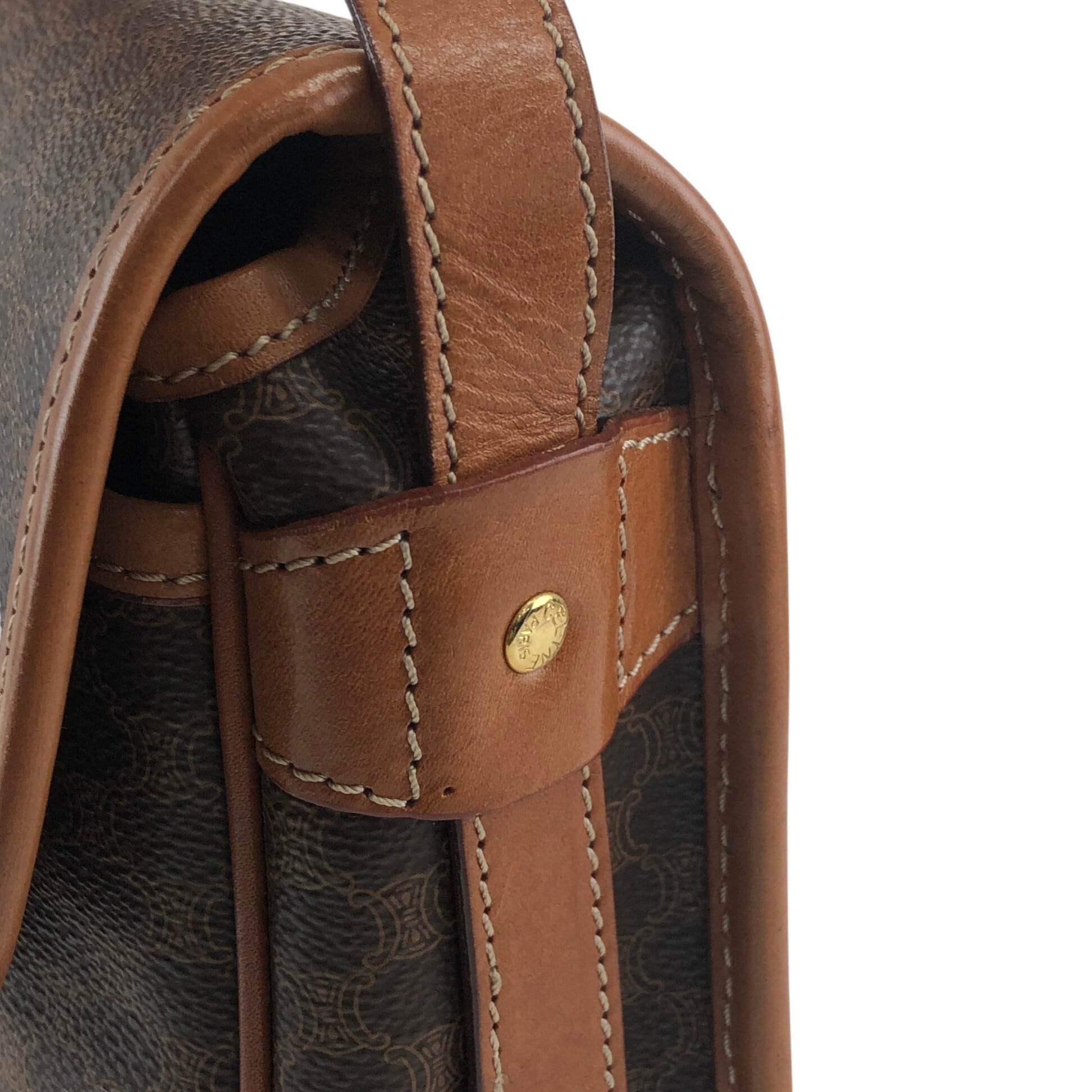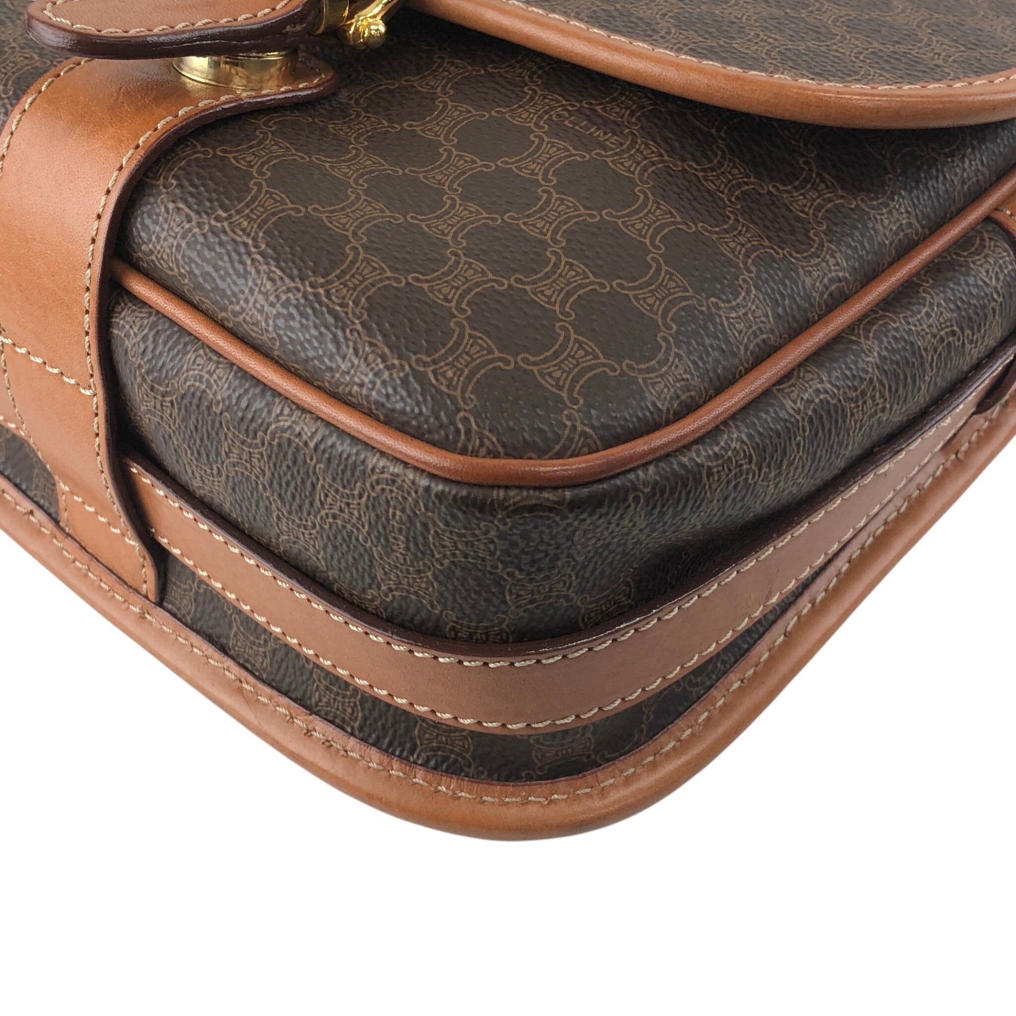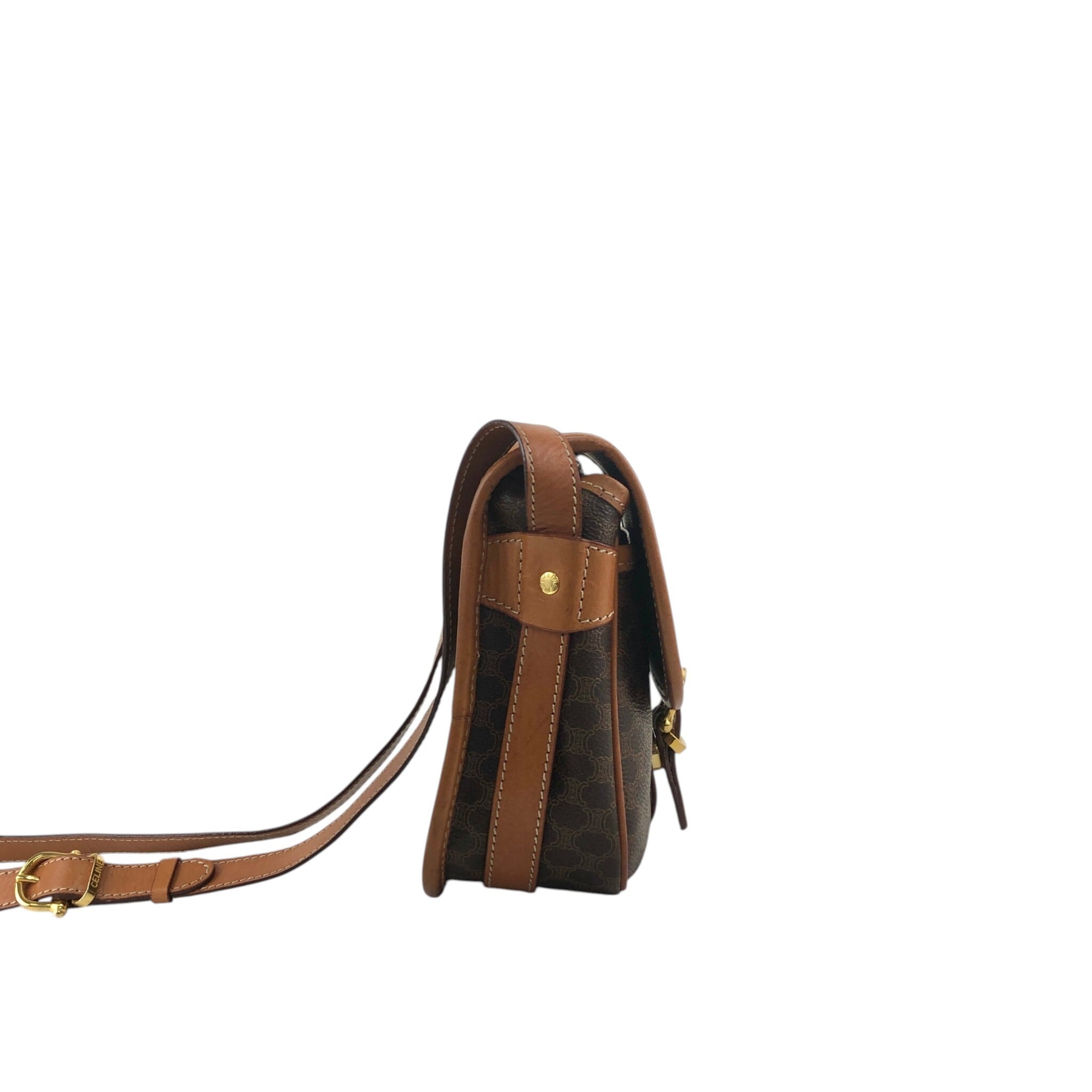 CELINE セリーヌ ショルダーバッグ ブラウン ブラゾン型押し フロントバックル PVCレザー vintage ヴィンテージ オールド rxknkd