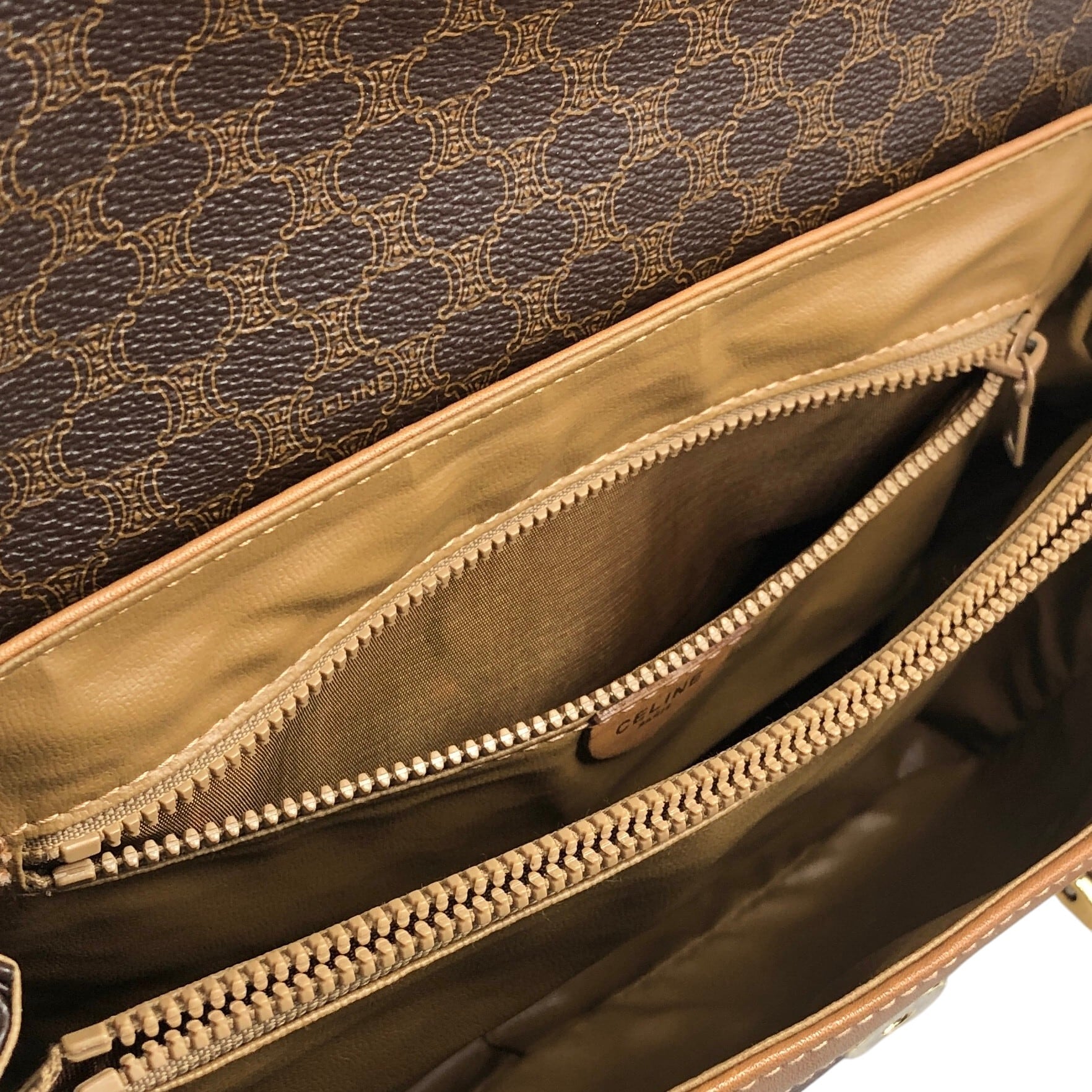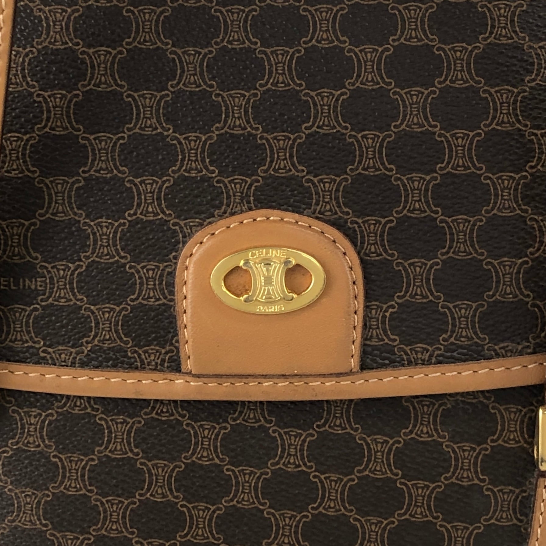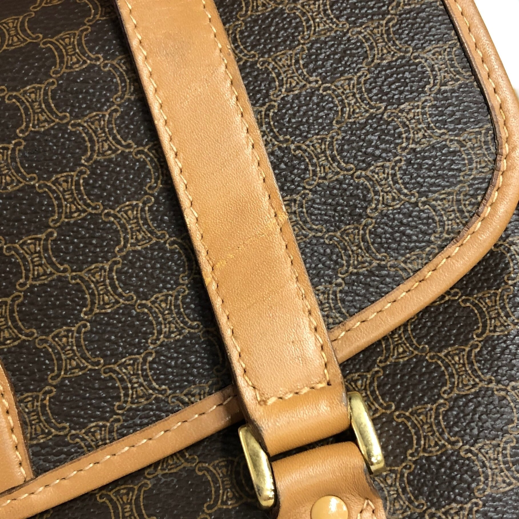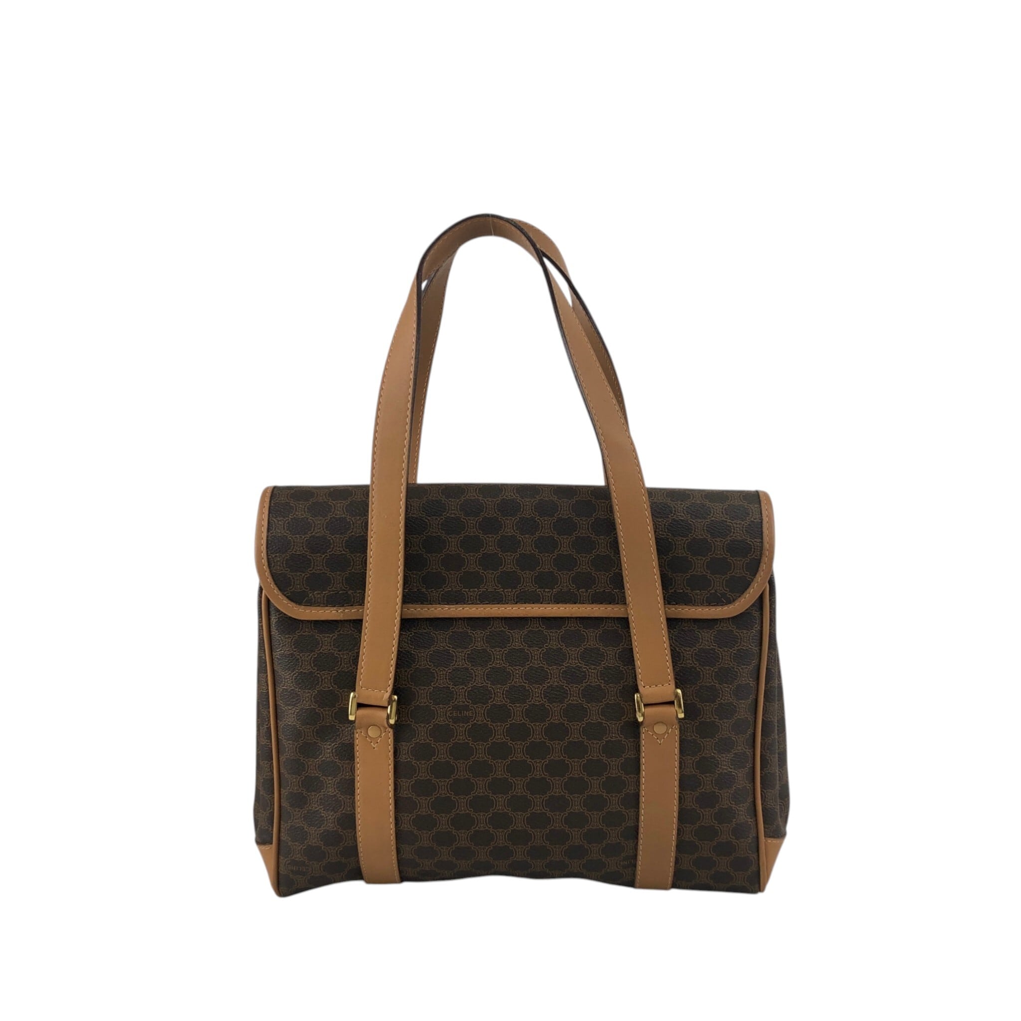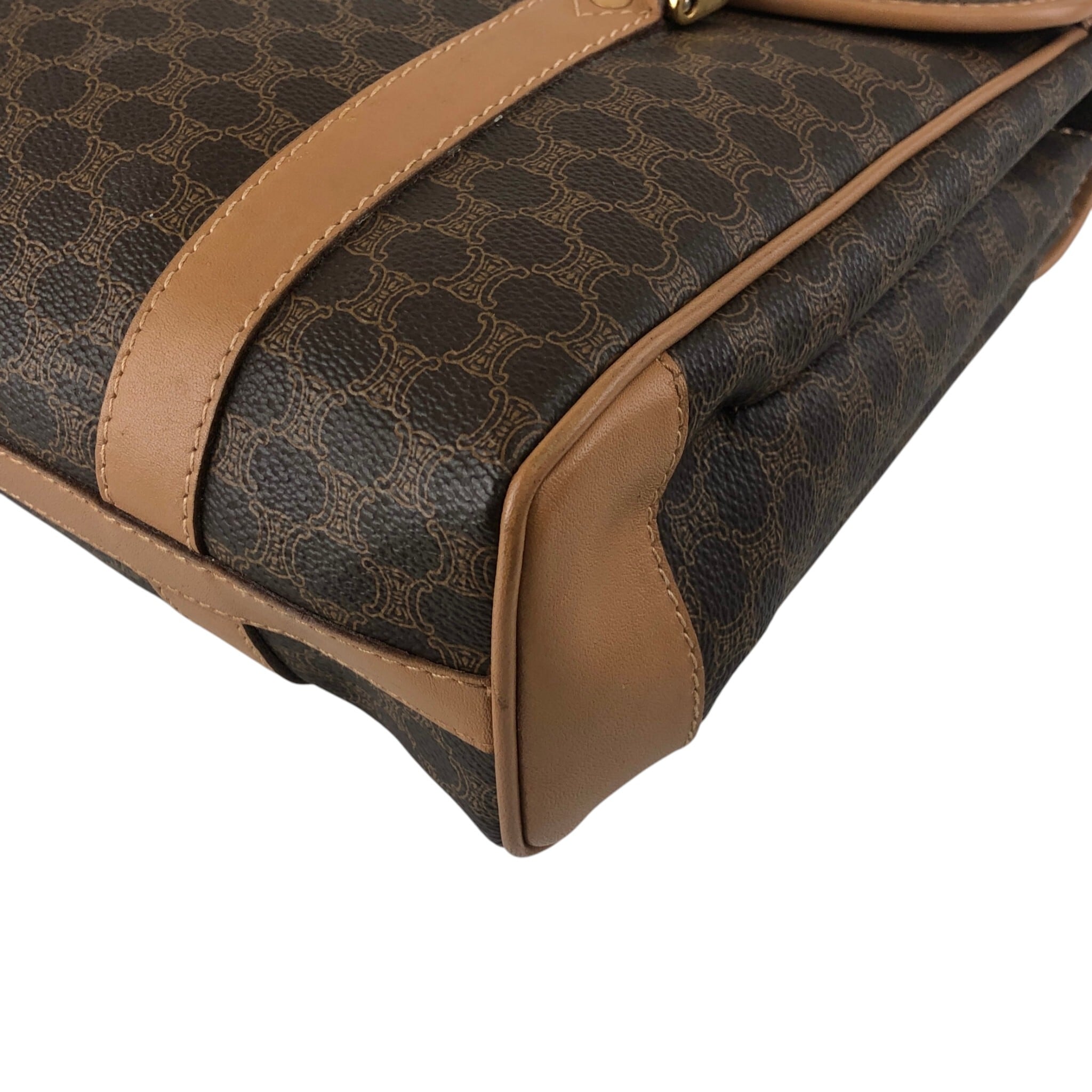 CELINE セリーヌ マカダム ショルダーバッグ ブラウン トリオンフ PVC フラップ vintage ヴィンテージ オールド 3jns43