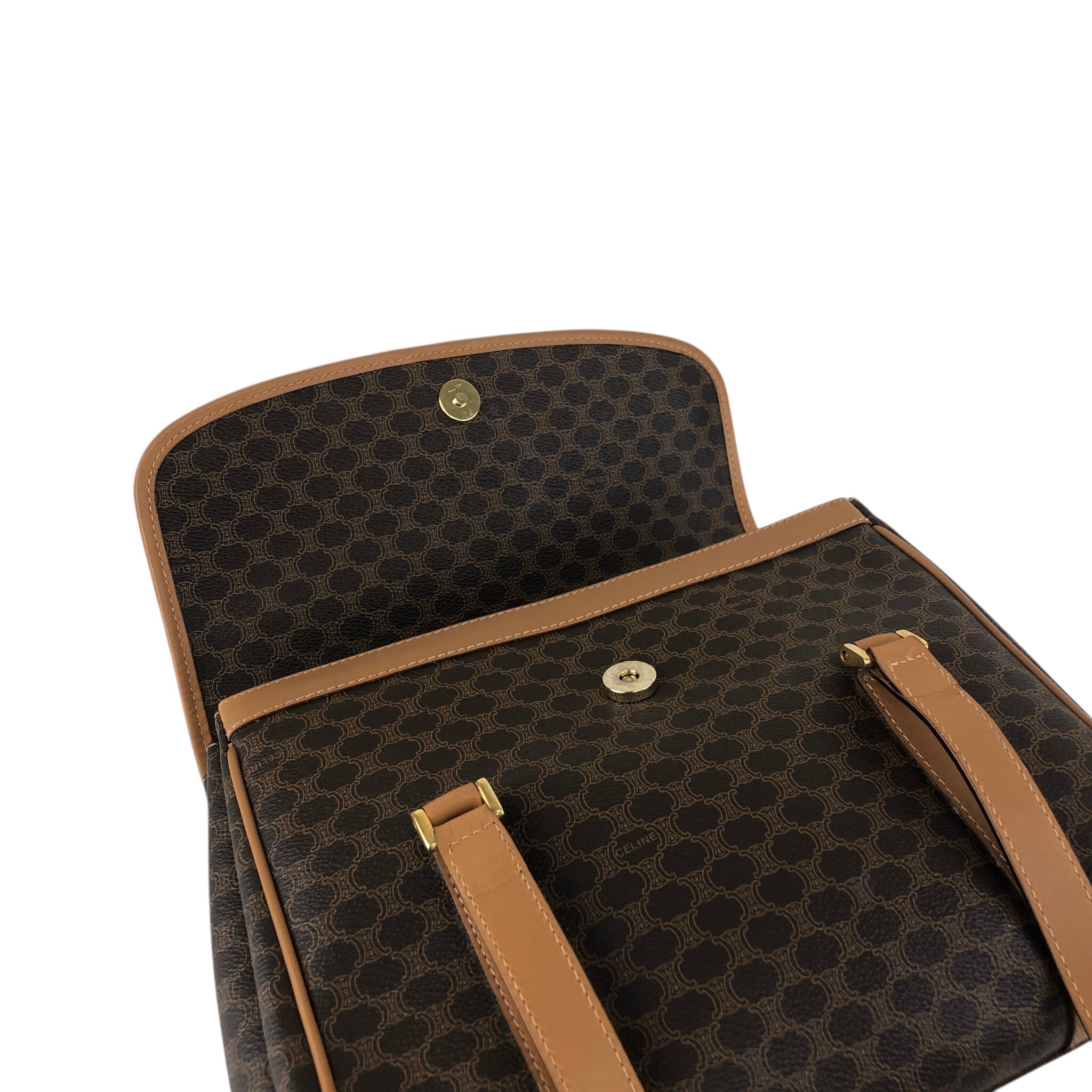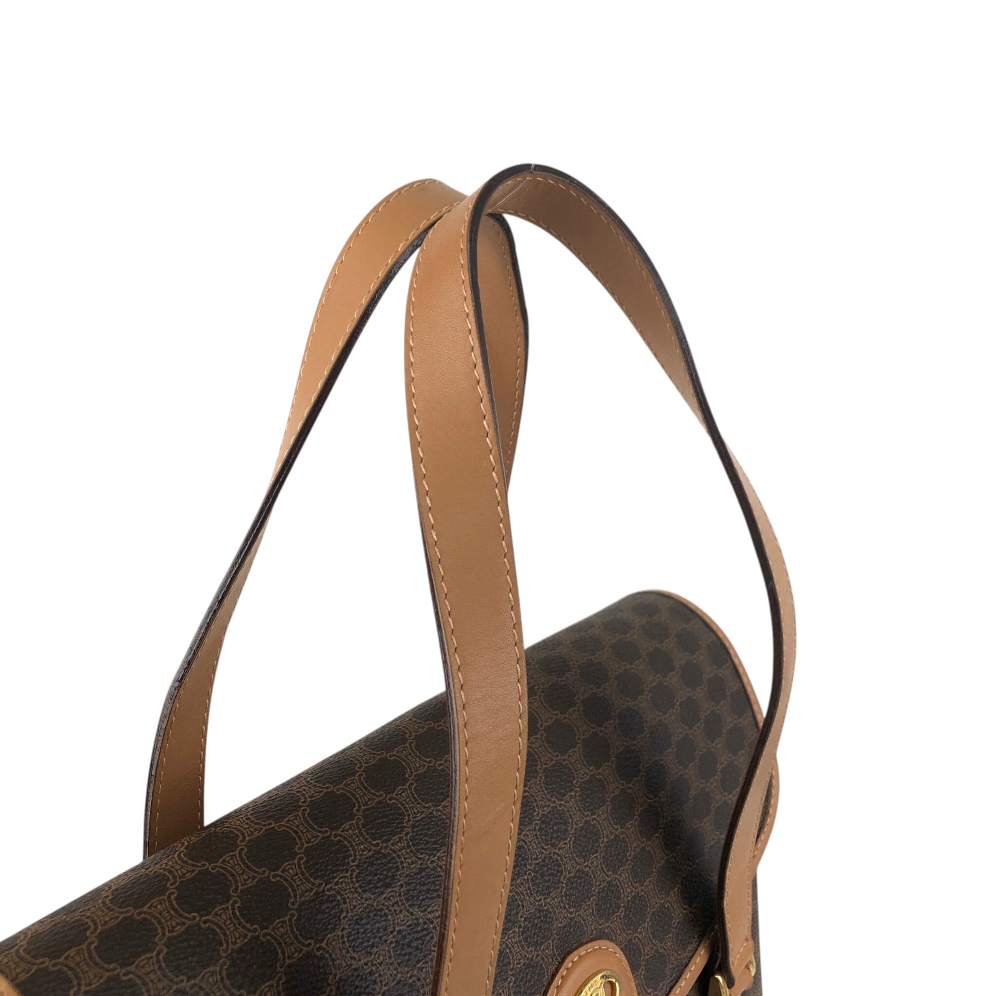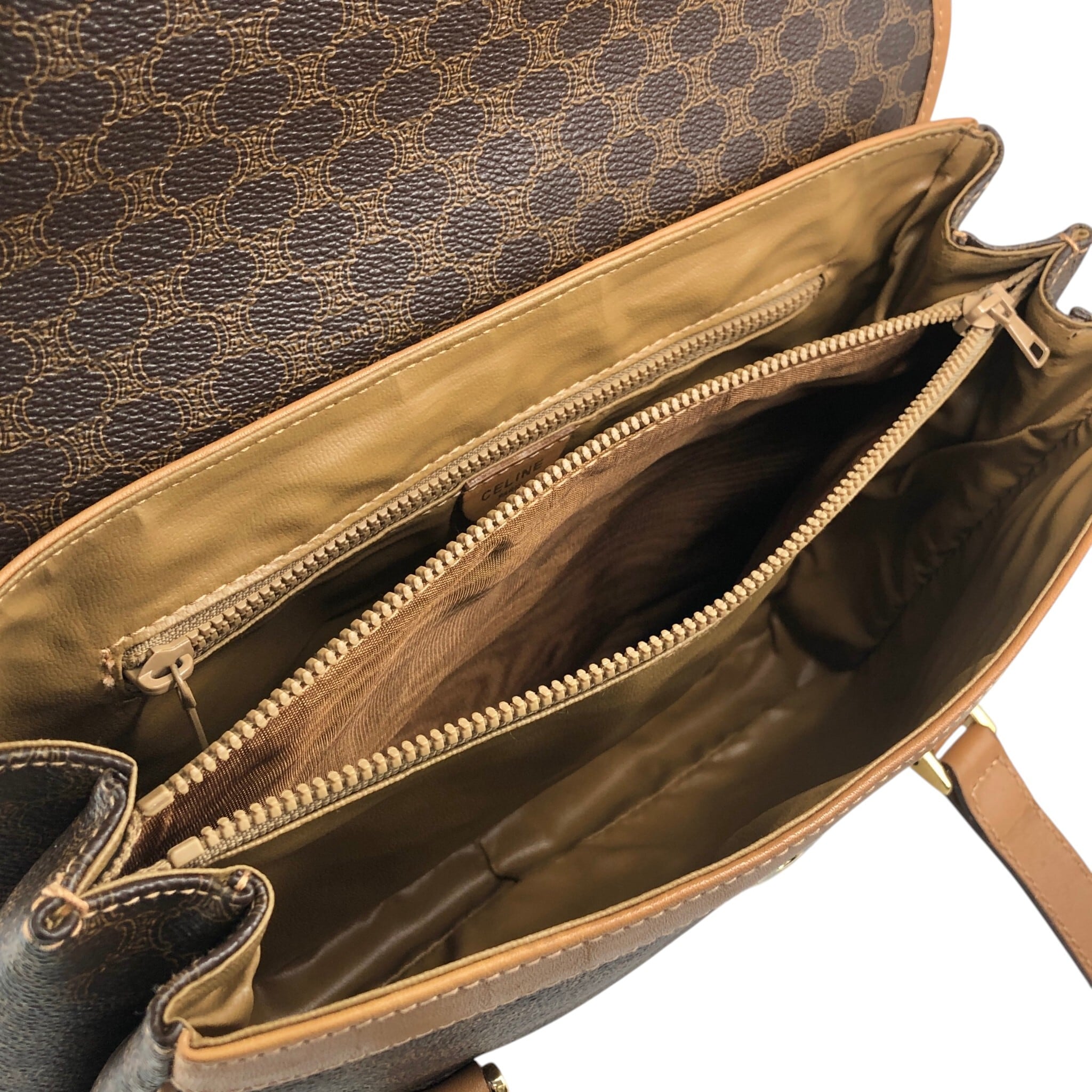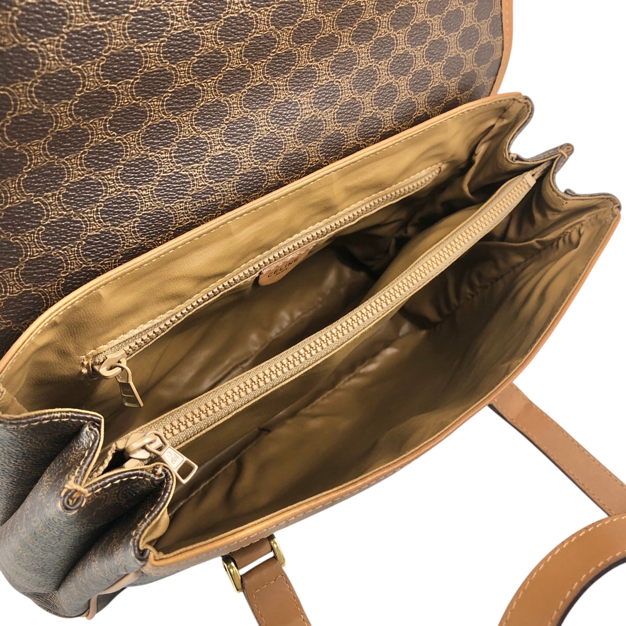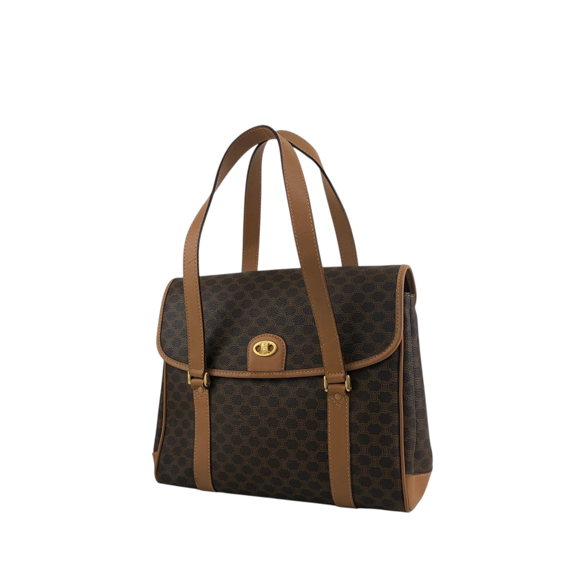 CELINE セリーヌ マカダム ショルダーバッグ ブラウン トリオンフ PVC フラップ vintage ヴィンテージ オールド 3jns43