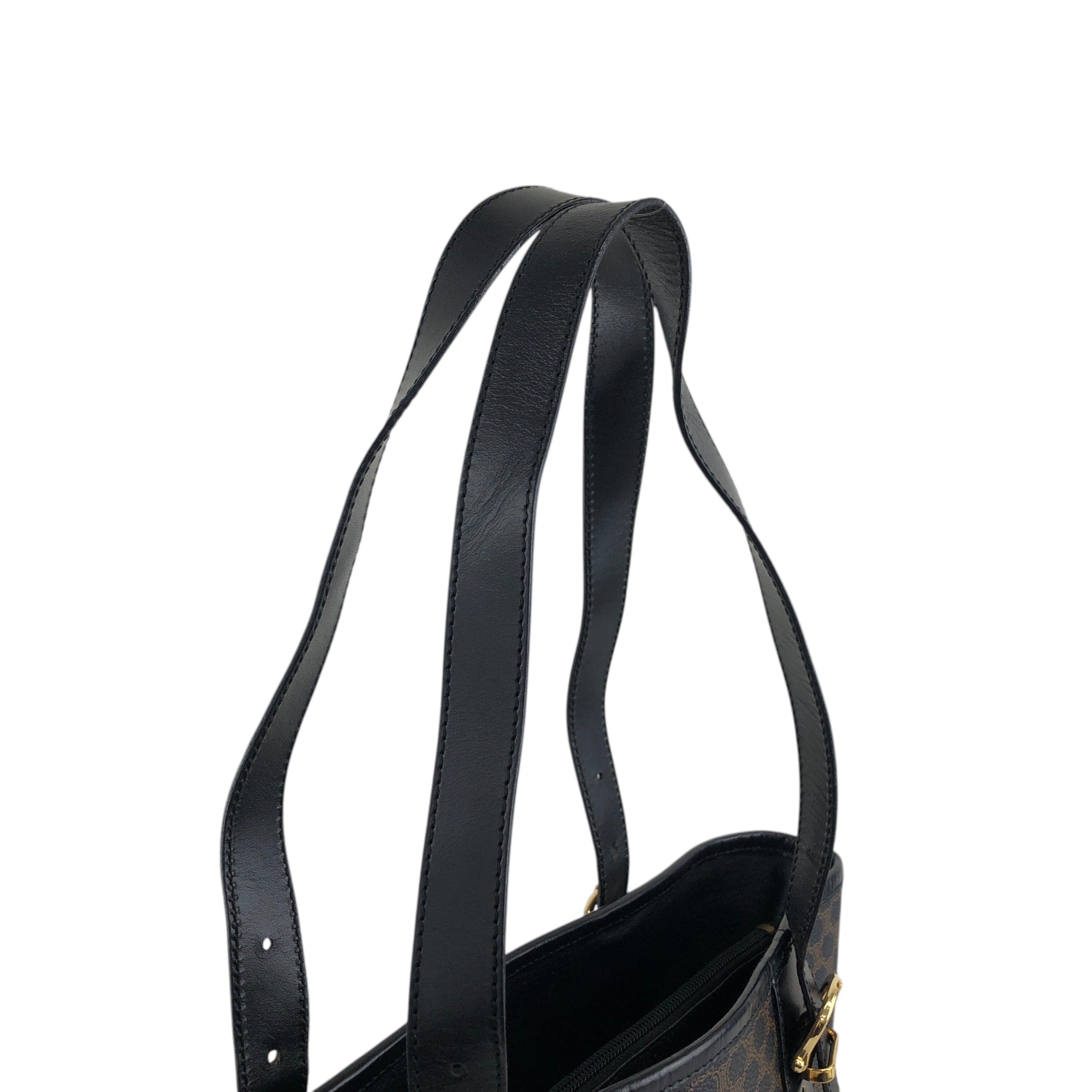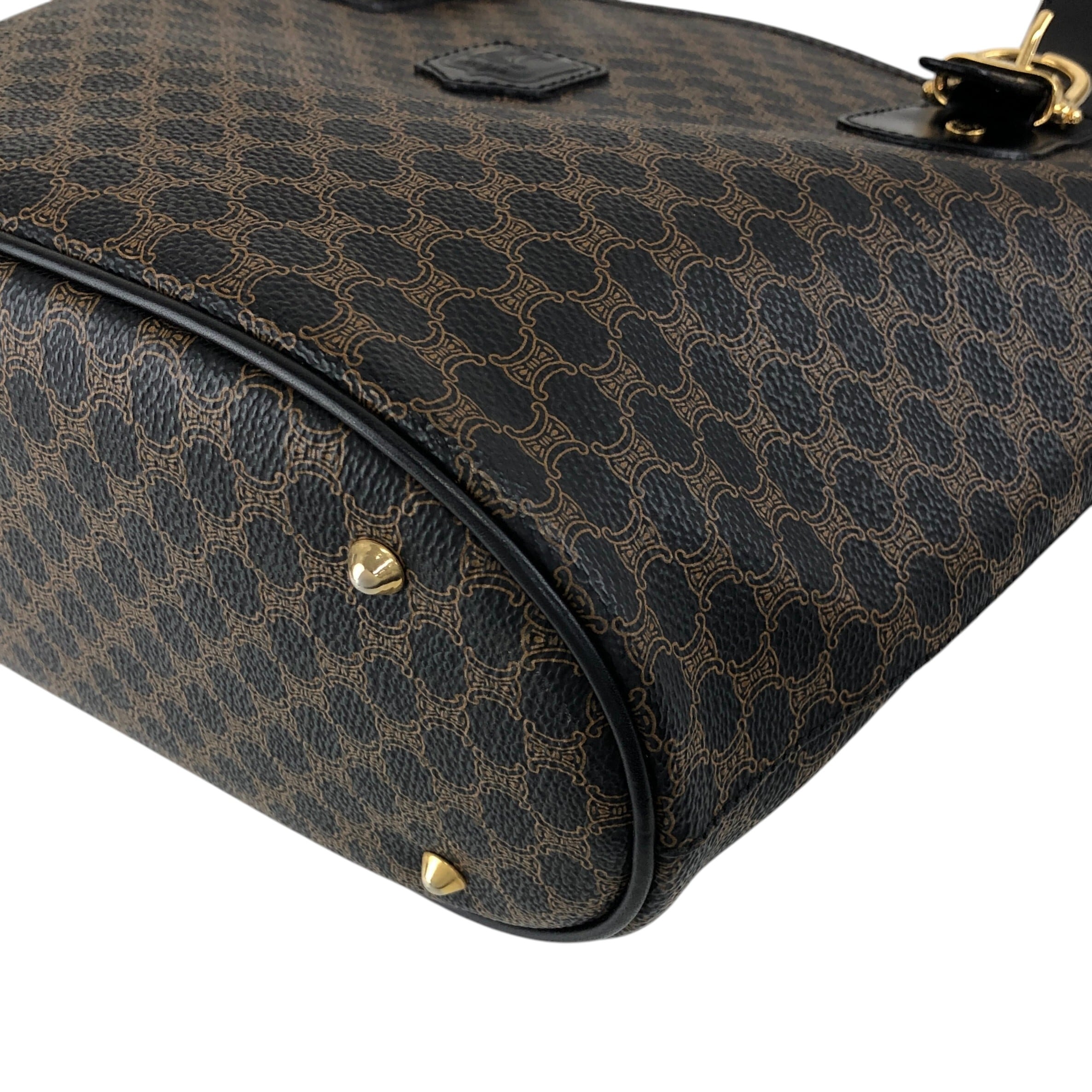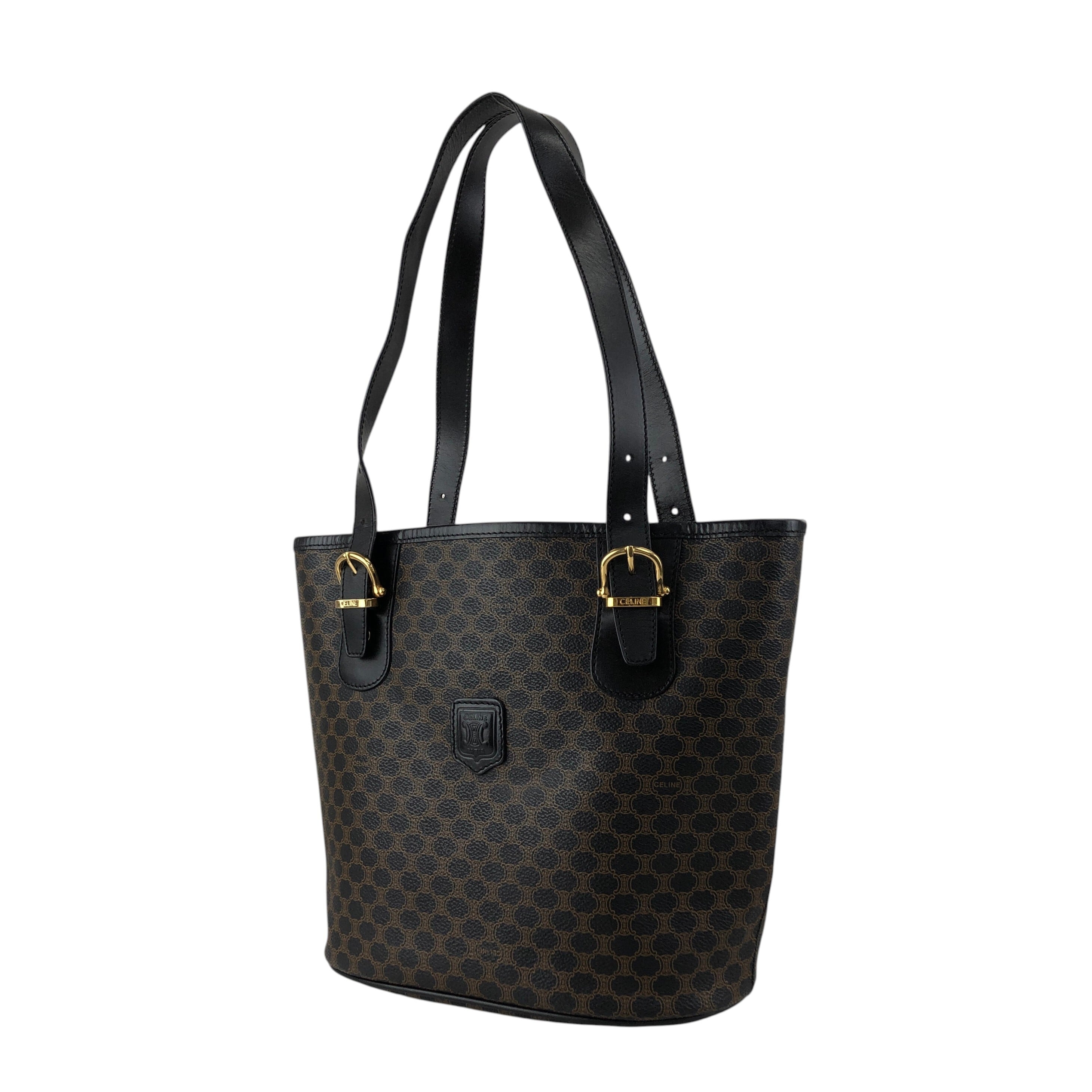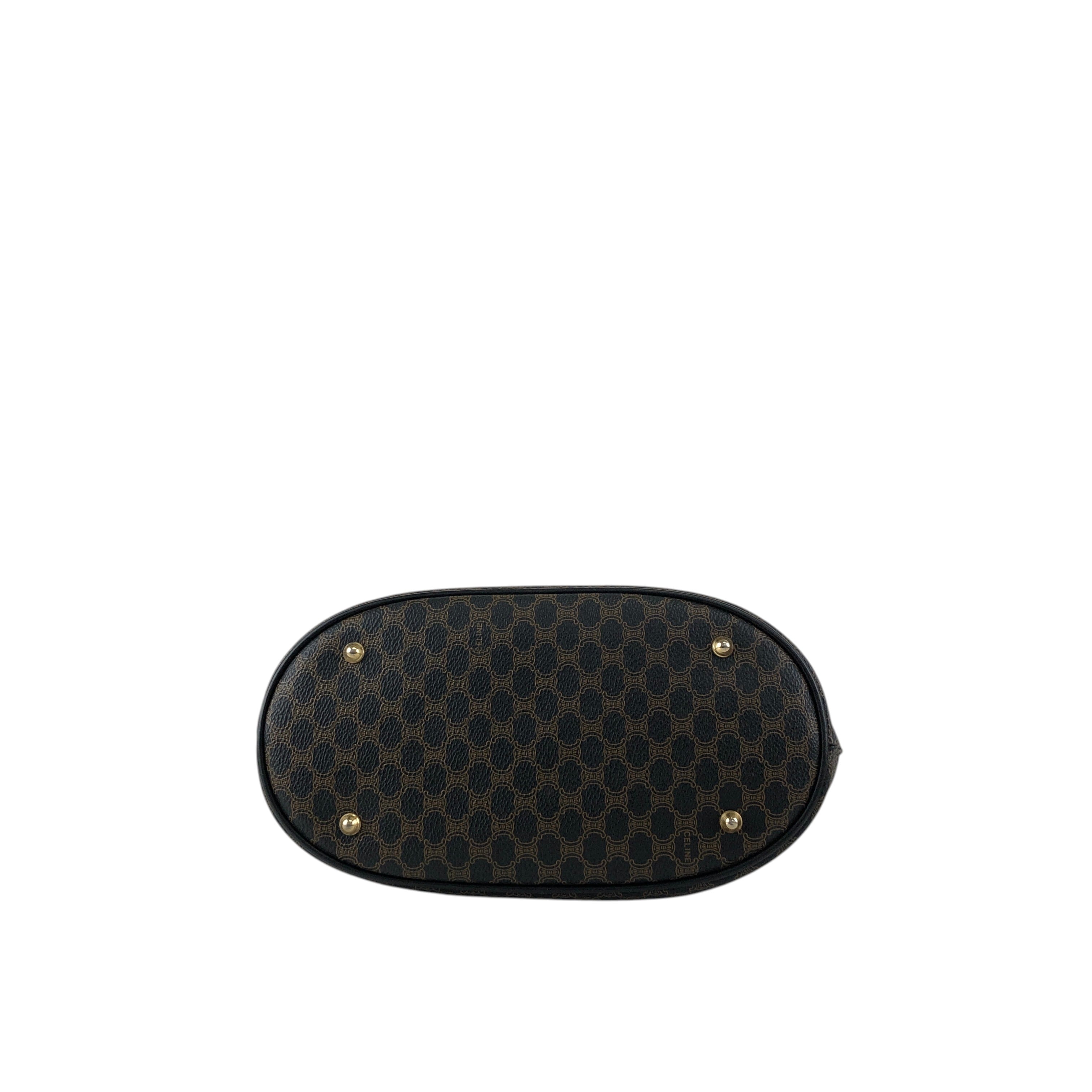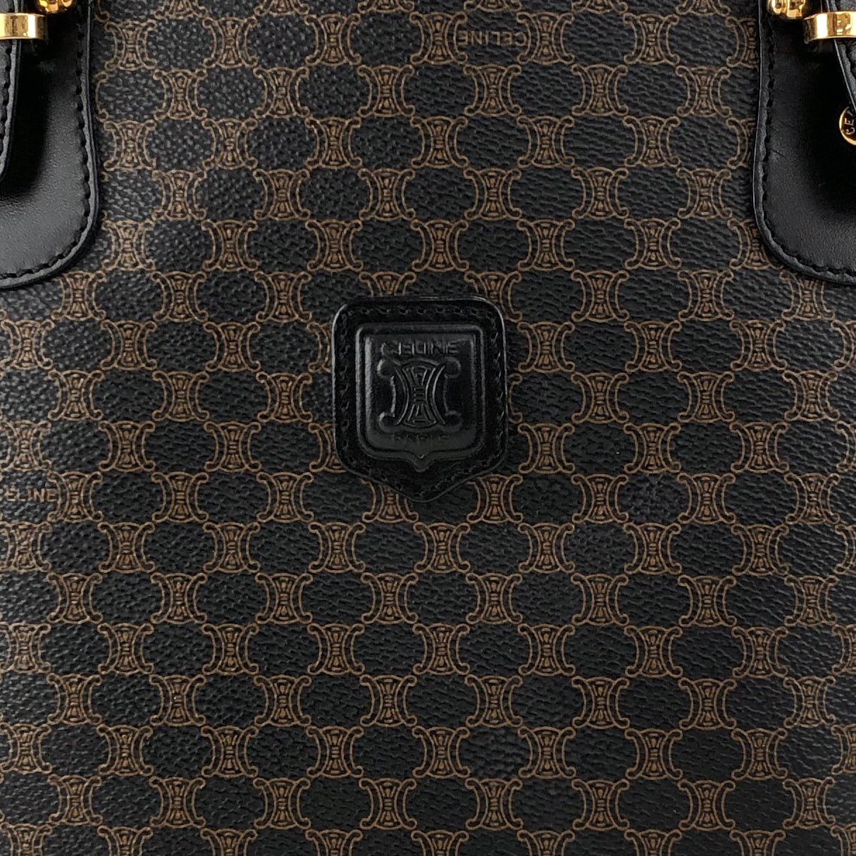 CELINE セリーヌ マカダム ハンドバッグ ブラック ブラゾン型押し PVC トートバッグ vintage ヴィンテージ オールド 7r6v3e