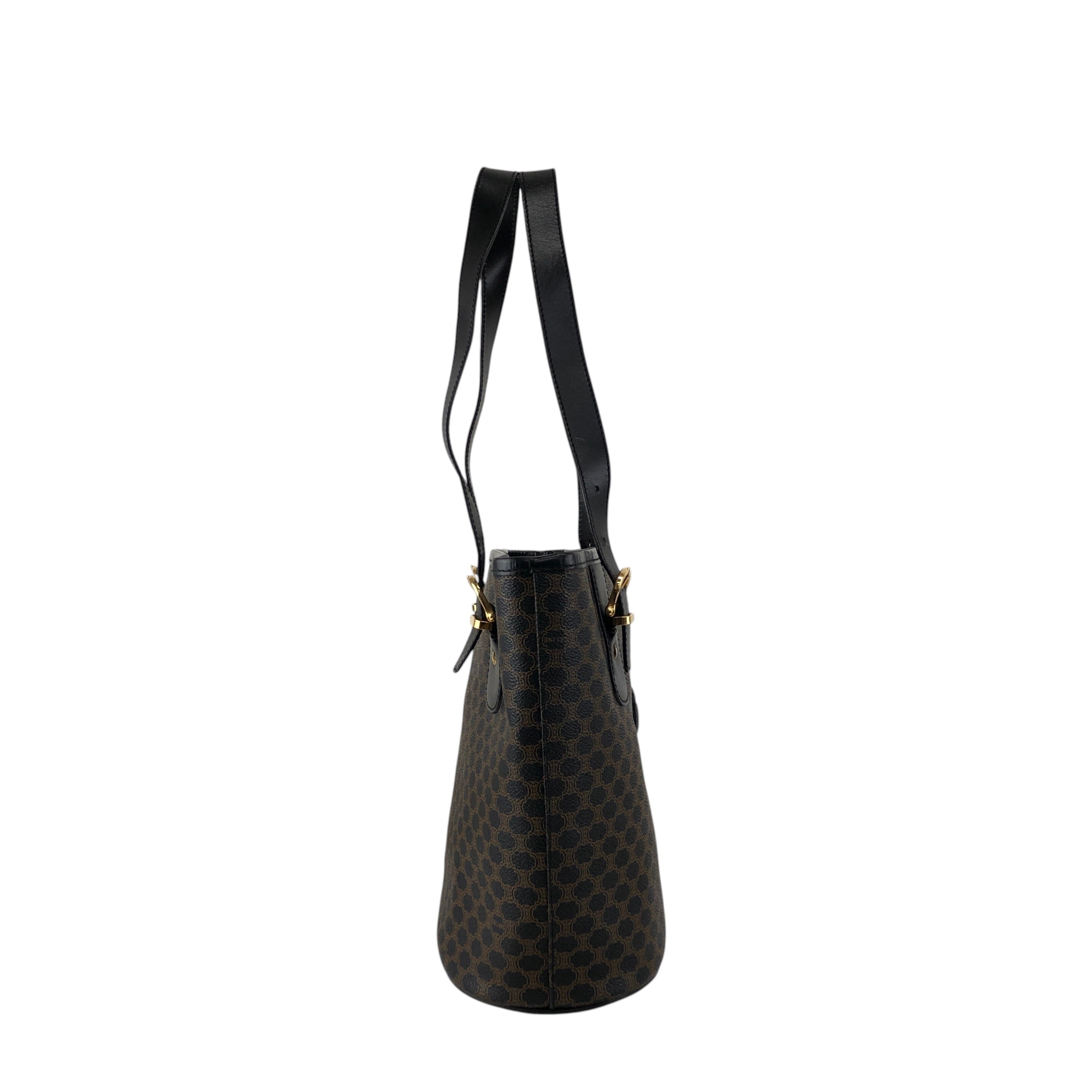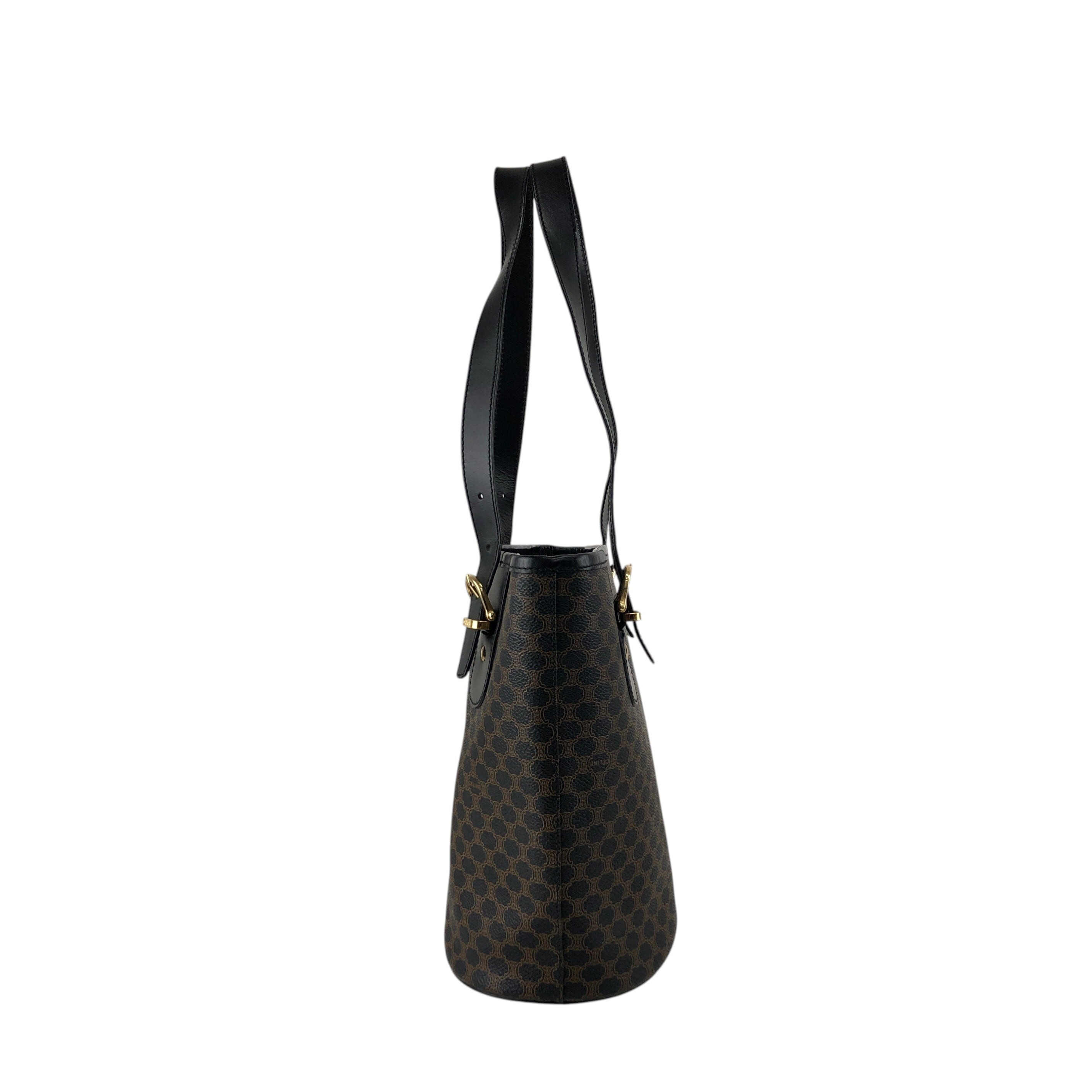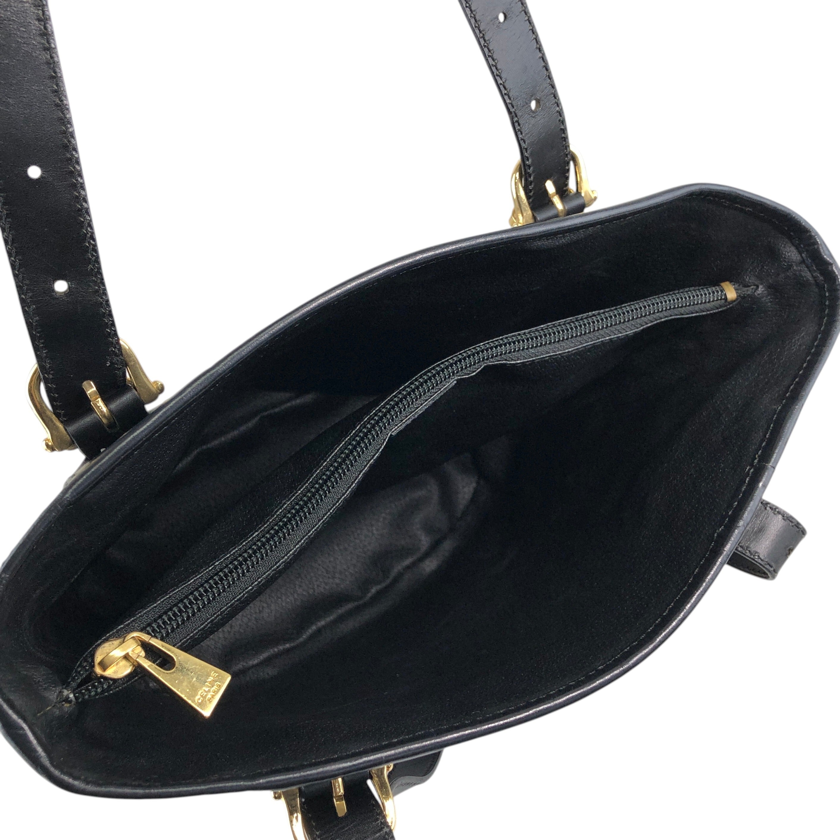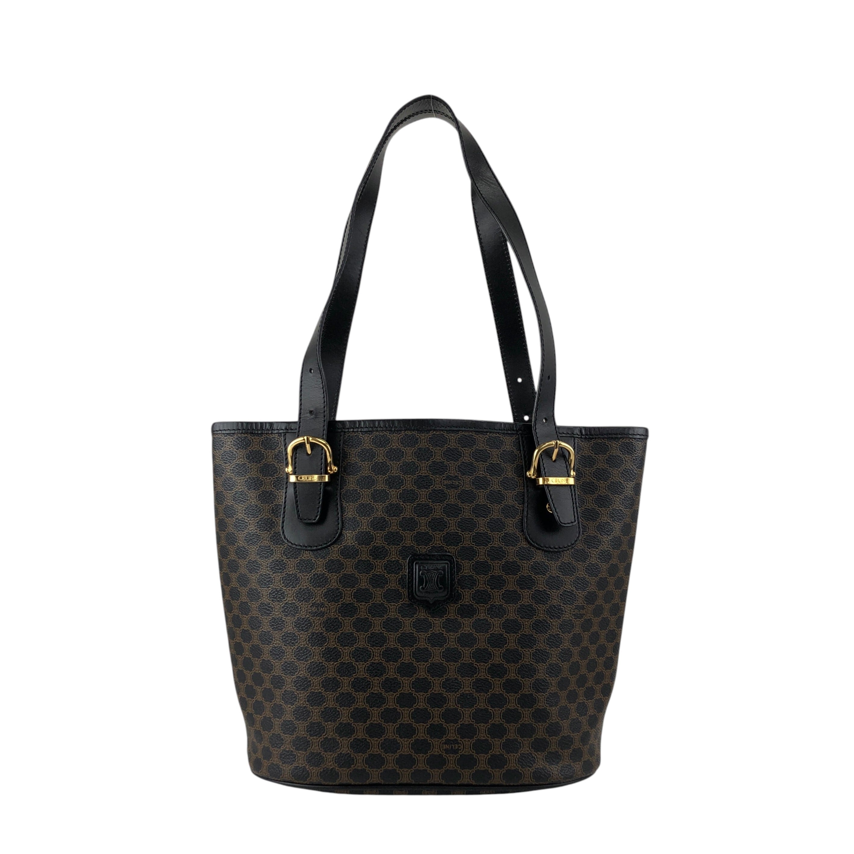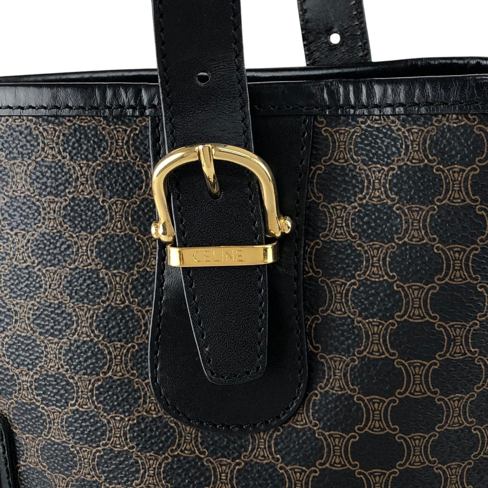 CELINE セリーヌ マカダム ハンドバッグ ブラック ブラゾン型押し PVC トートバッグ vintage ヴィンテージ オールド 7r6v3e