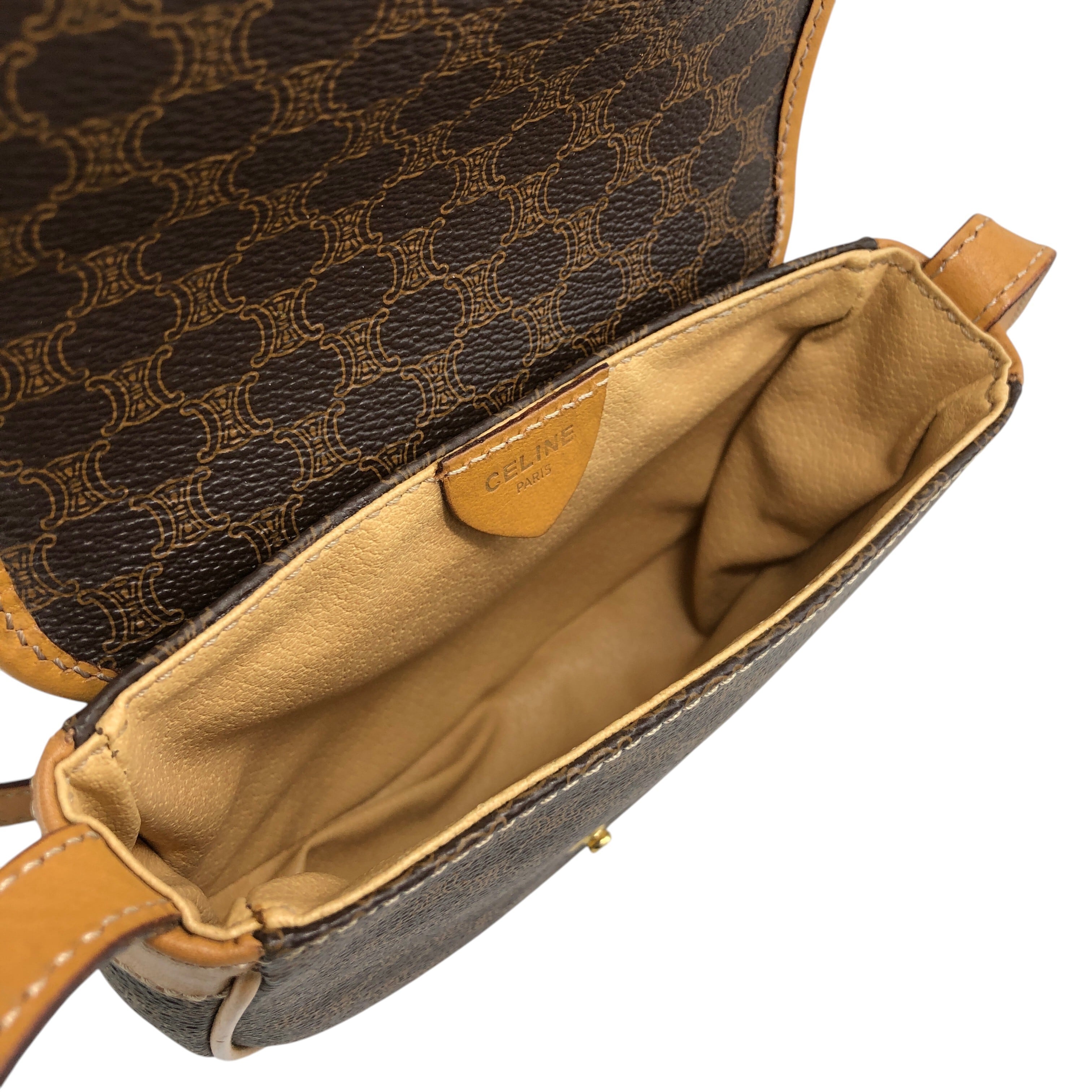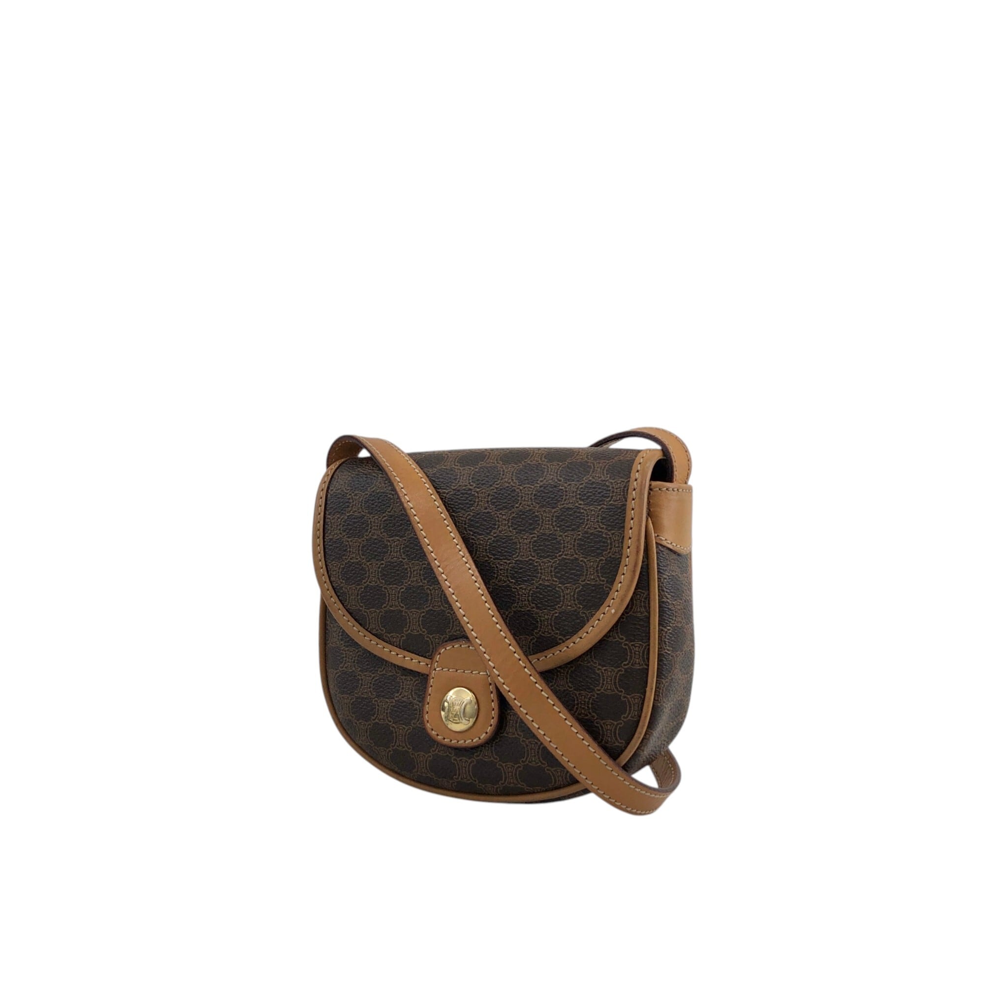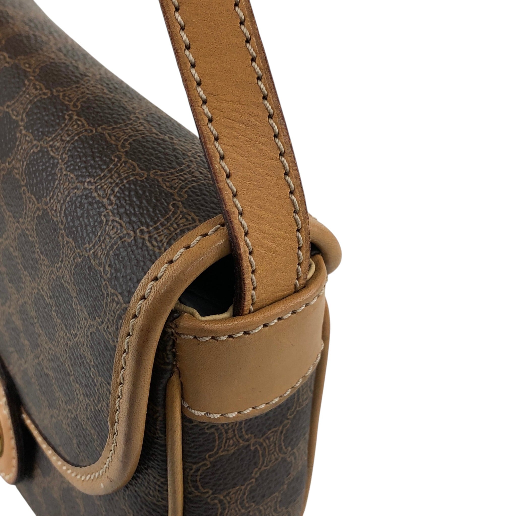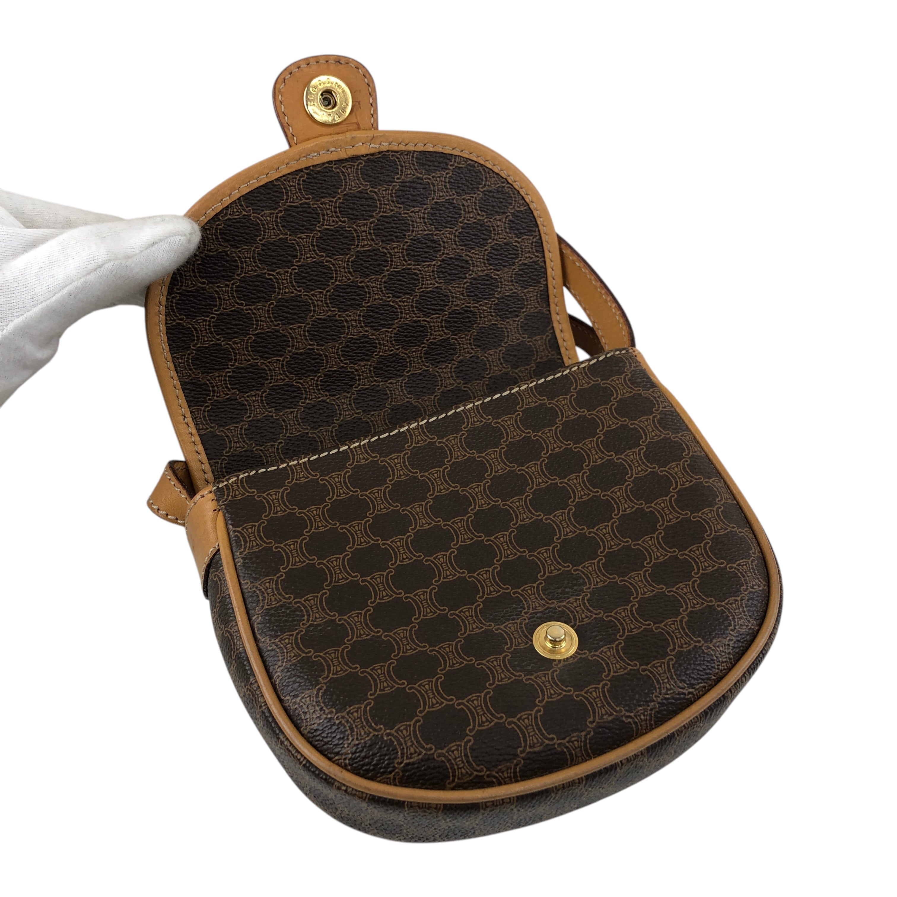 CELINE セリーヌ マカダム ショルダーバッグ ブラウン トリオンフ PVC ミニバッグ vintage ヴィンテージ オールド mfvtfa