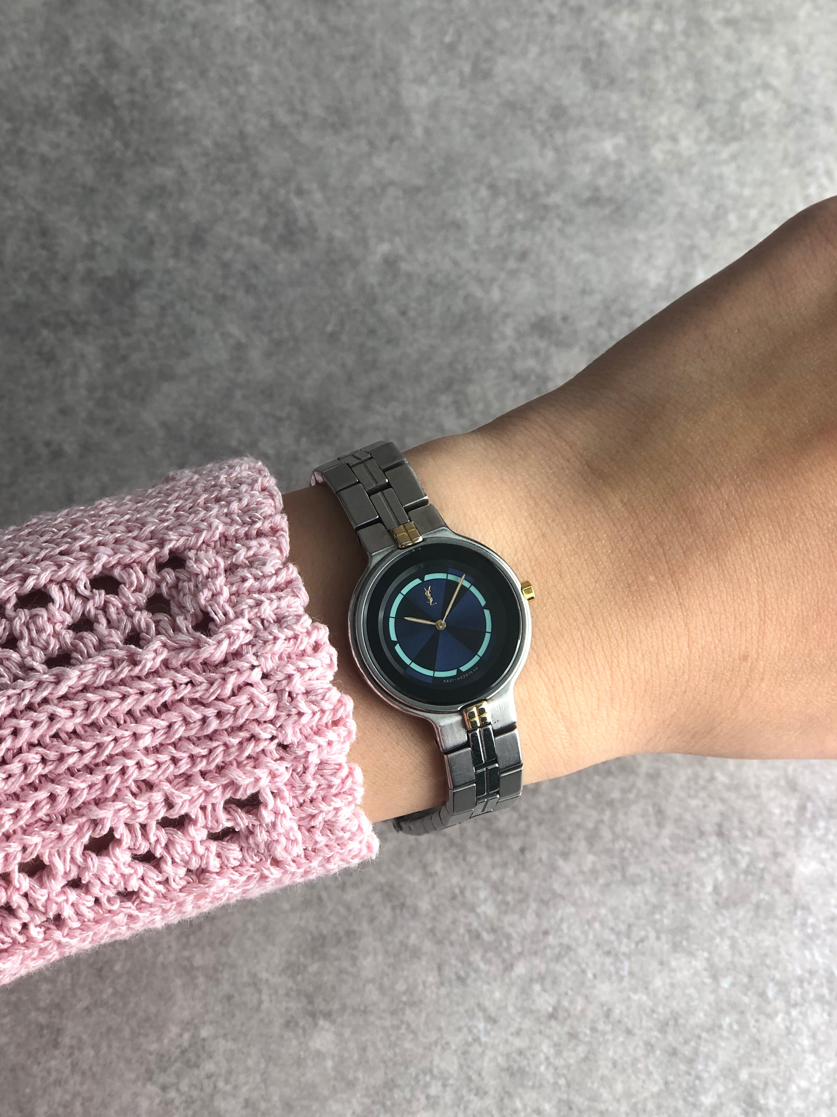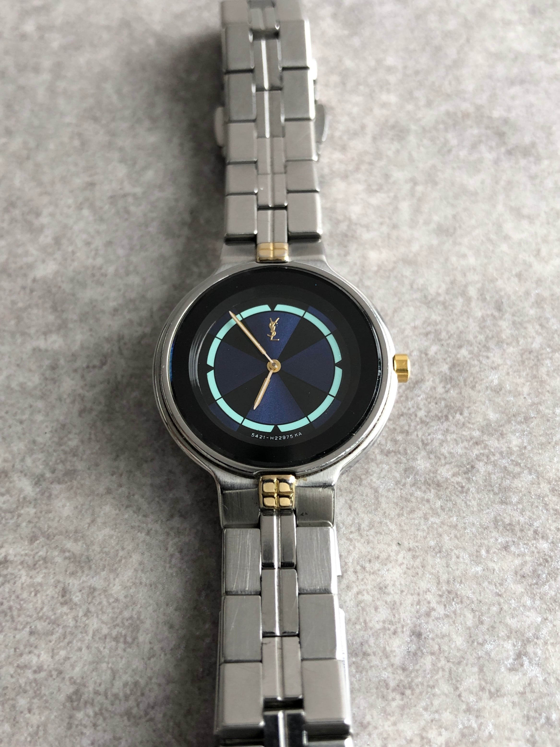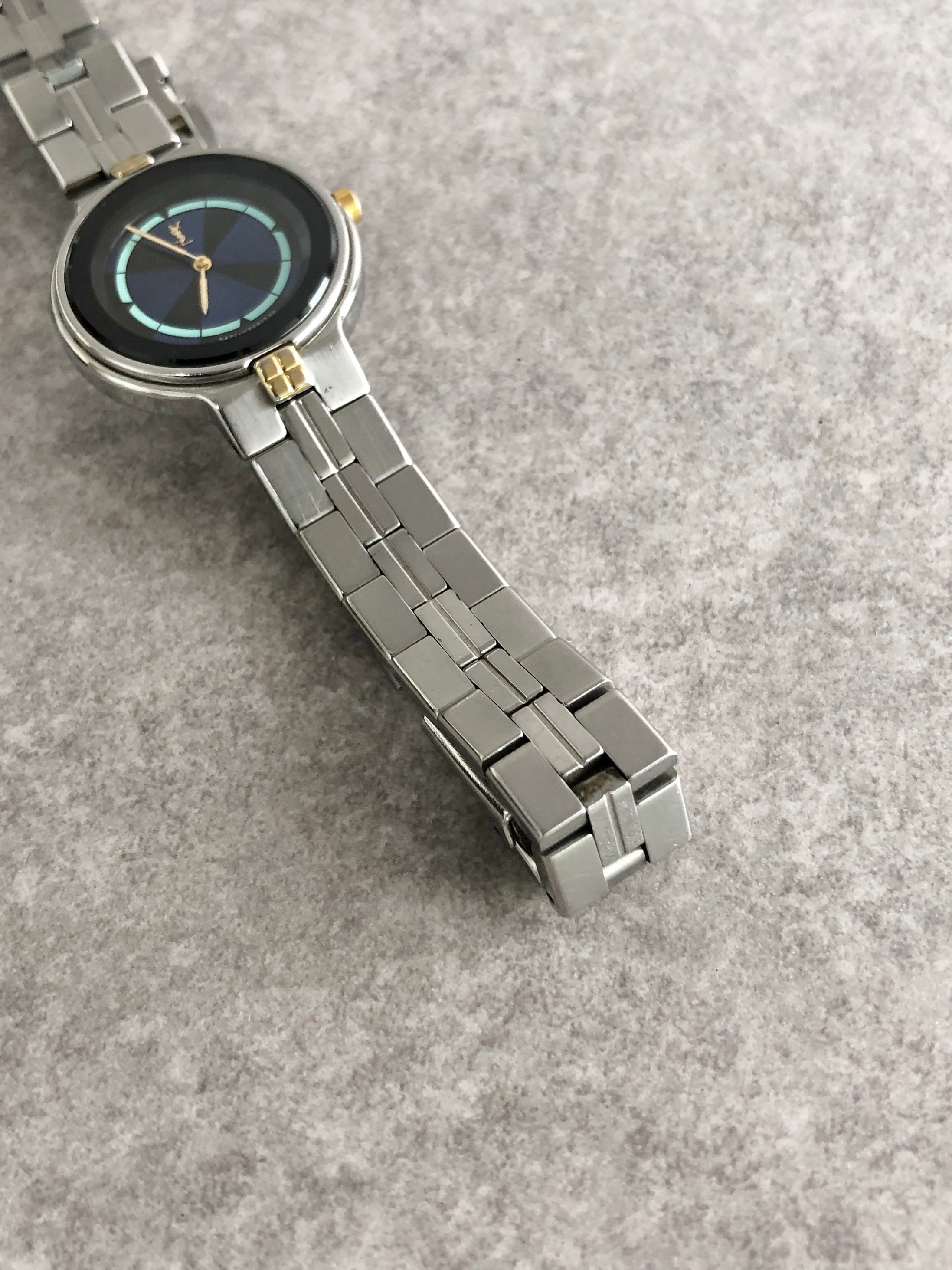 Yves Saint Laurent イヴ・サンローラン 腕時計 シルバー×ブルー YSL ステンレススチール コンビカラー vintage ヴィンテージ オールド 3x8viy