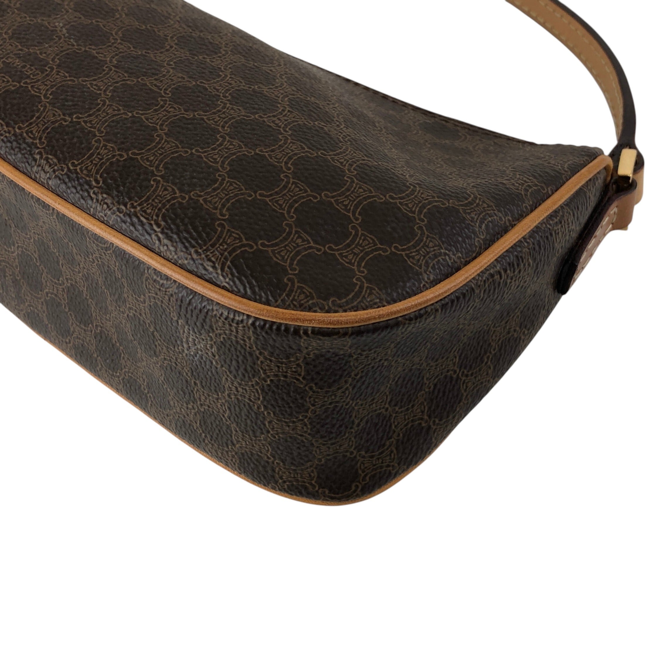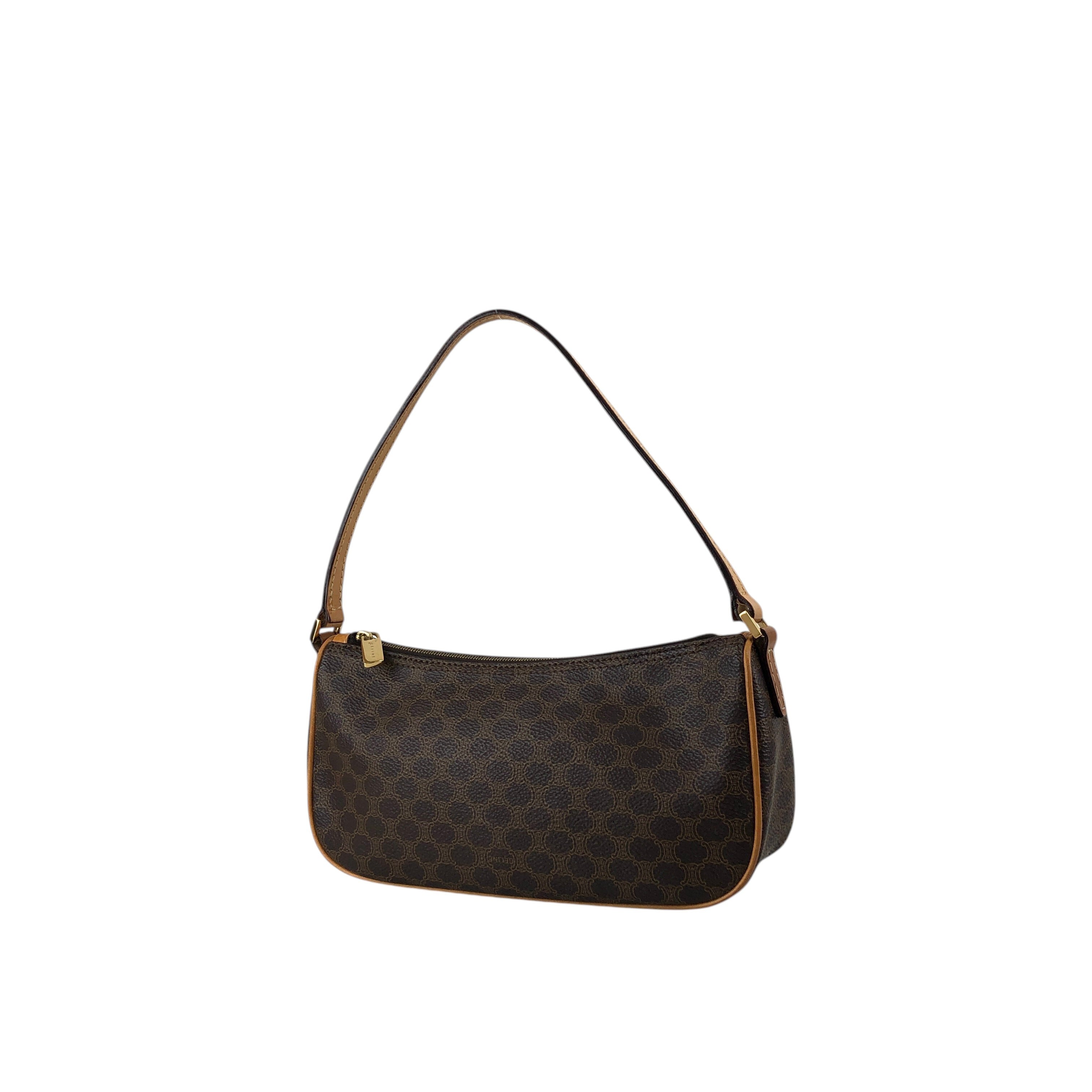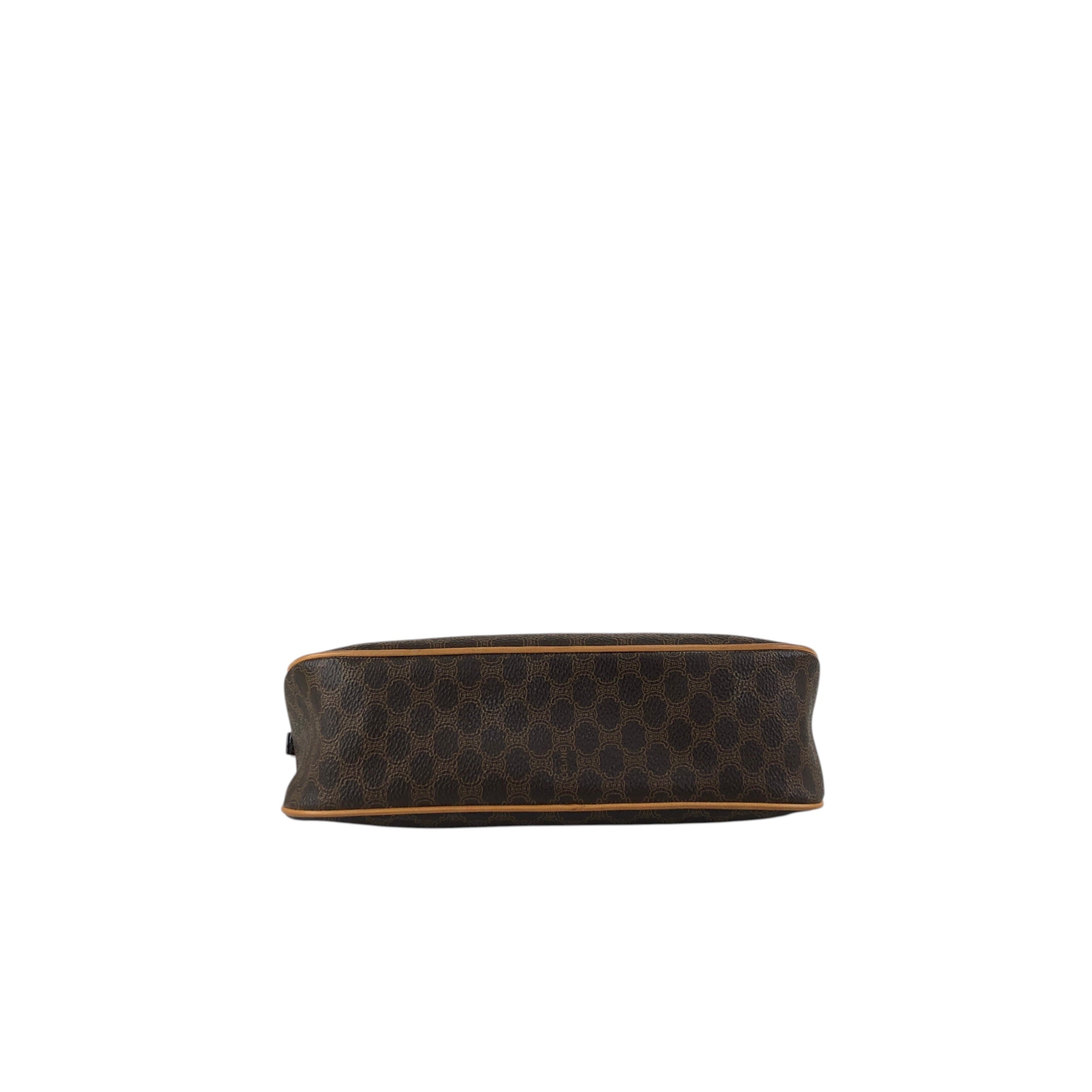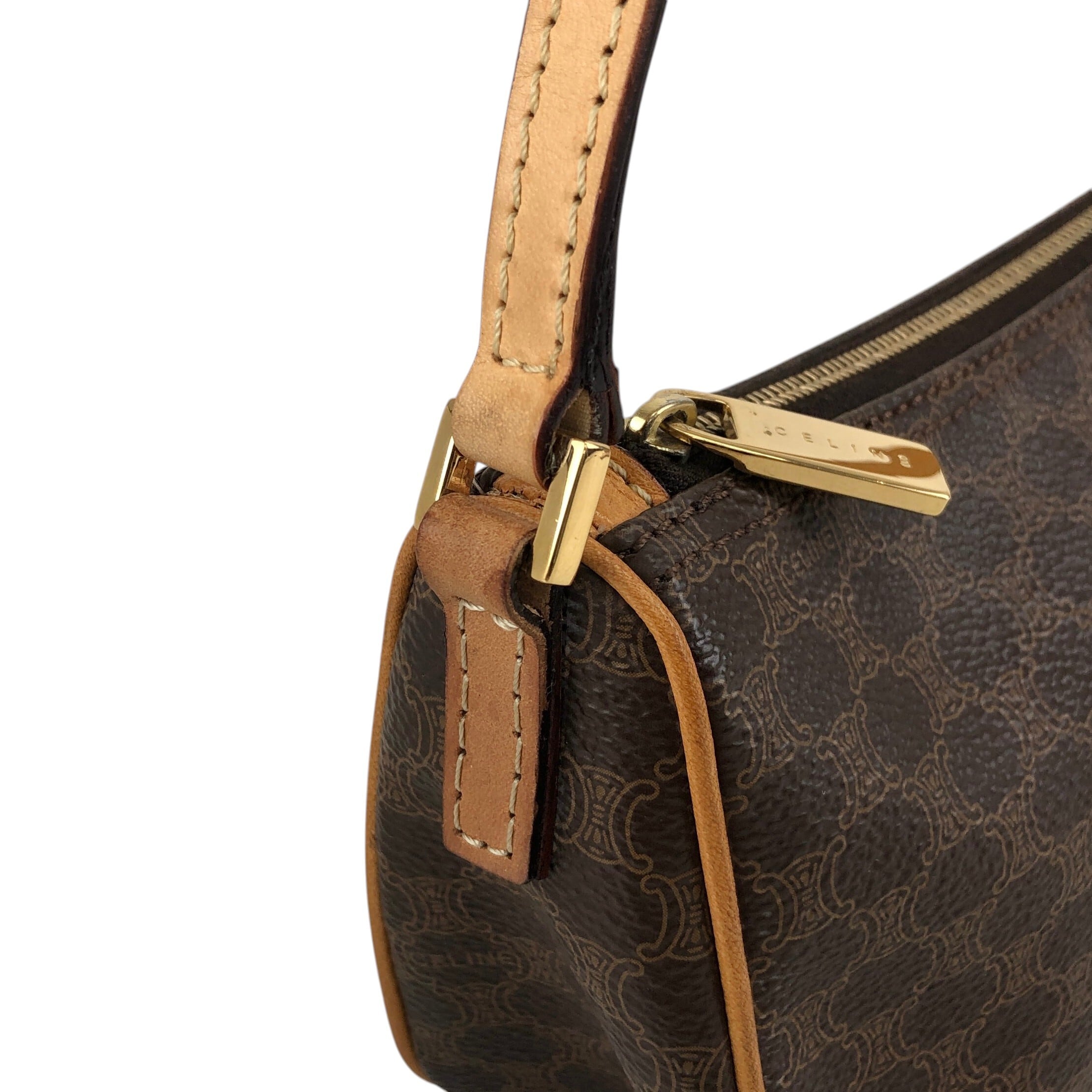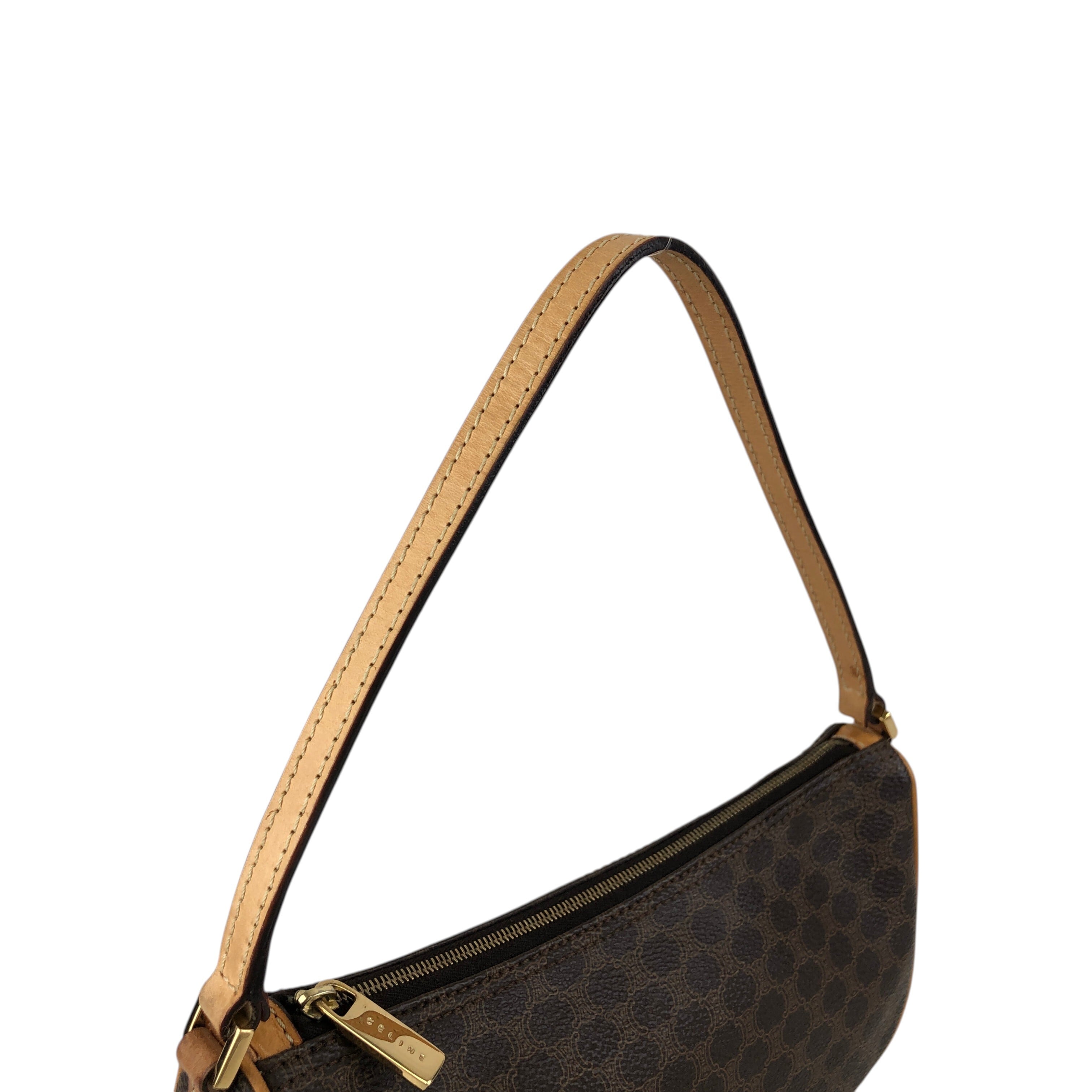 CELINE セリーヌ マカダム ショルダーバッグ ブラウン PVCレザー ミニバッグ vintage ヴィンテージ オールド 7jkz7v