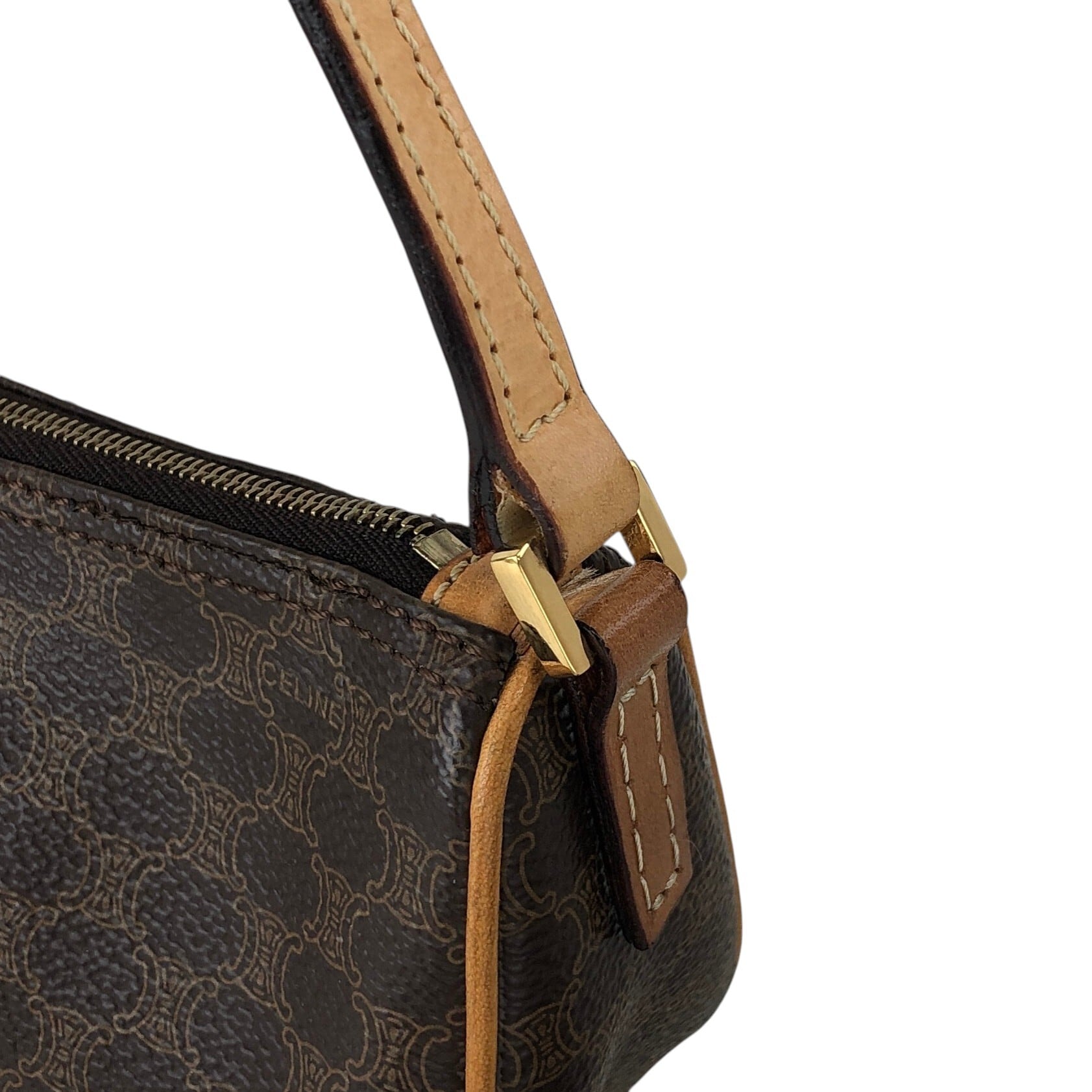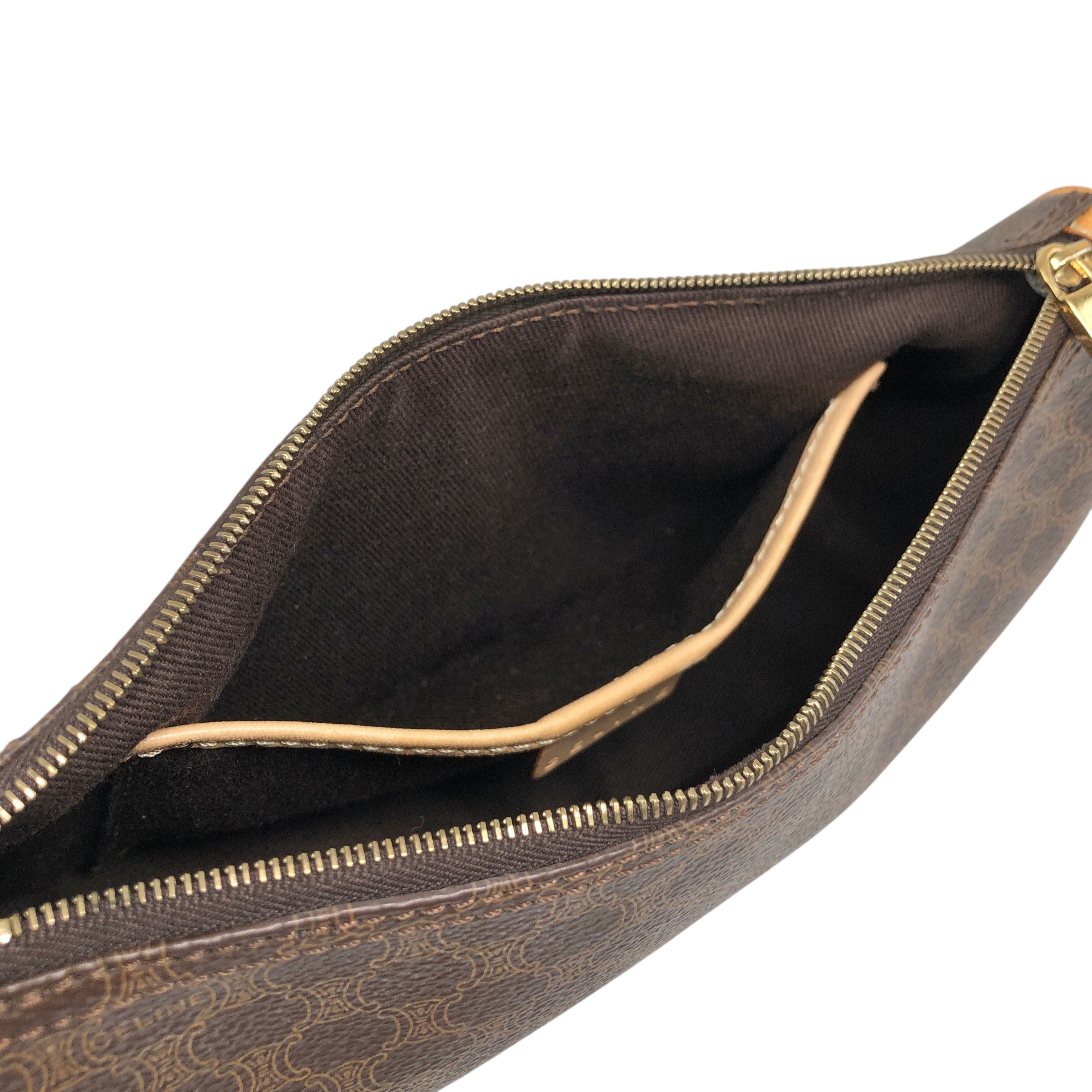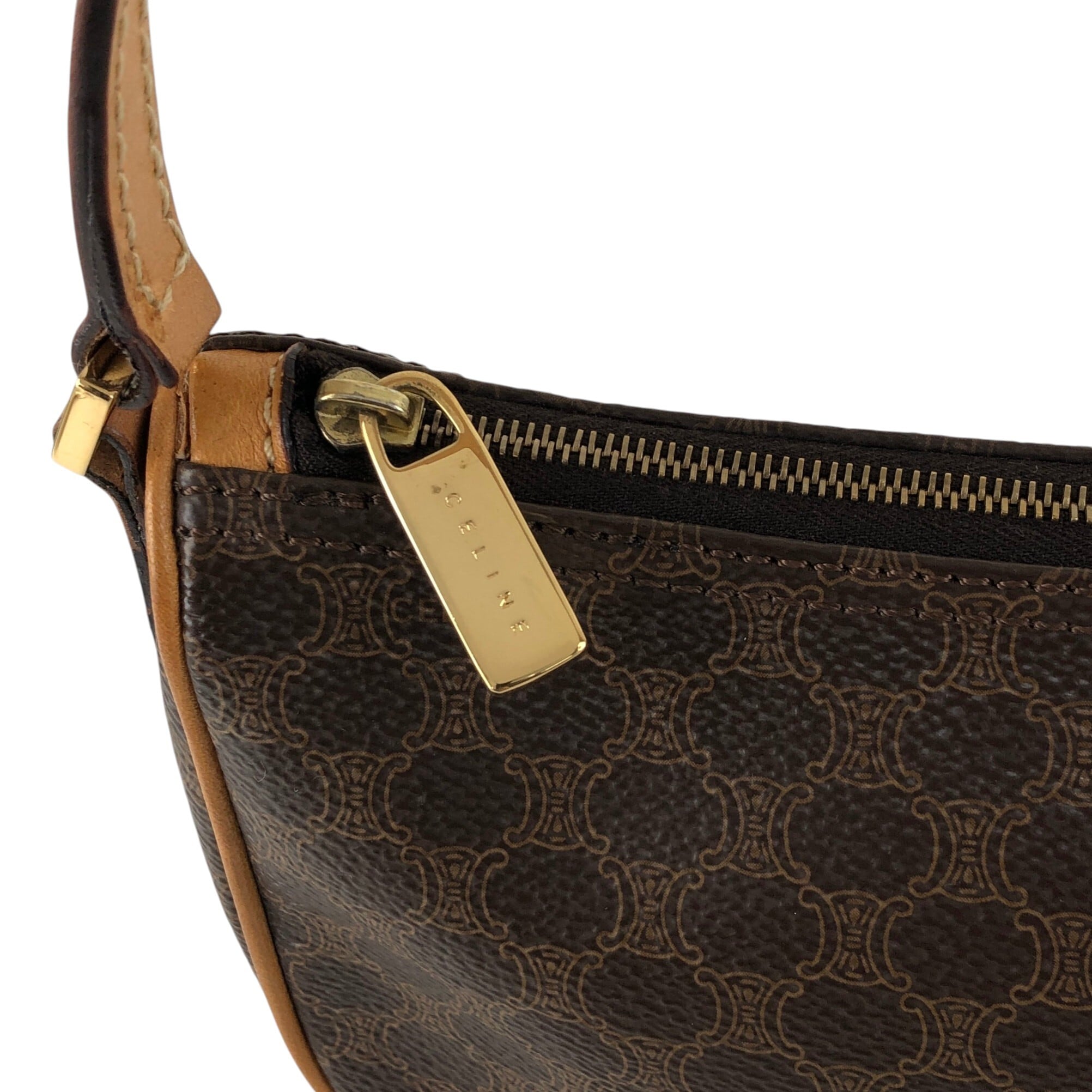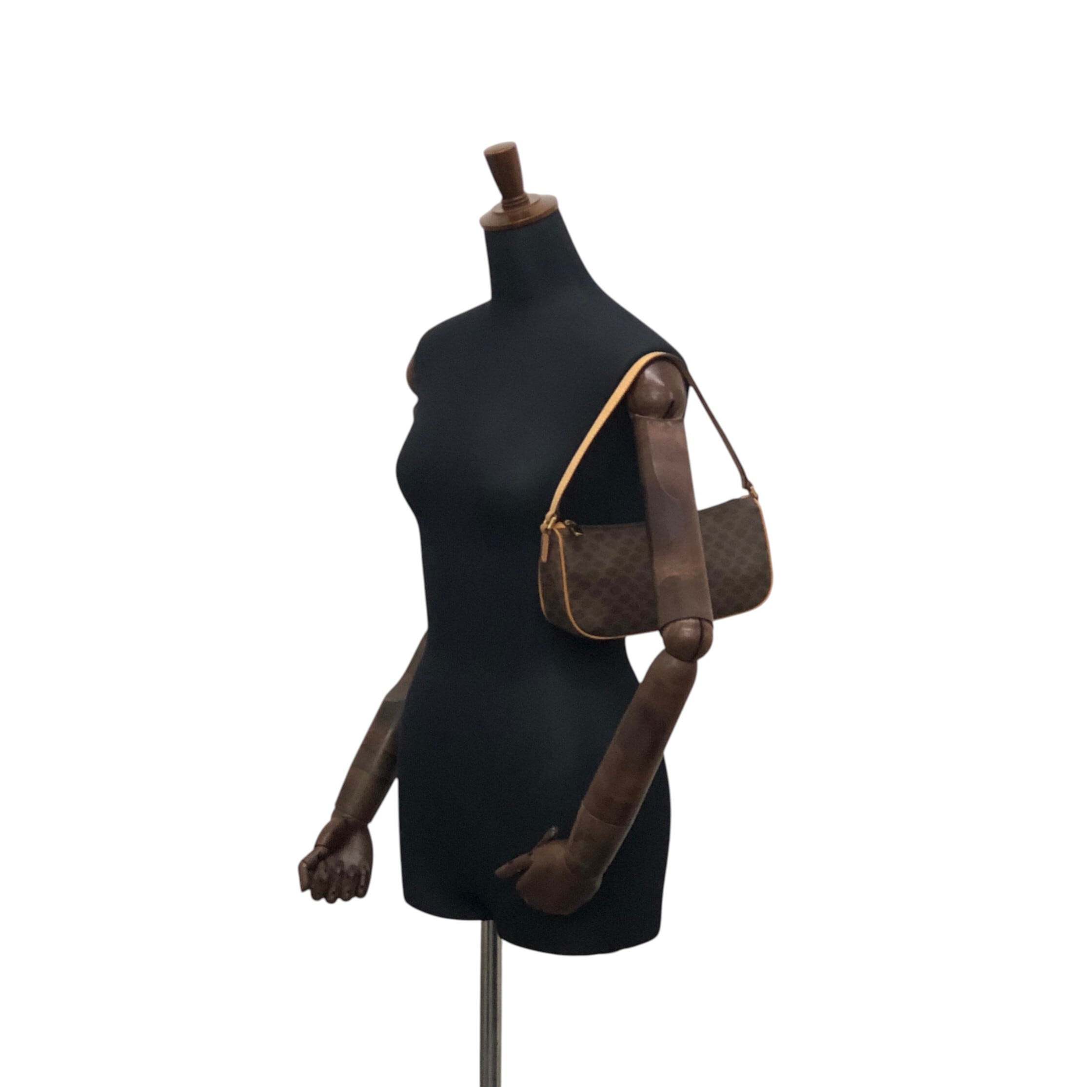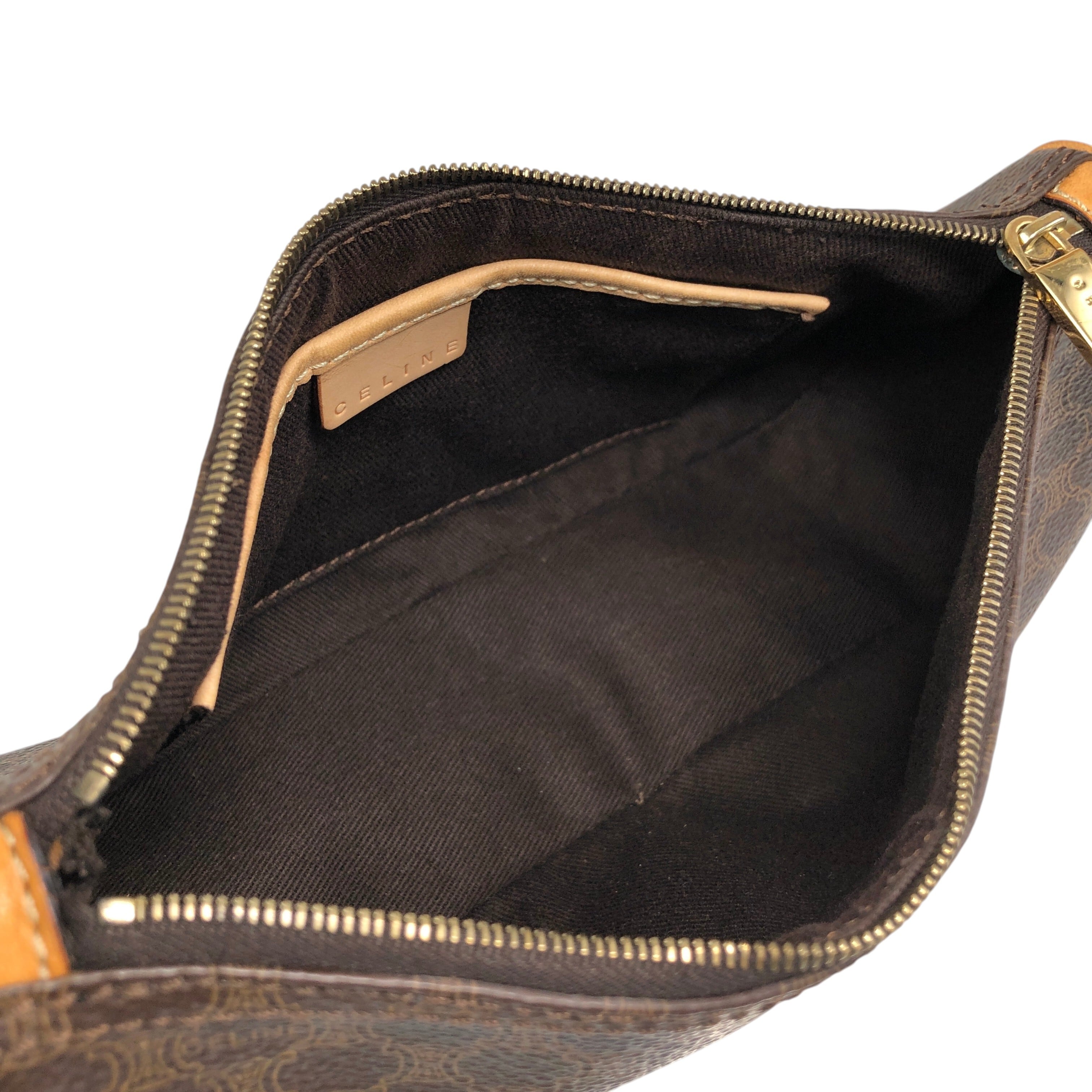 CELINE セリーヌ マカダム ショルダーバッグ ブラウン PVCレザー ミニバッグ vintage ヴィンテージ オールド 7jkz7v