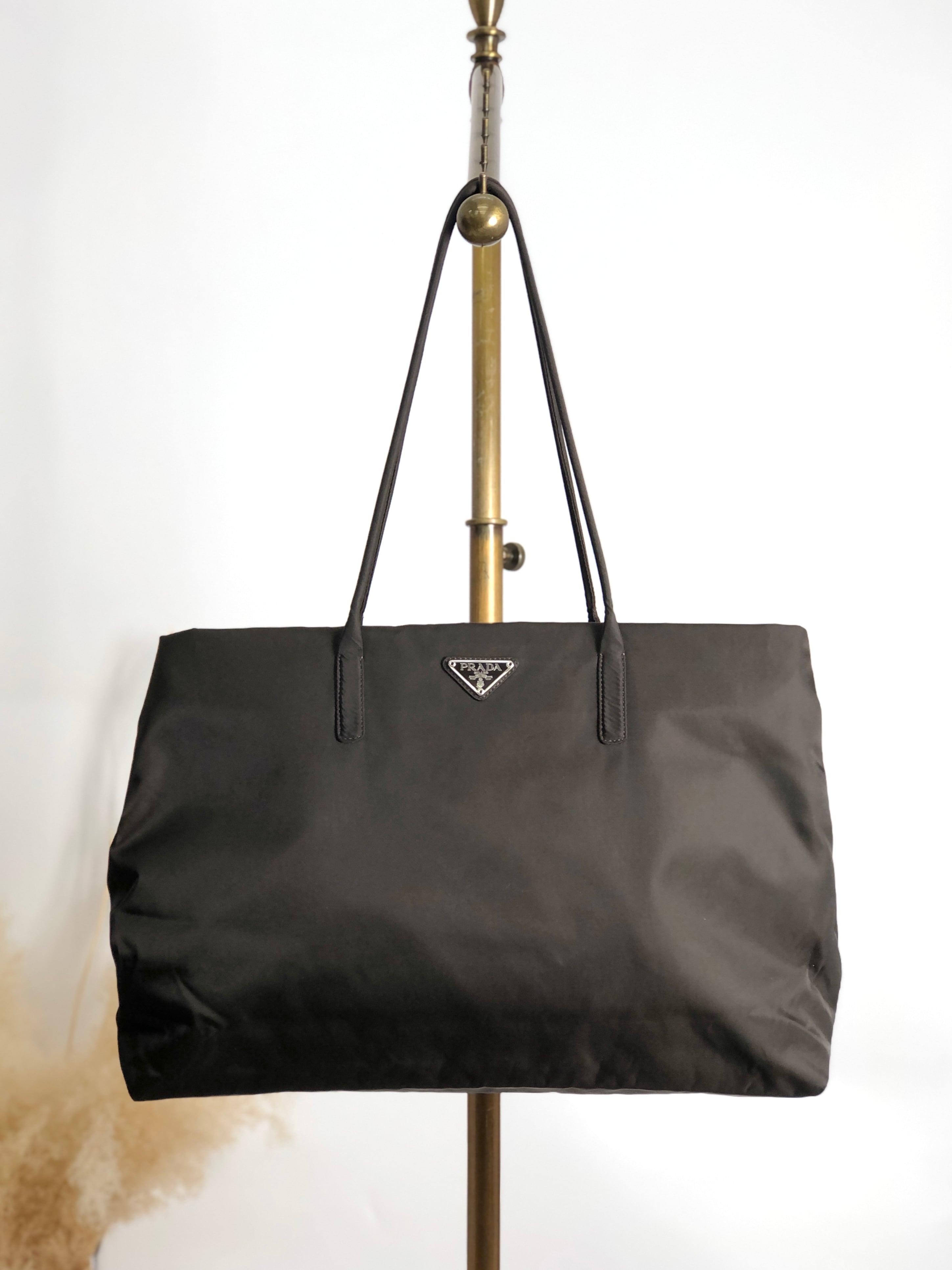 PRADA プラダ ハンドバッグ ブラウン トライアングルロゴ ナイロン トートバッグ vintage ヴィンテージ オールド 4bbxfs