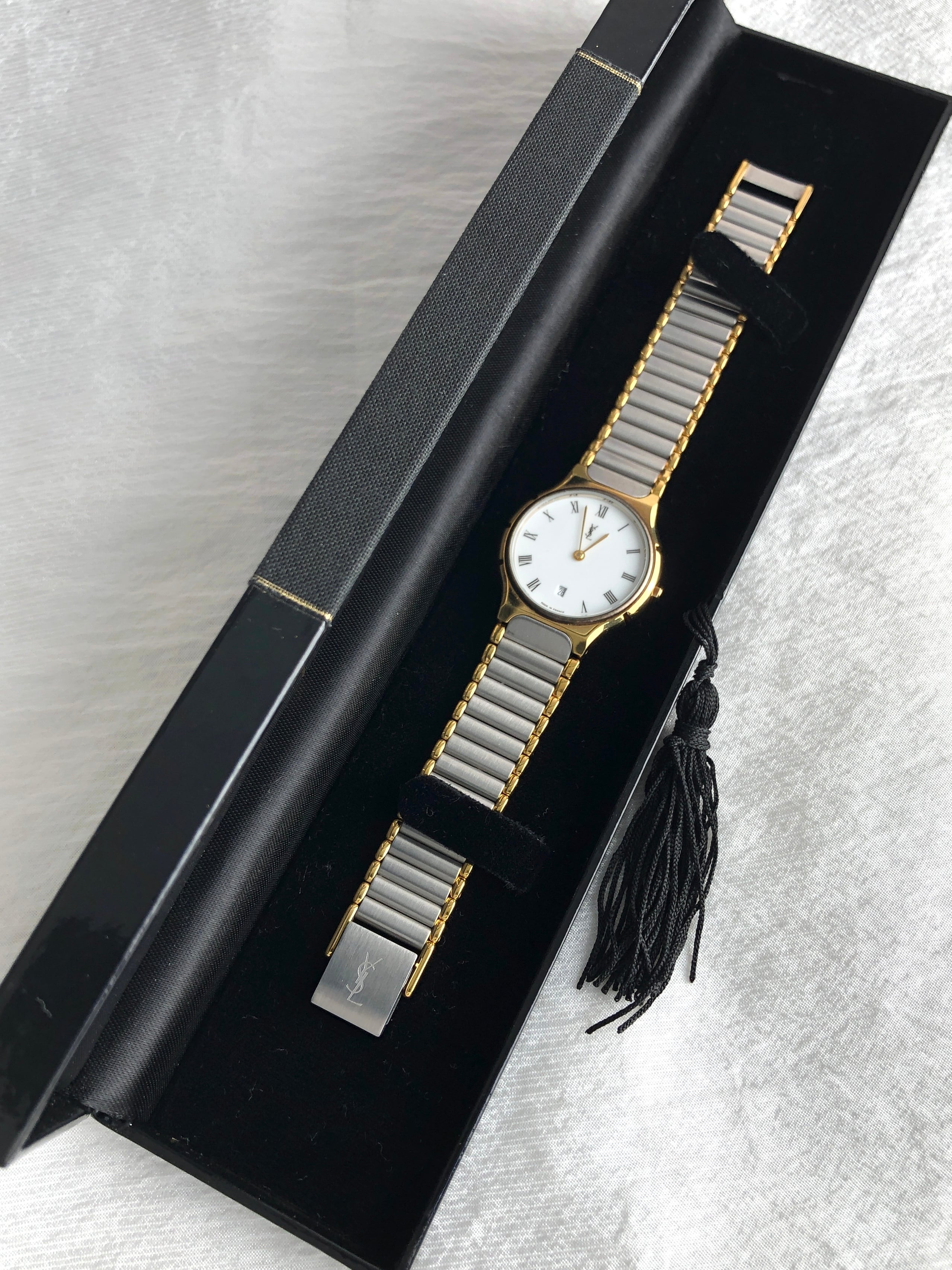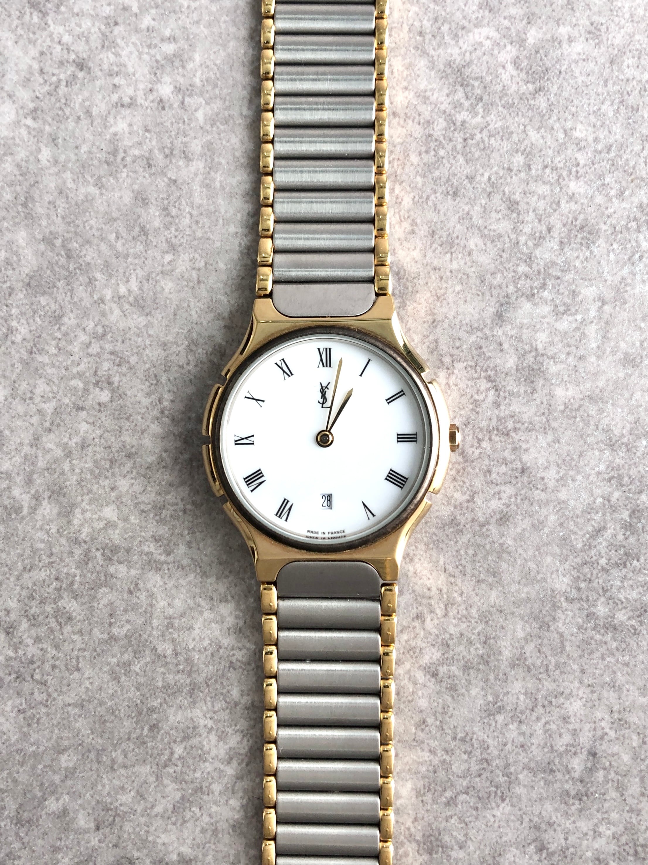 Yves Saint Laurent イヴ・サンローラン 腕時計 シルバー×ゴールド YSL ローマ文字 ステンレススチール 334445 vintage ヴィンテージ オールド vhabhy