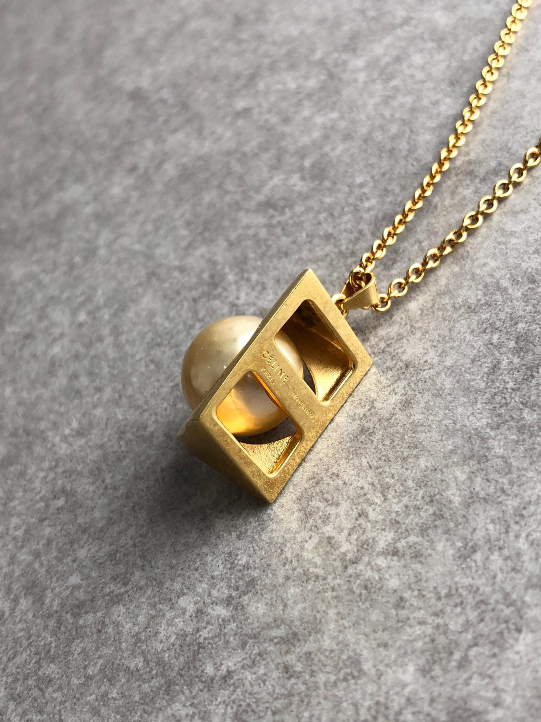 CELINE セリーヌ ネックレス ゴールド トライアングル パール vintage ヴィンテージ オールド wvwthd