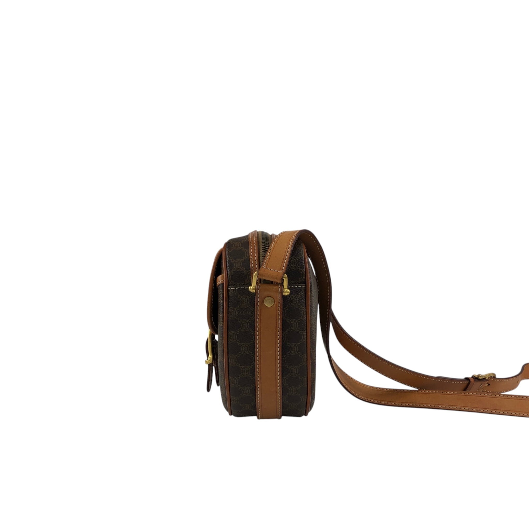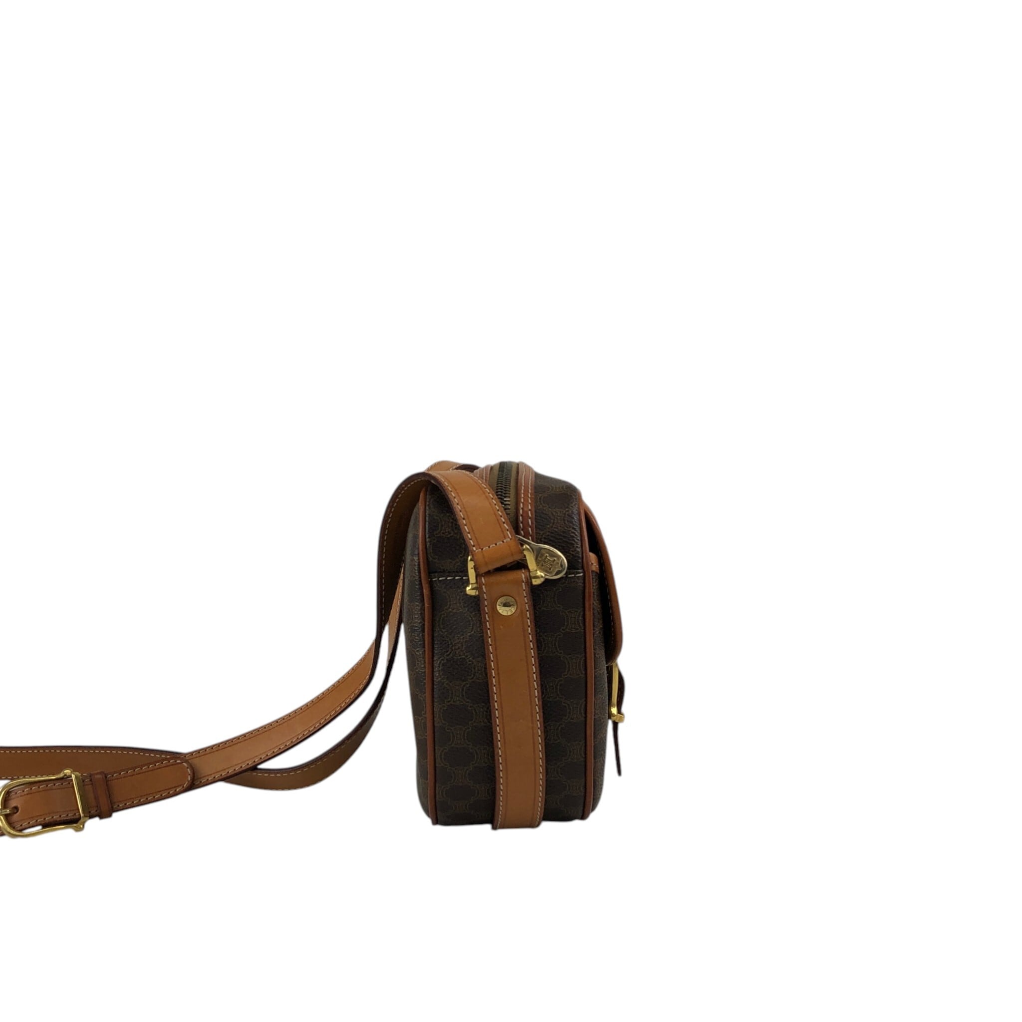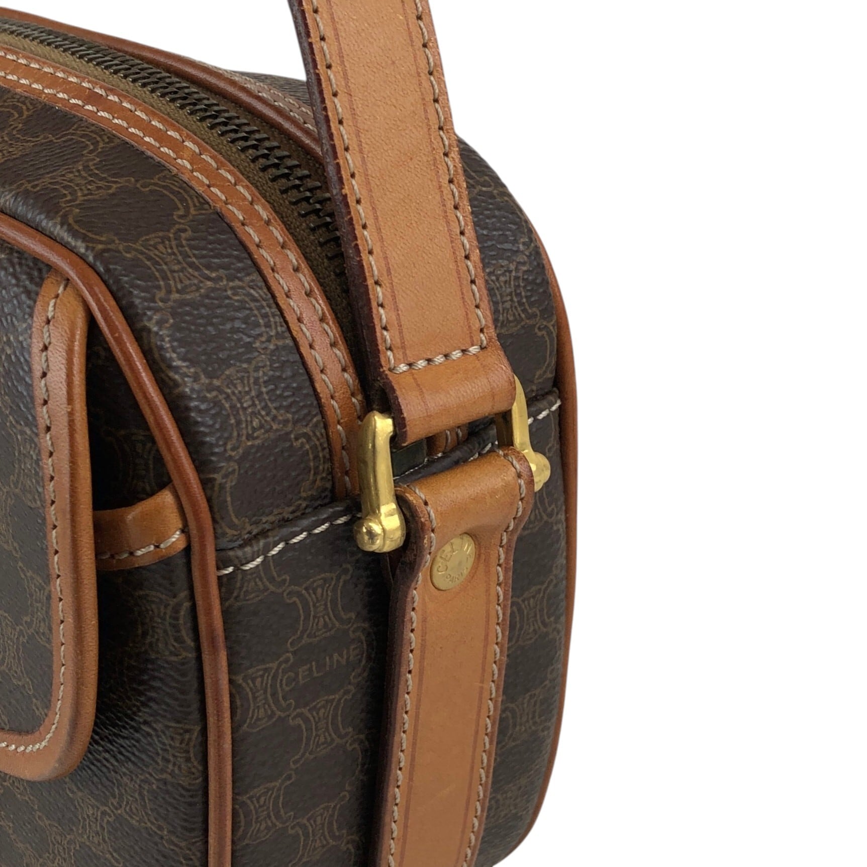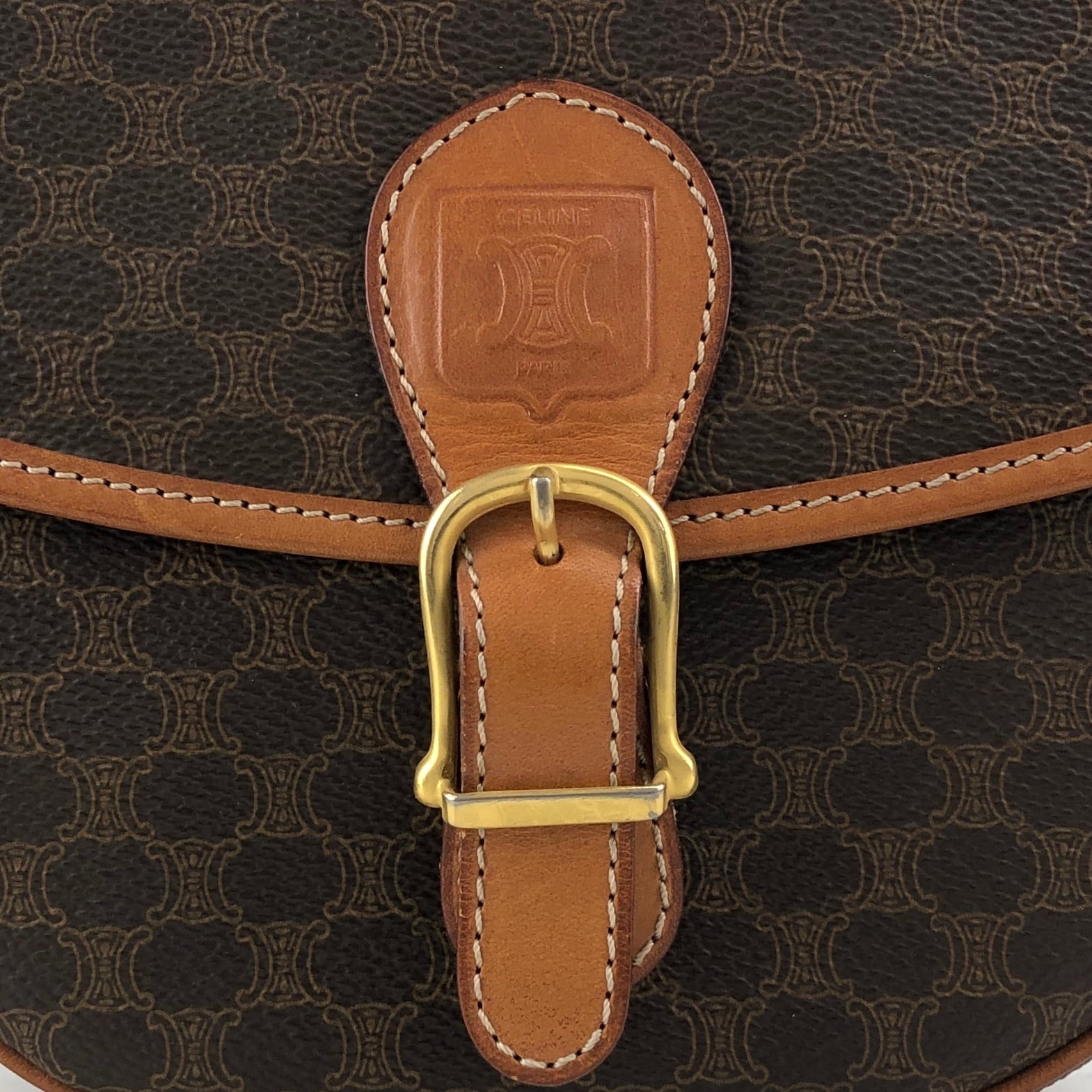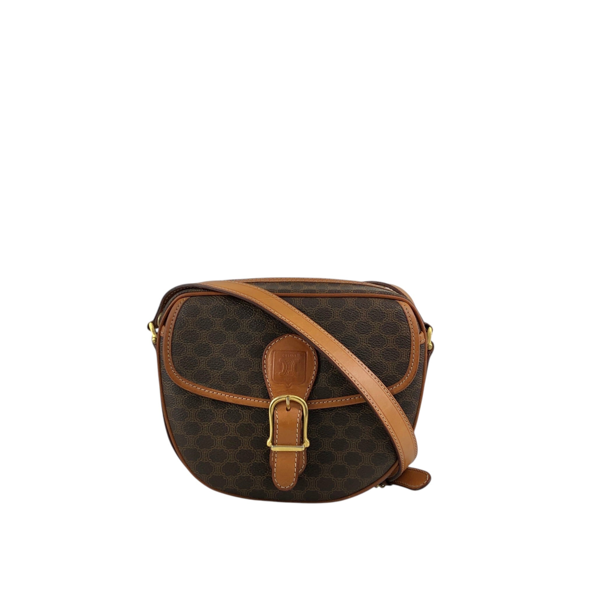 CELINE セリーヌ ショルダーバッグ ブラウン ブラゾン型押し PVCレザー フロントバックル vintage ヴィンテージ オールド 5gbbcv