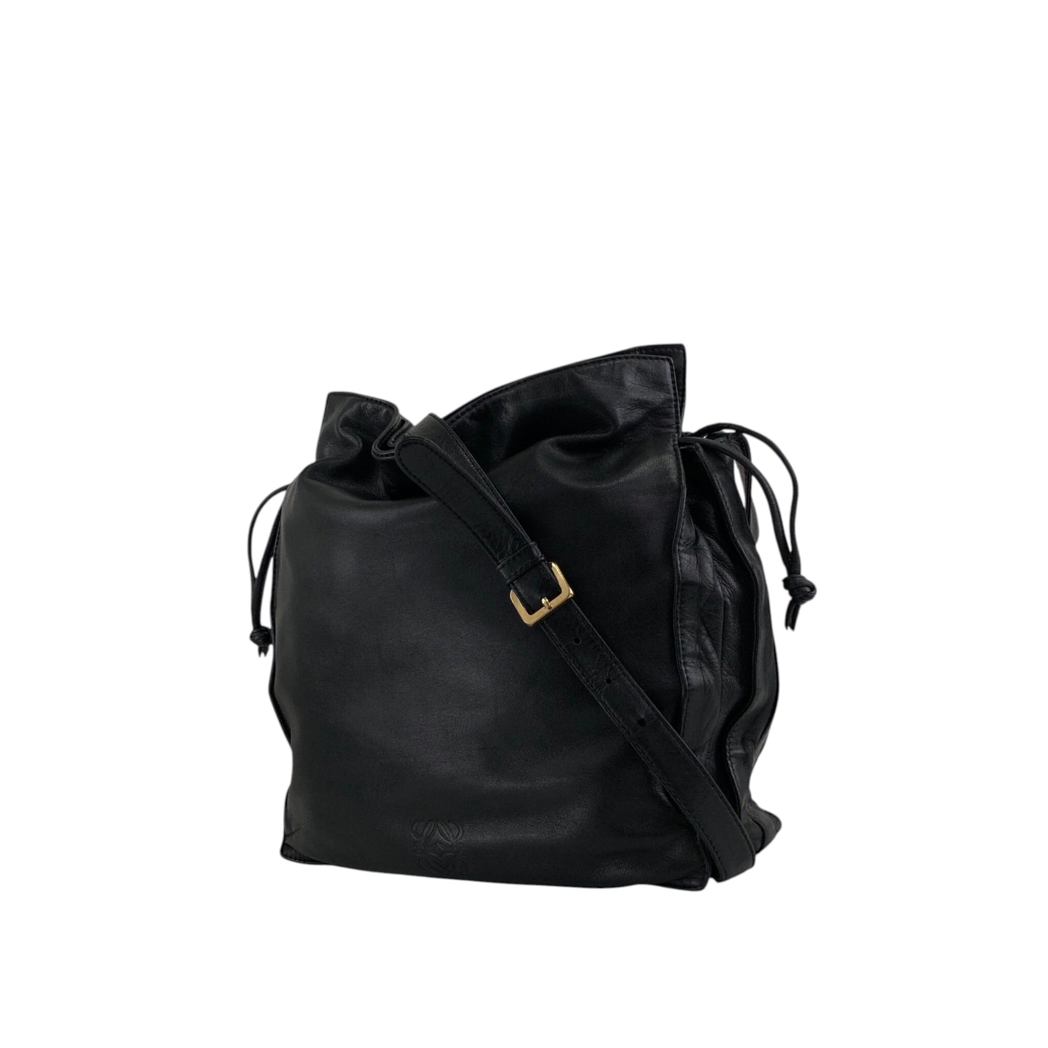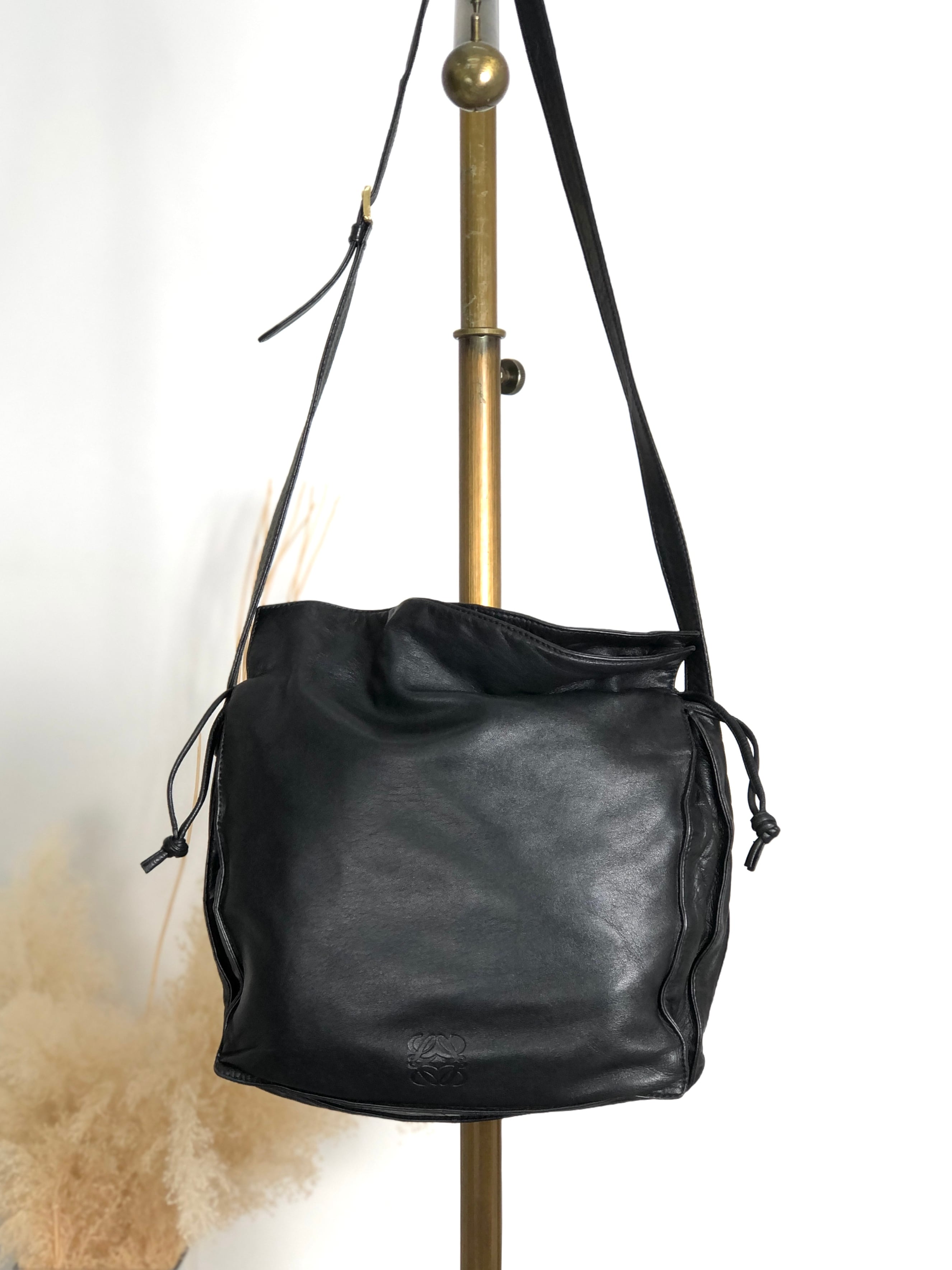 LOEWE ロエベ フラメンコ ショルダーバッグ ブラック アナグラム ナッパレザー 巾着 vintage ヴィンテージ オールド ak5uss