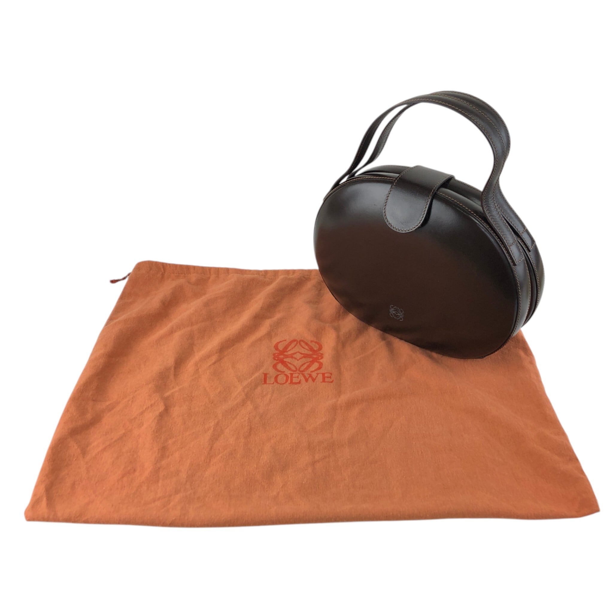 LOEWE ロエベ ハンドバッグ ブラウン アナグラム レザー ラウンド vintage ヴィンテージ オールド fxynr8