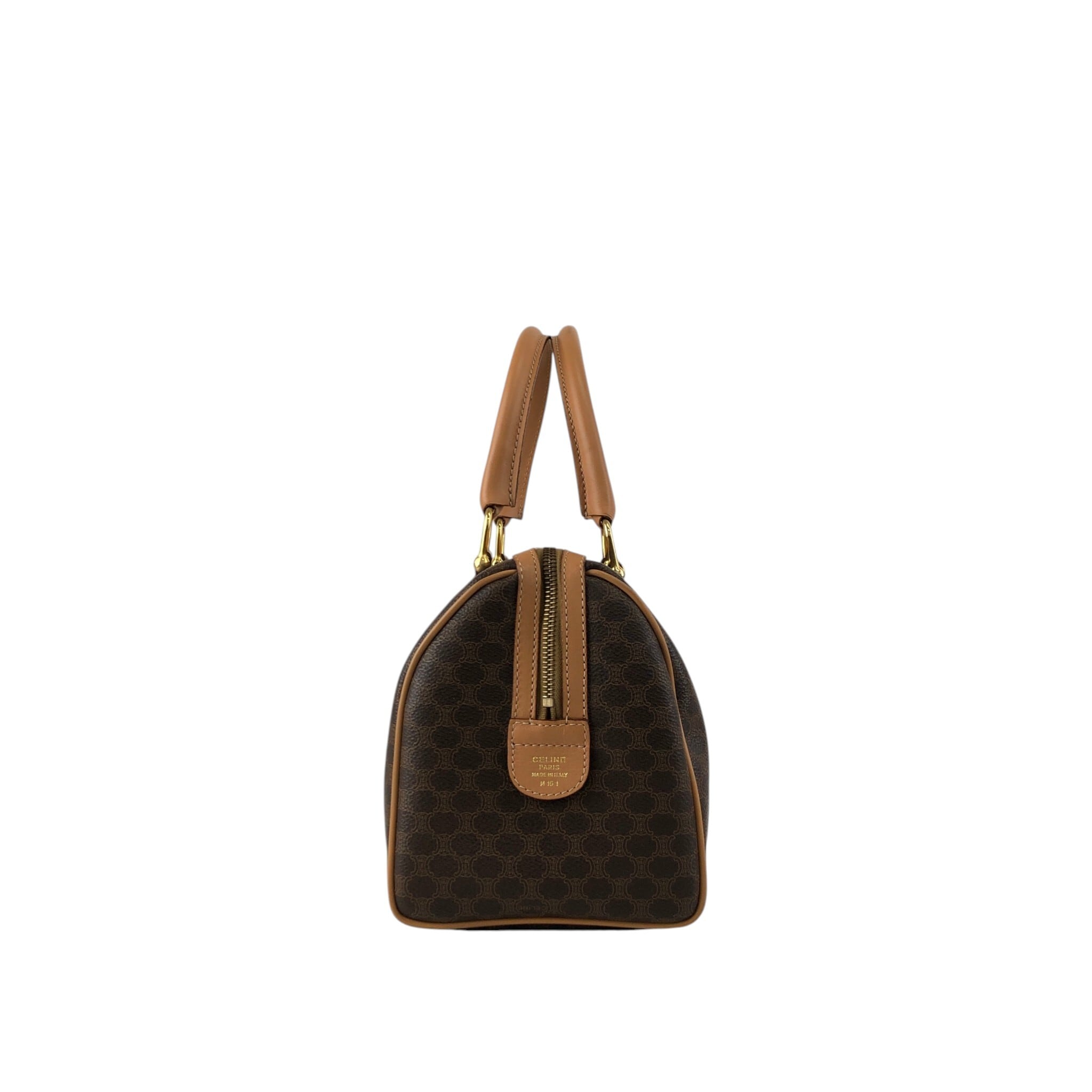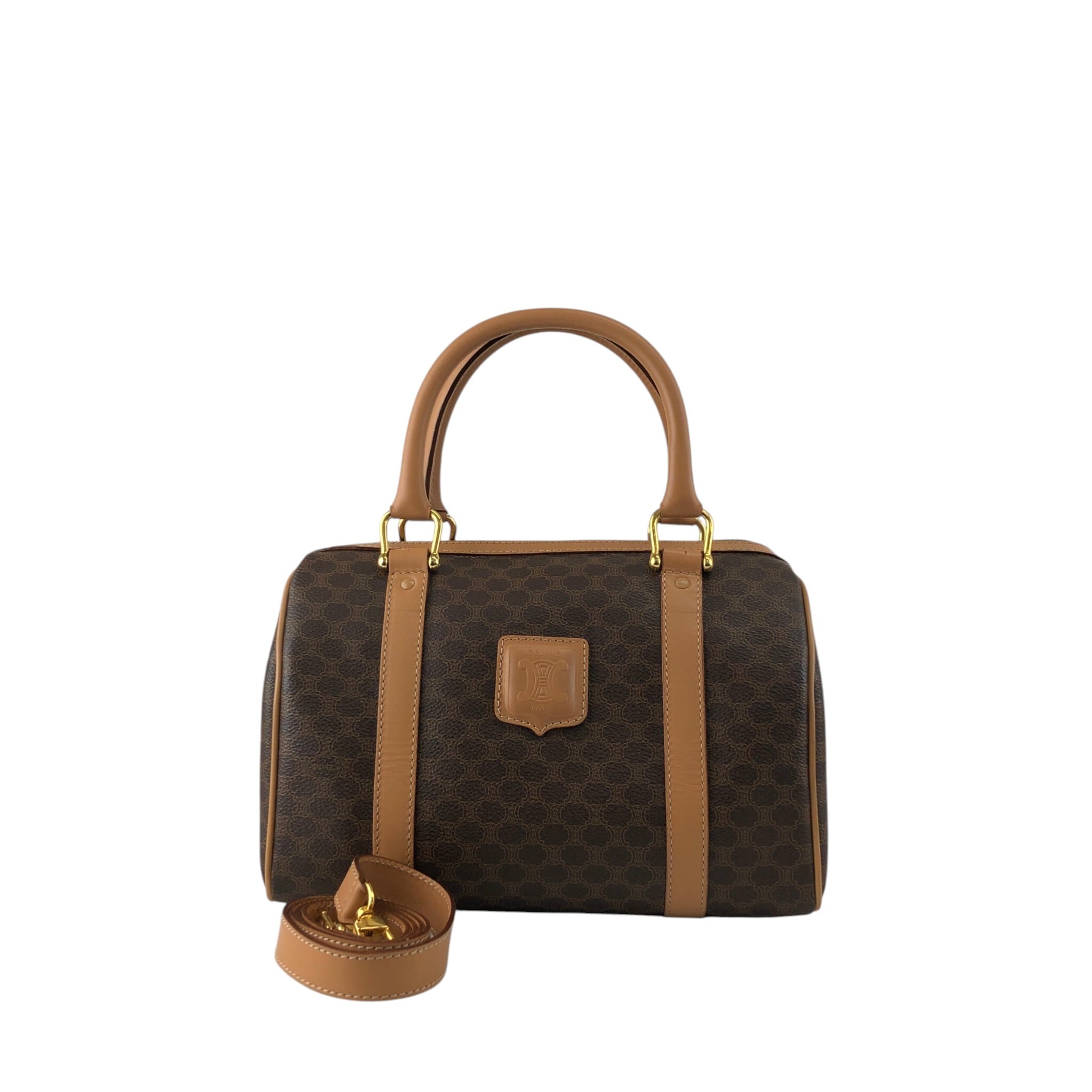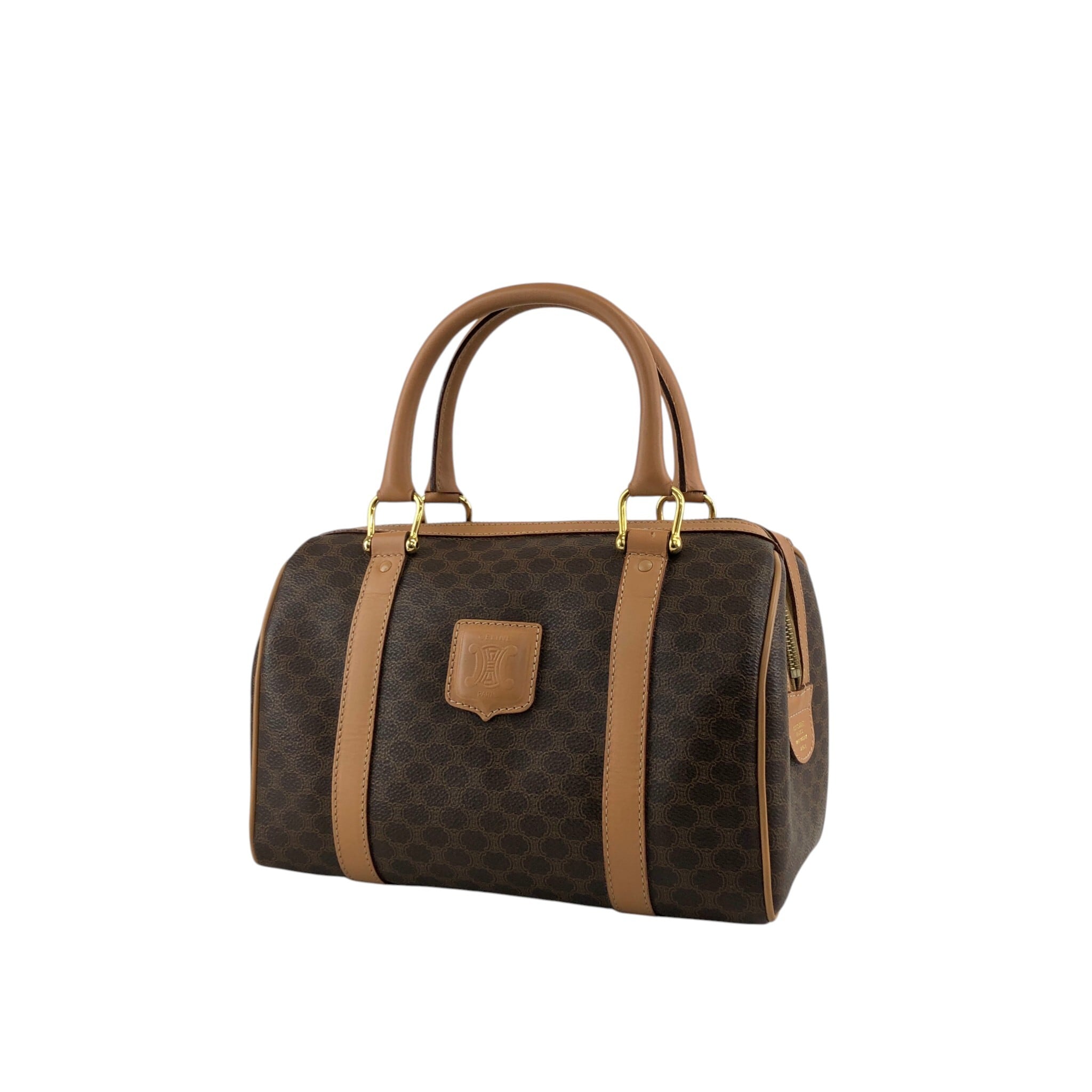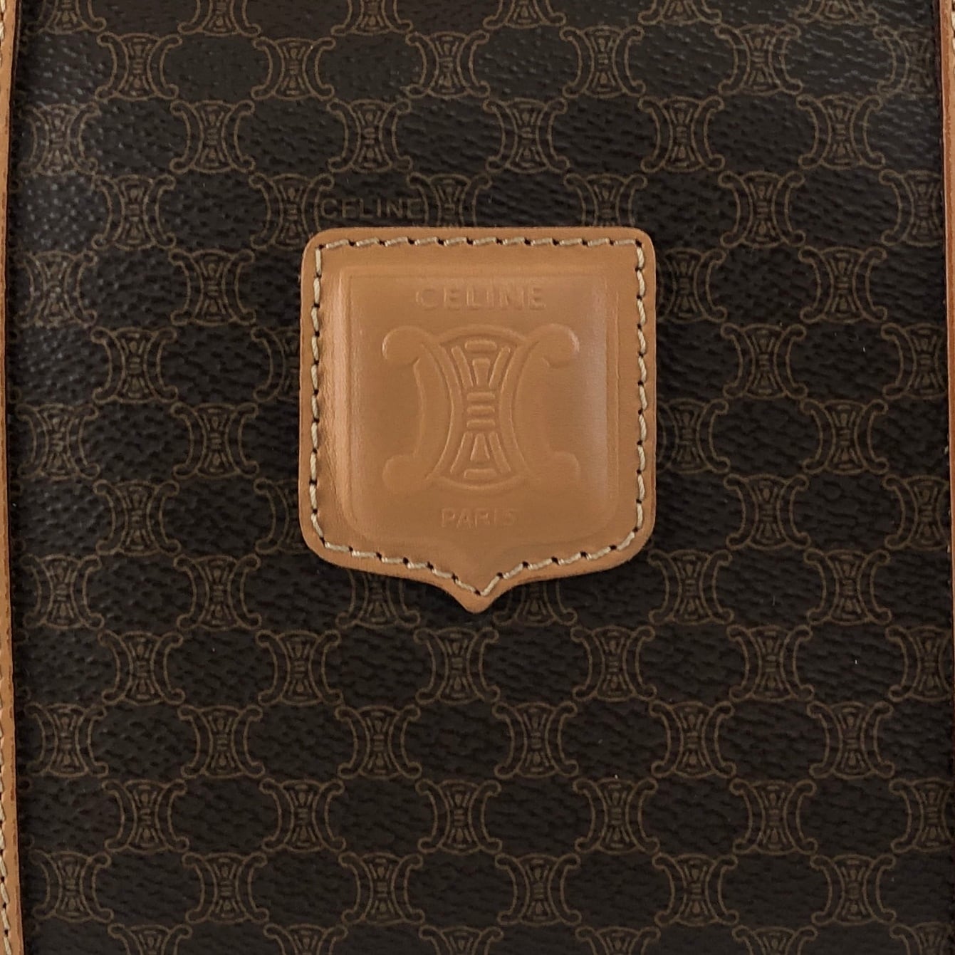 CELINE セリーヌ マカダム ショルダーバッグ ブラウン ブラゾン型押し PVC ミニボストン 2WAY vintage ヴィンテージ オールド yx8uet