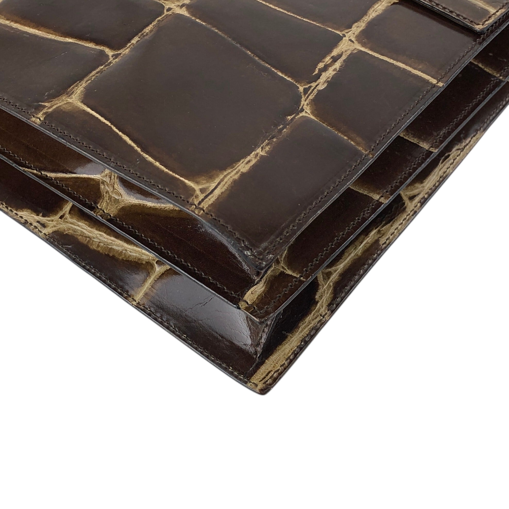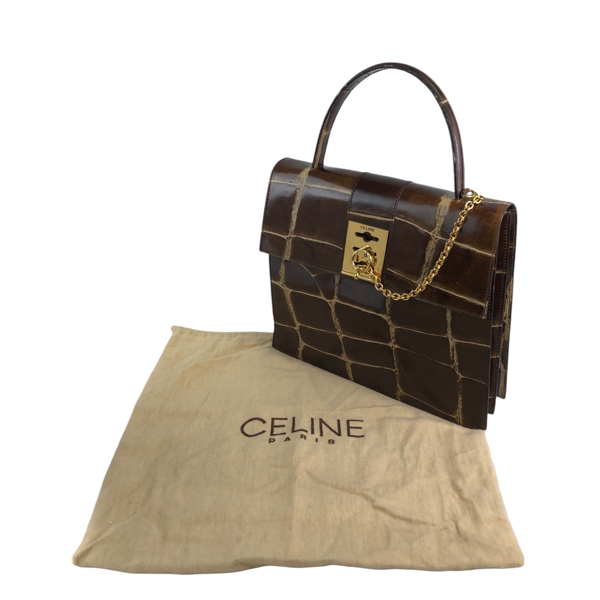 CELINE セリーヌ ハンドバッグ ブラウン ガンチーニ レザー クロコ型押し vintage ヴィンテージ オールド bcfhg8