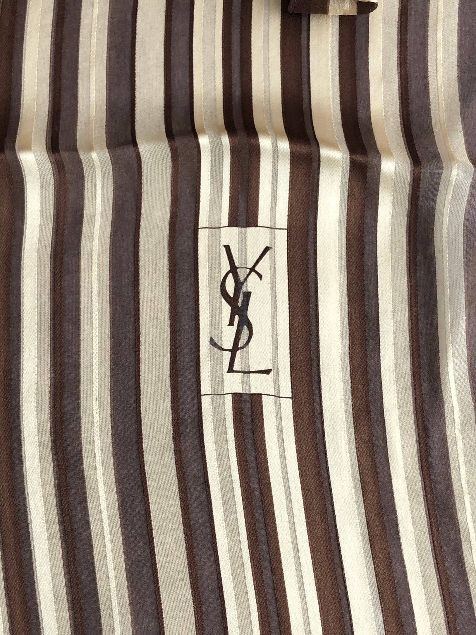 Yves Saint Laurent イヴ・サンローラン ストライプ スカーフ ブラウン YSL シルク vintage ヴィンテージ オールド m6dnrp