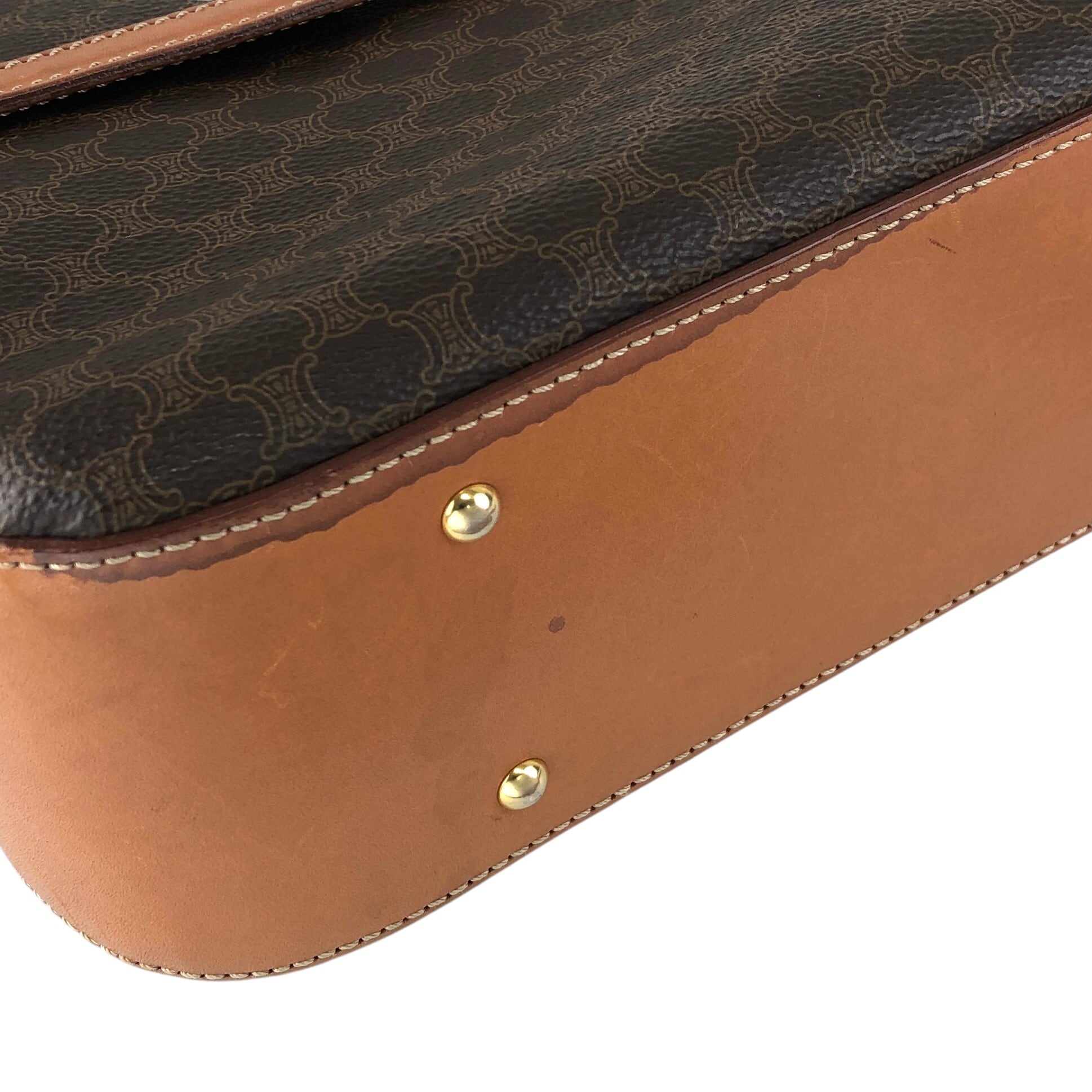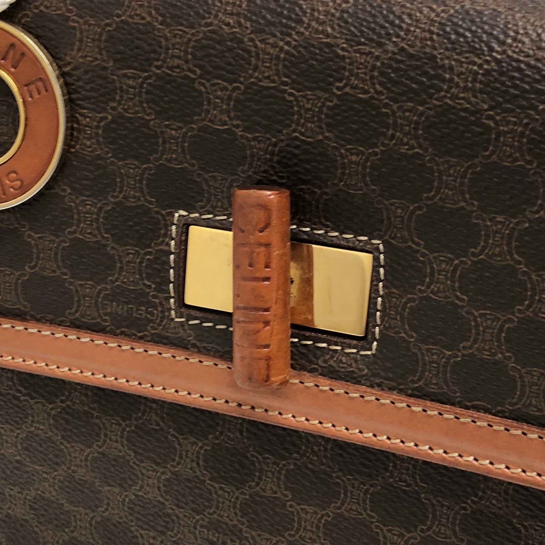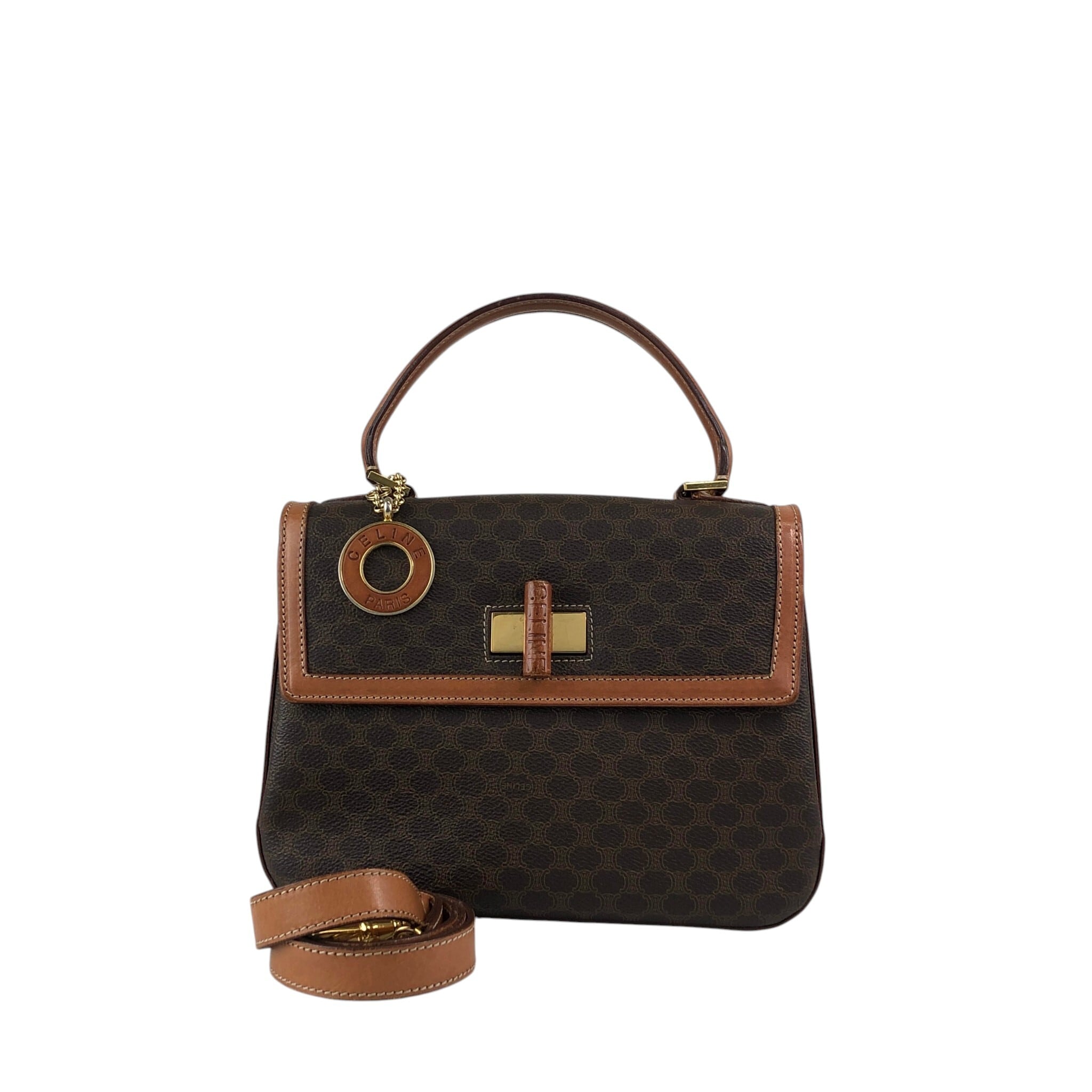 CELINE セリーヌ マカダム ショルダーバッグ ブラウン ロゴ ターンロック PVCレザー 2WAY vintage ヴィンテージ オールド tw3c3x