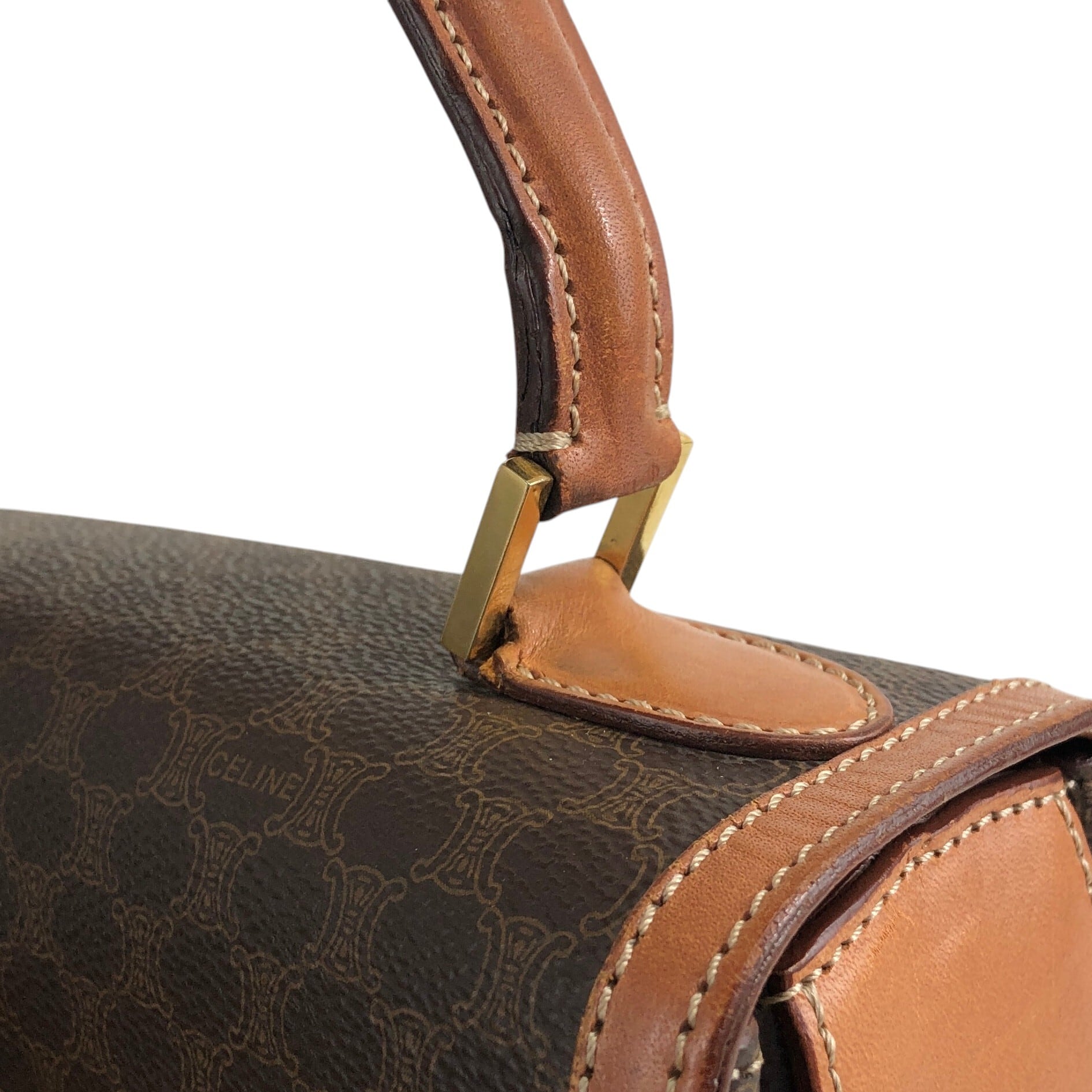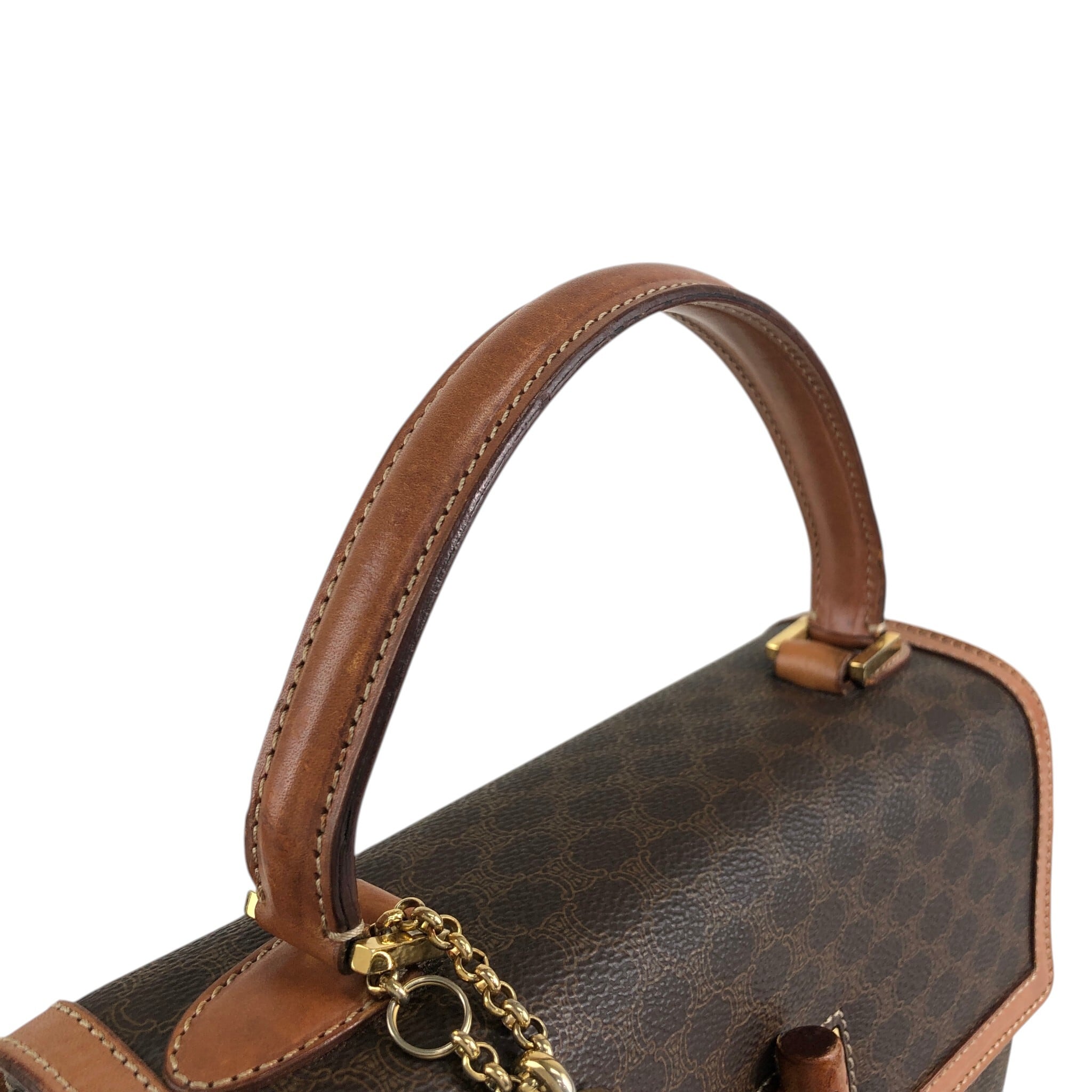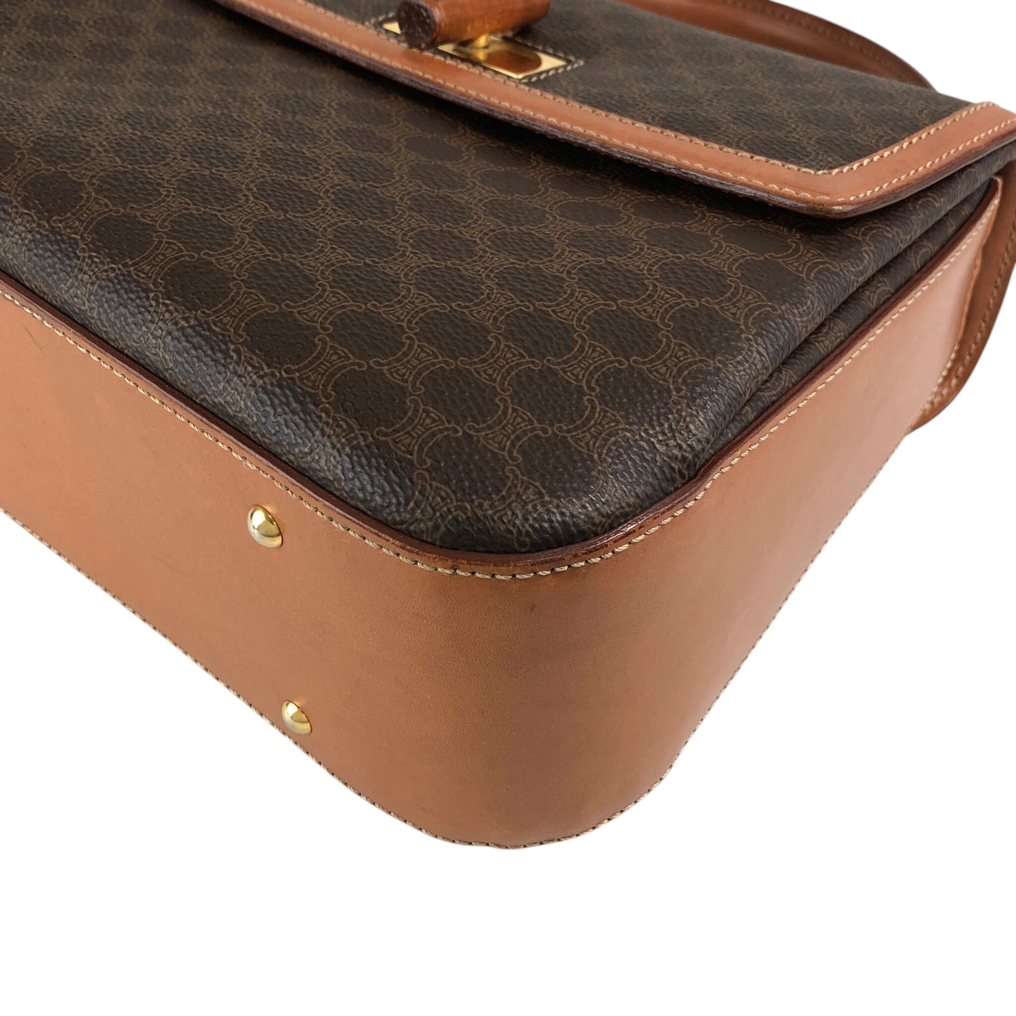 CELINE セリーヌ マカダム ショルダーバッグ ブラウン ロゴ ターンロック PVCレザー 2WAY vintage ヴィンテージ オールド tw3c3x