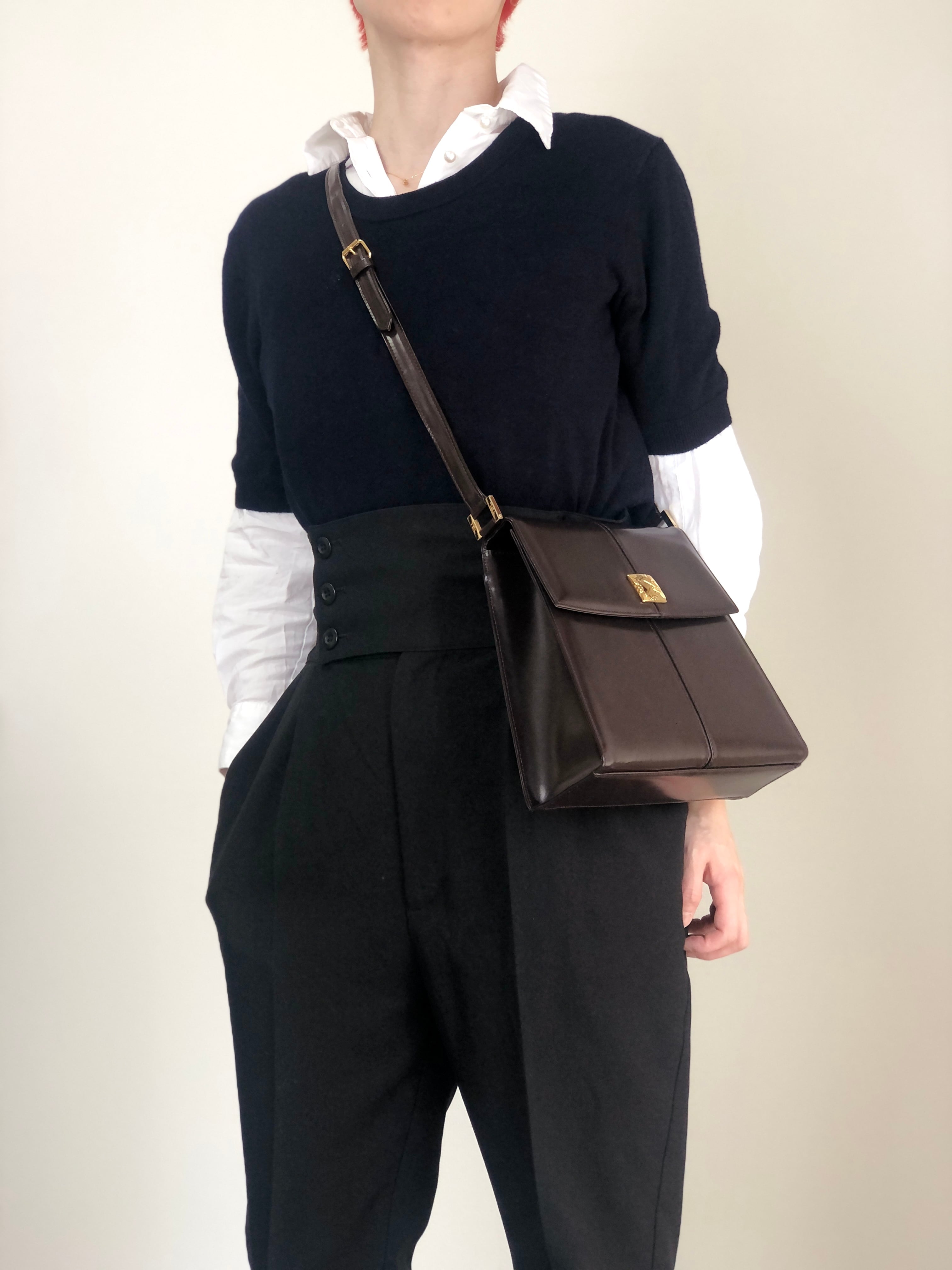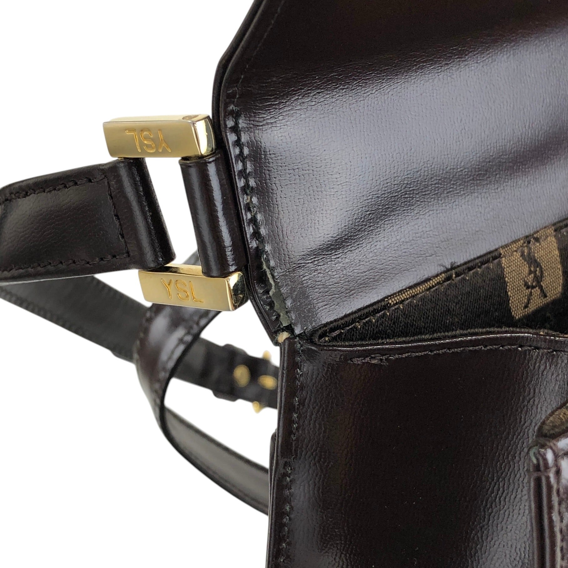 Yves Saint Laurent イヴ・サンローラン ショルダーバッグ ブラウン YSL レザー vintage ヴィンテージ オールド yeh3vd