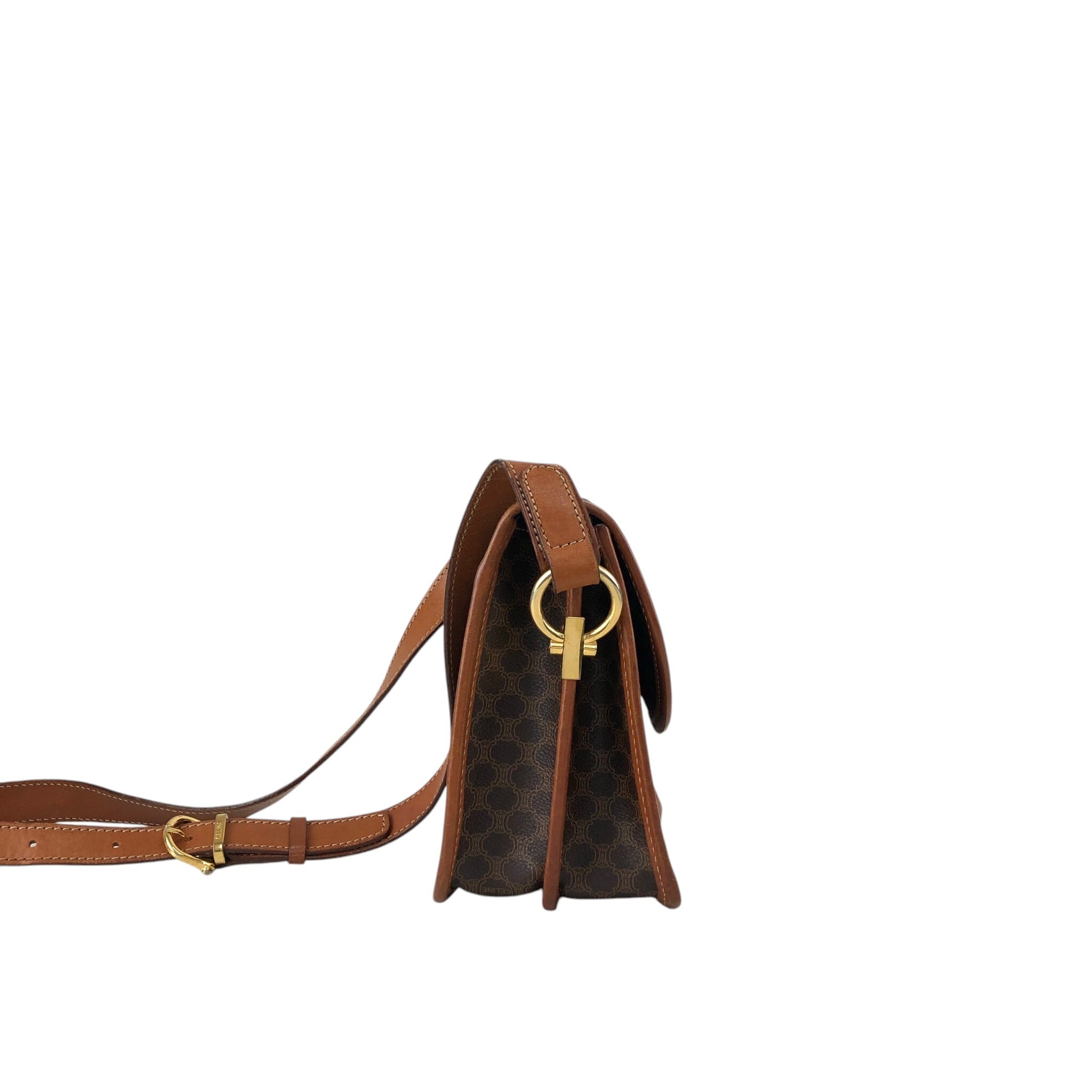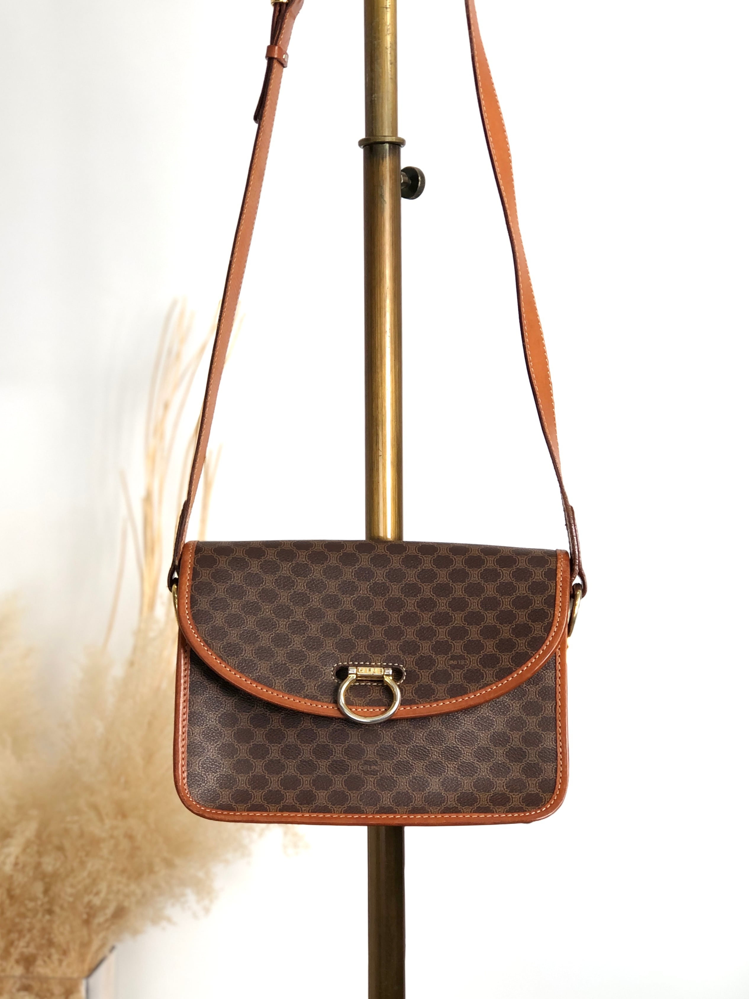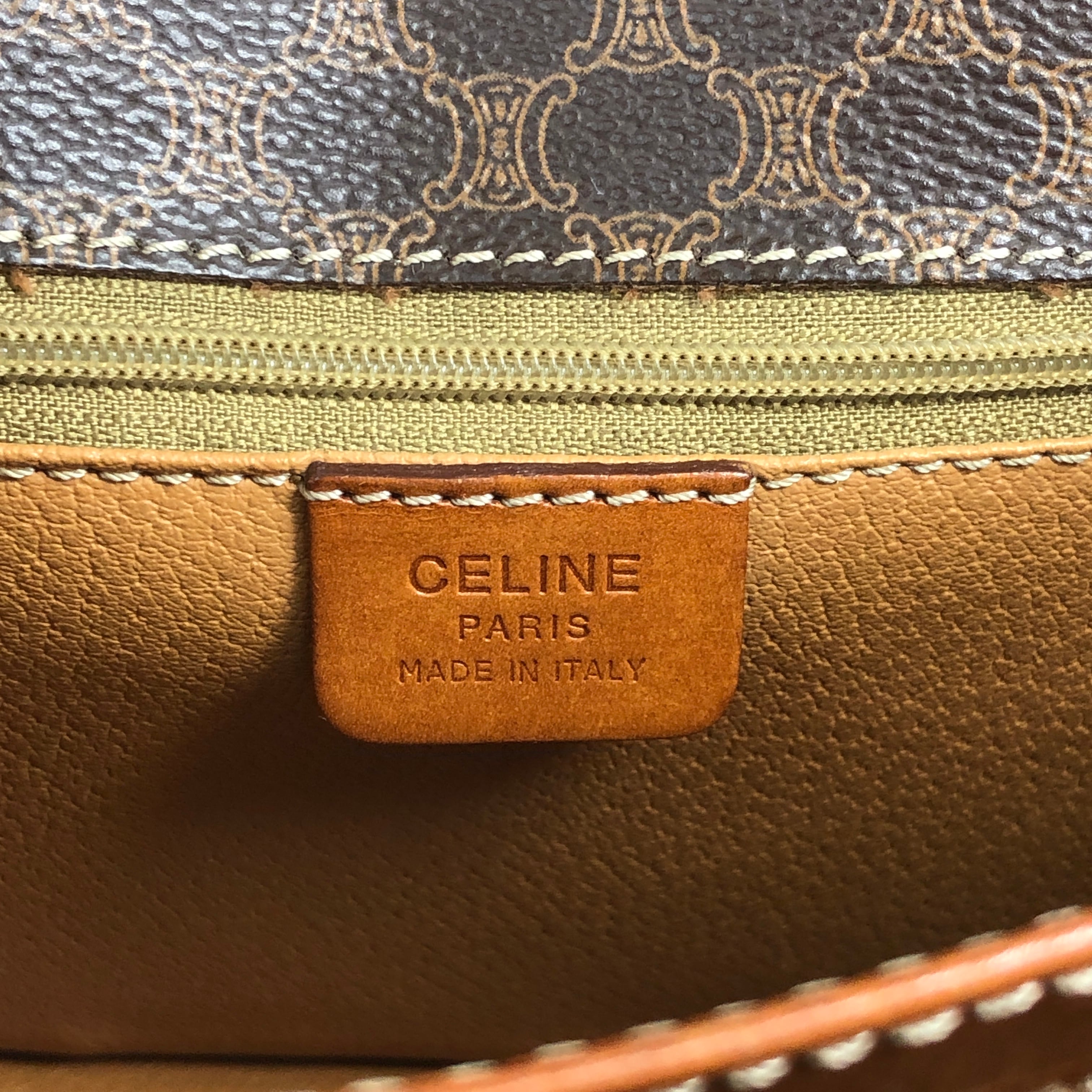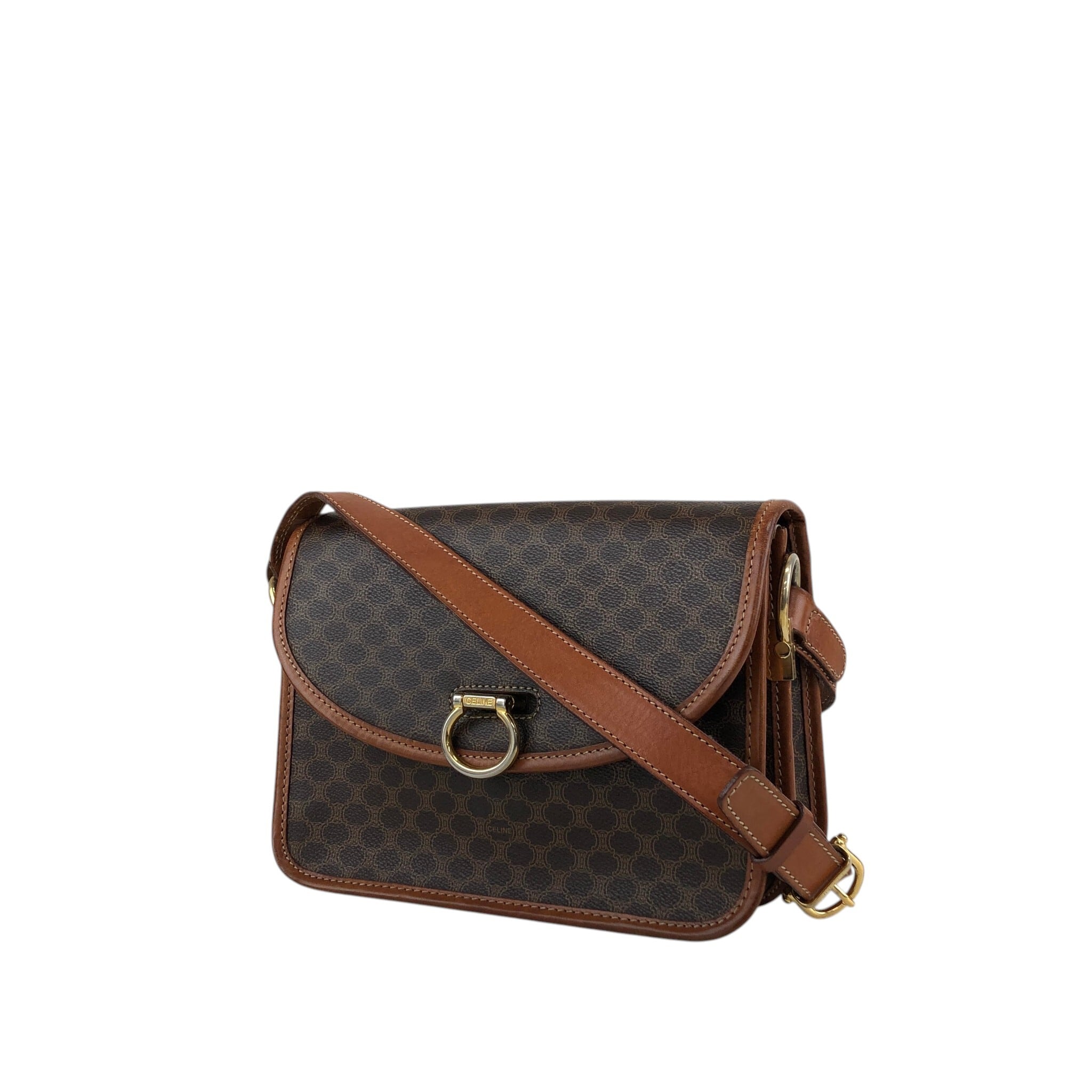 CELINE セリーヌ マカダム ショルダーバッグ ブラウン ガンチーニ PVCレザー vintage ヴィンテージ オールド dtdg28