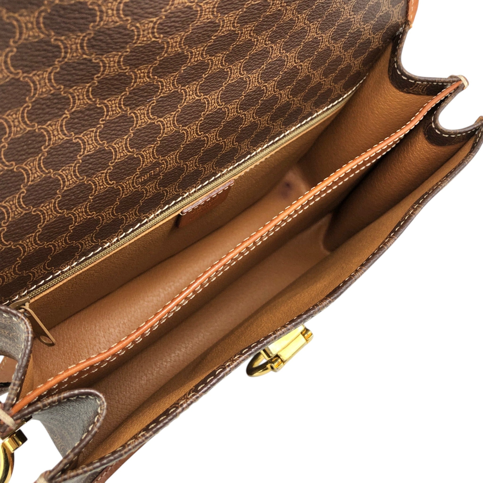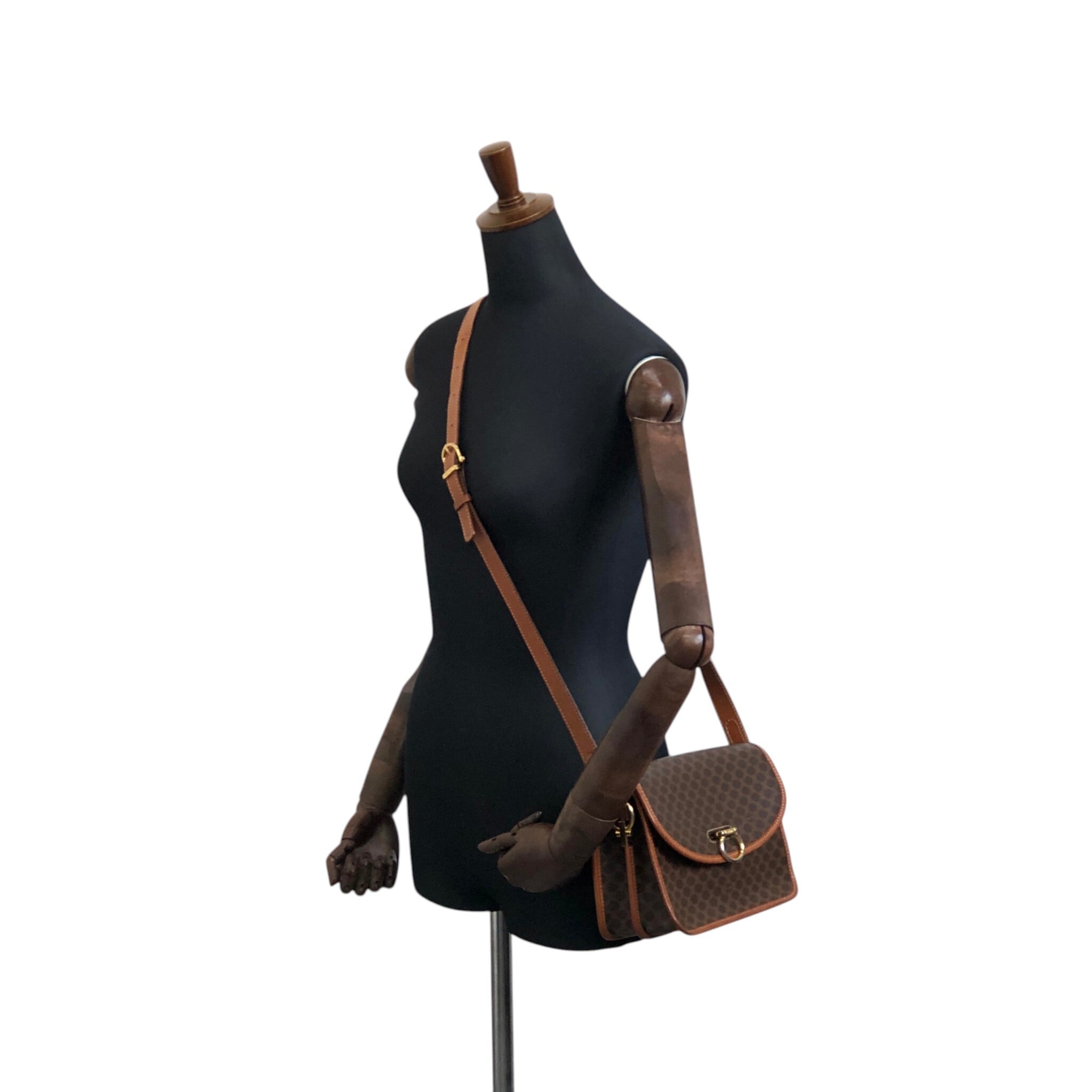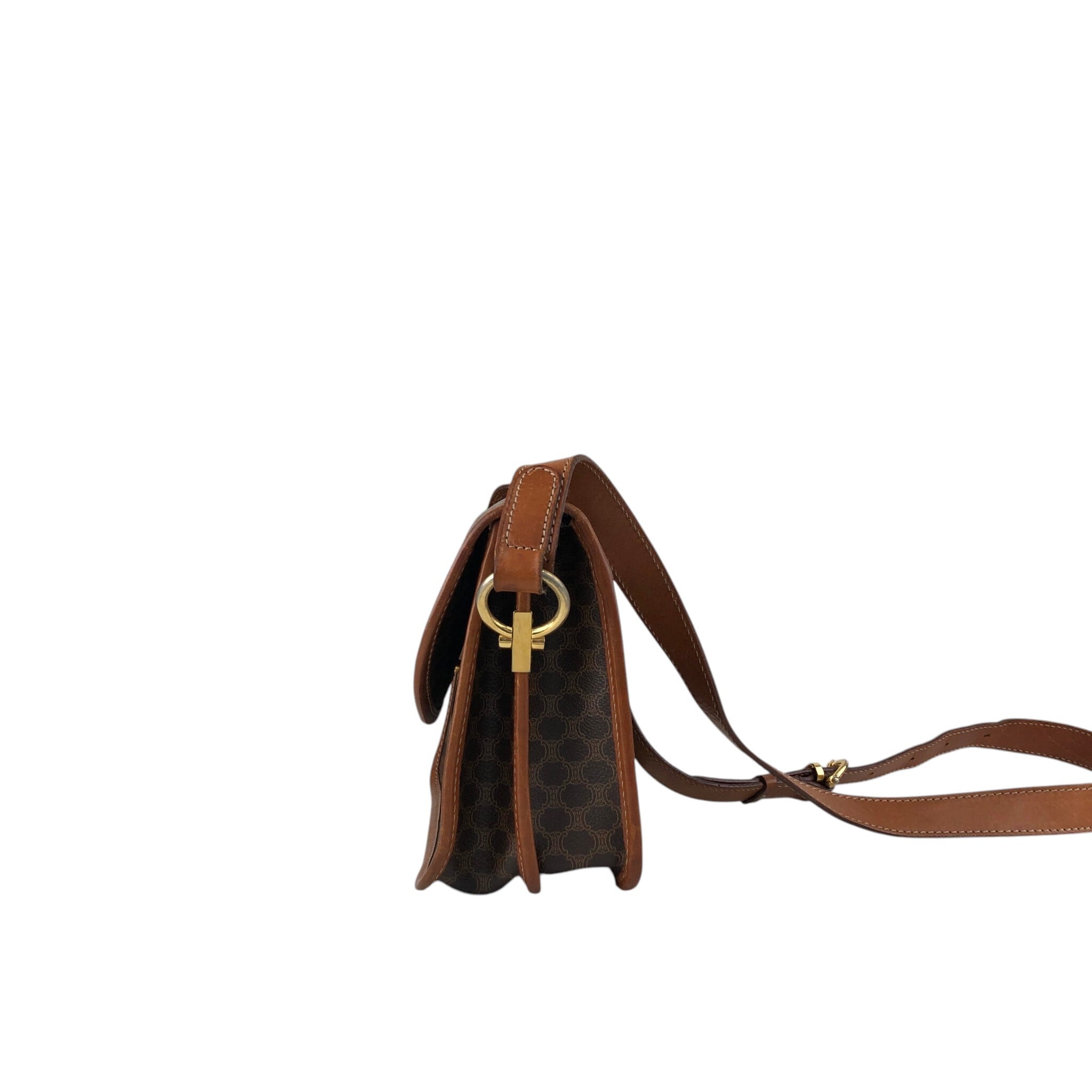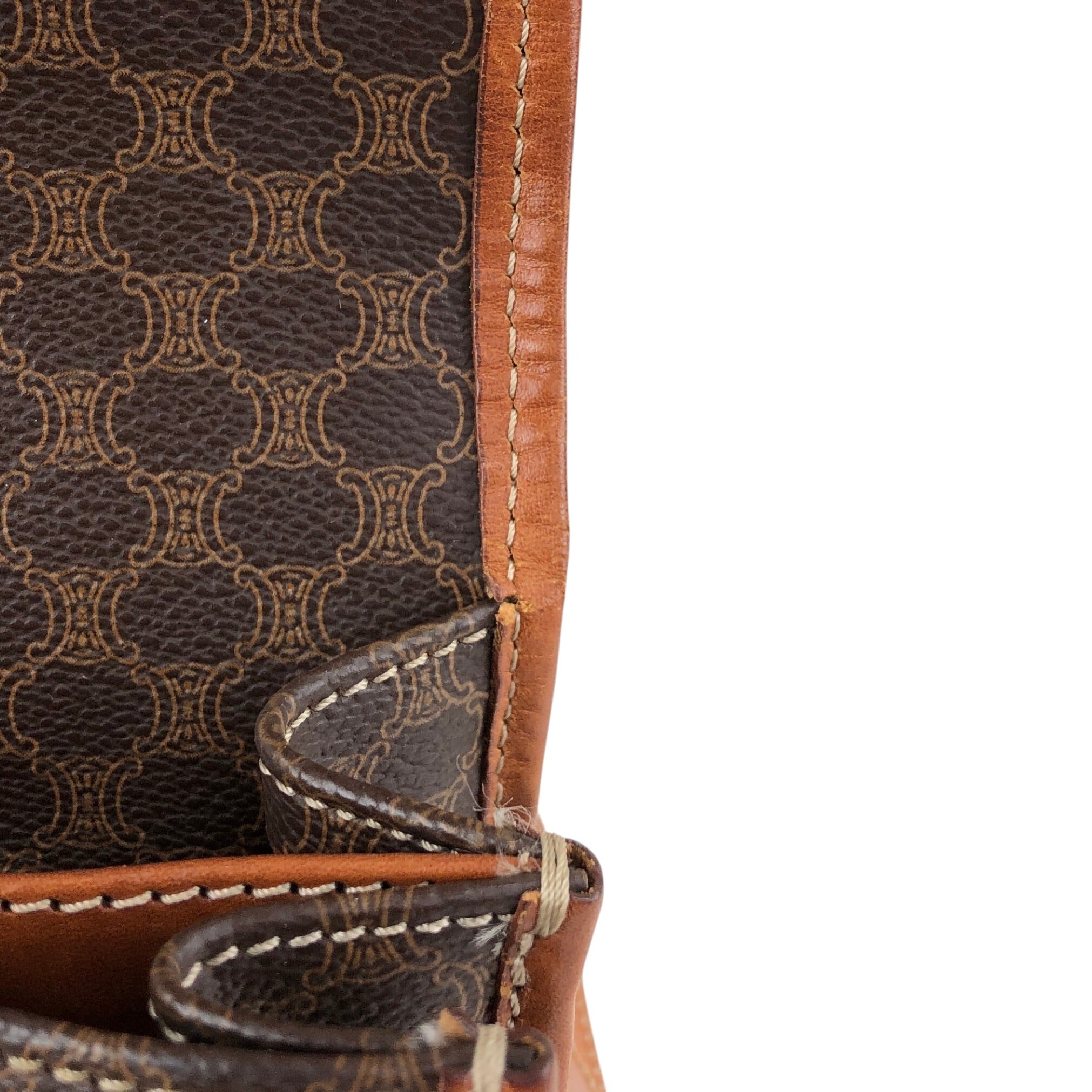 CELINE セリーヌ マカダム ショルダーバッグ ブラウン ガンチーニ PVCレザー vintage ヴィンテージ オールド dtdg28