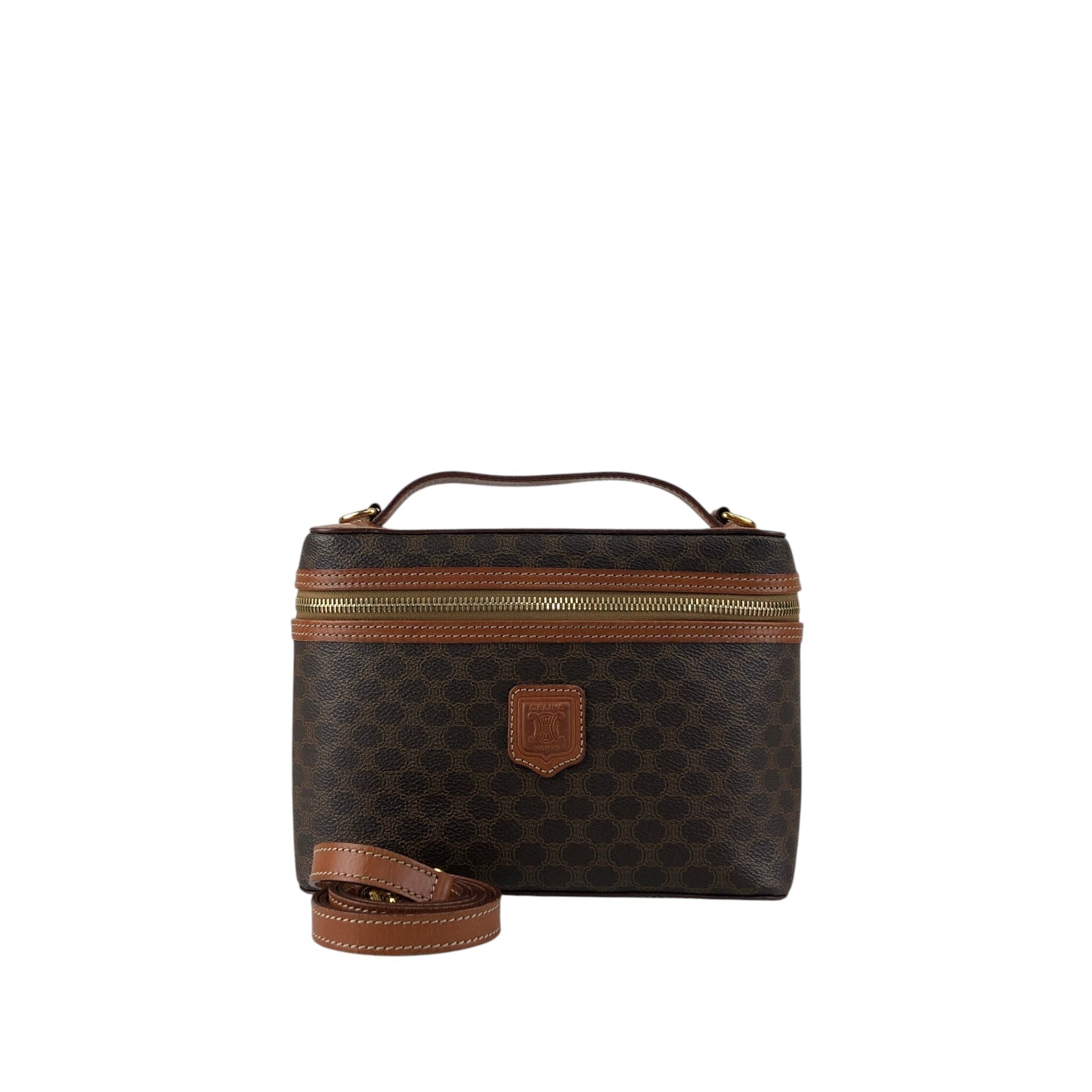 CELINE セリーヌ マカダム ショルダーバッグ ブラウン ブラゾン型押し PVCレザー 2WAY バニティバッグ vintage ヴィンテージ オールド 2h745p