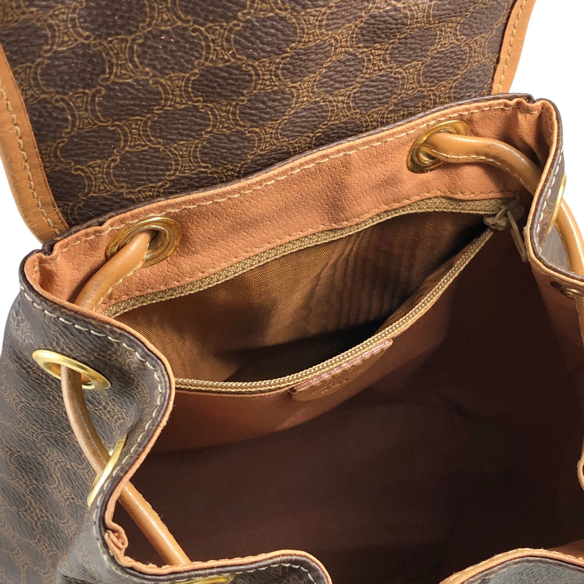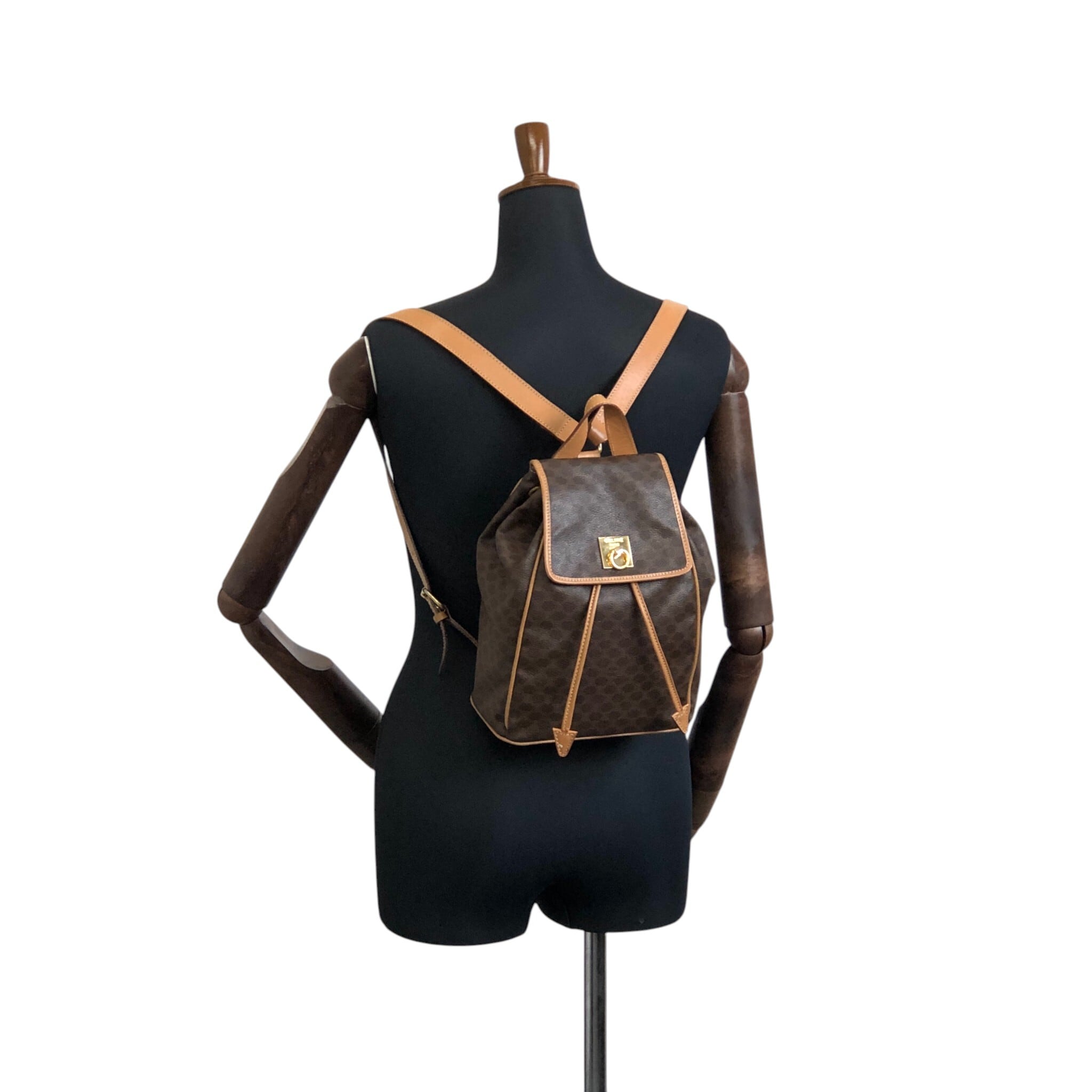 CELINE セリーヌ マカダム バックパック ブラウン ガンチーニ PVCレザー vintage ヴィンテージ オールド b7xgpf