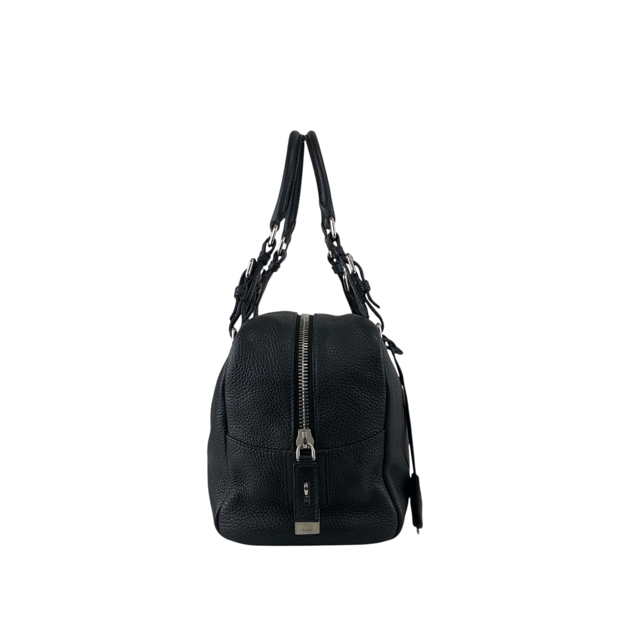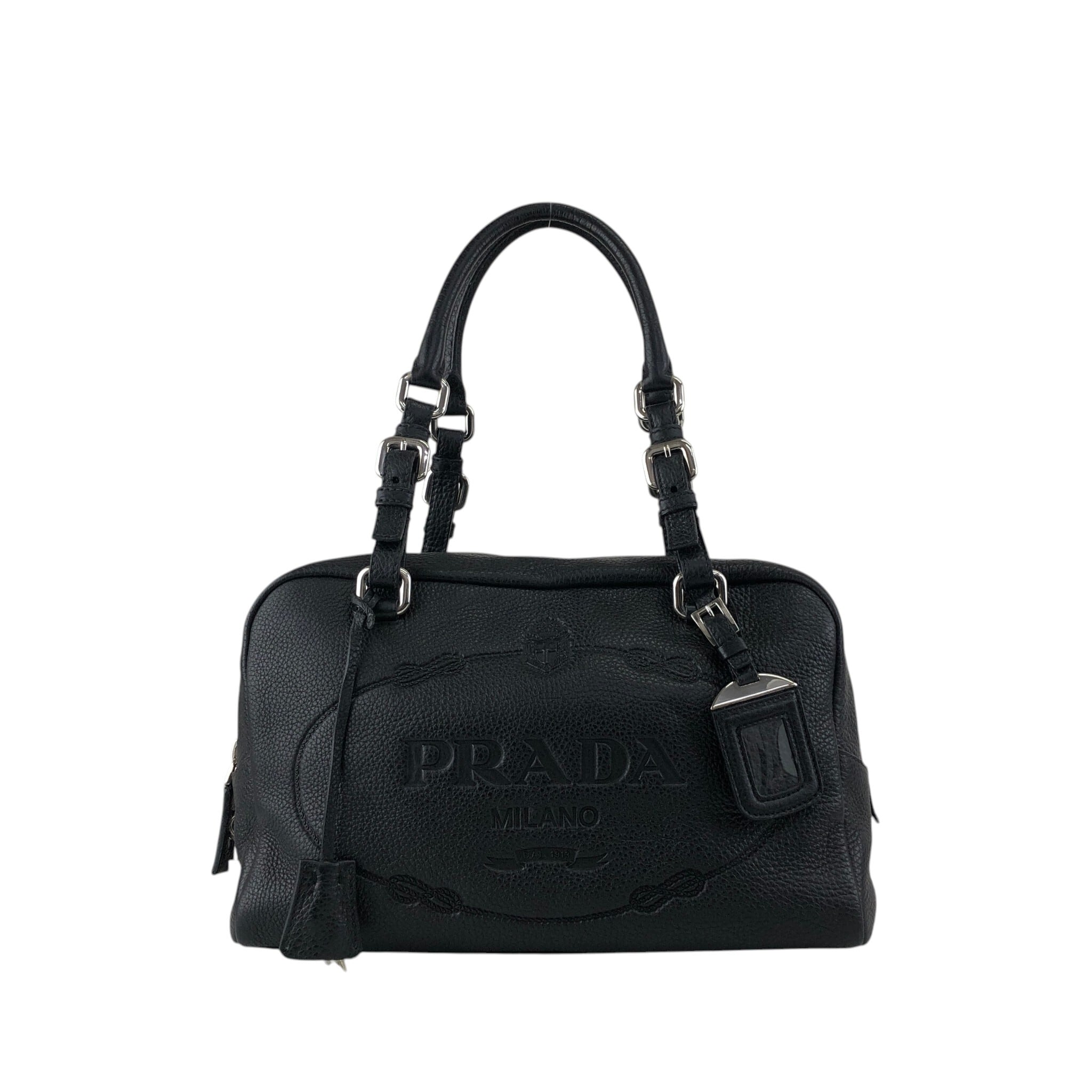 PRADA プラダ ハンドバッグ ブラック ロゴ型押し レザー ミニボストン vintage ヴィンテージ オールド 6kdc52