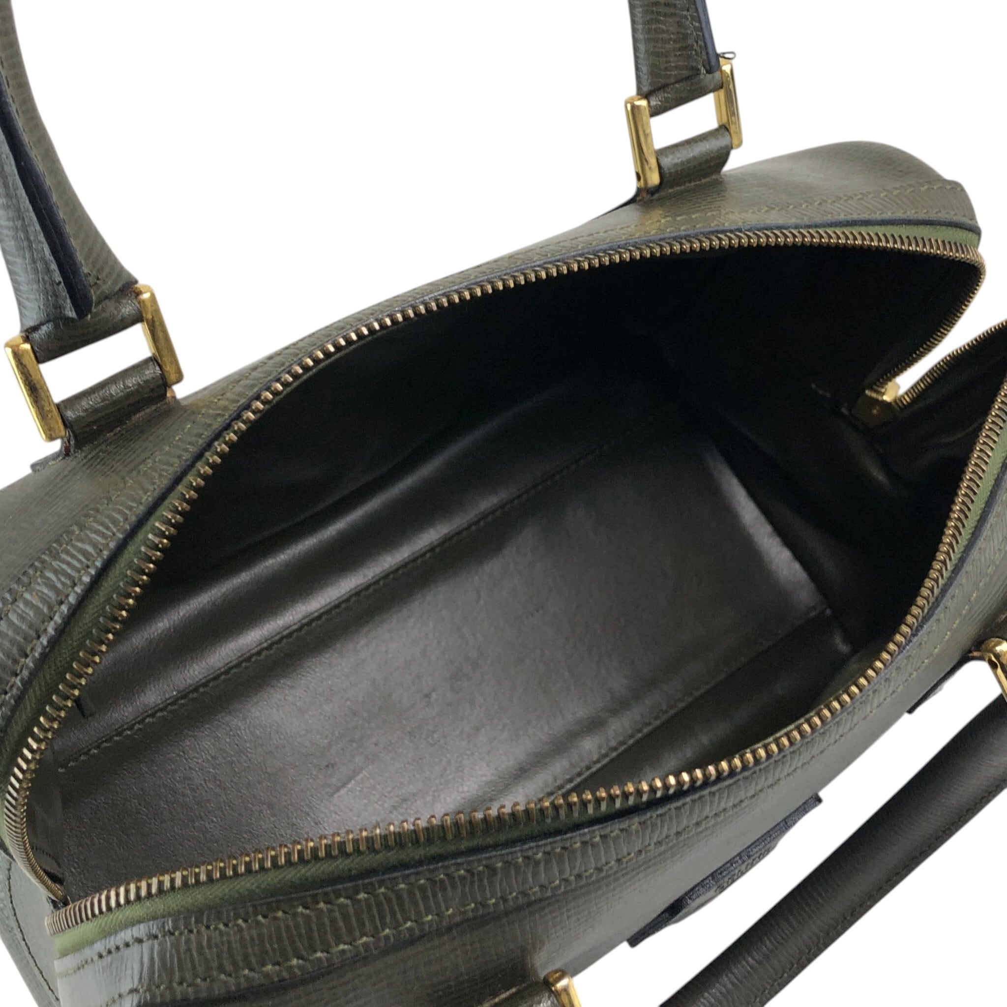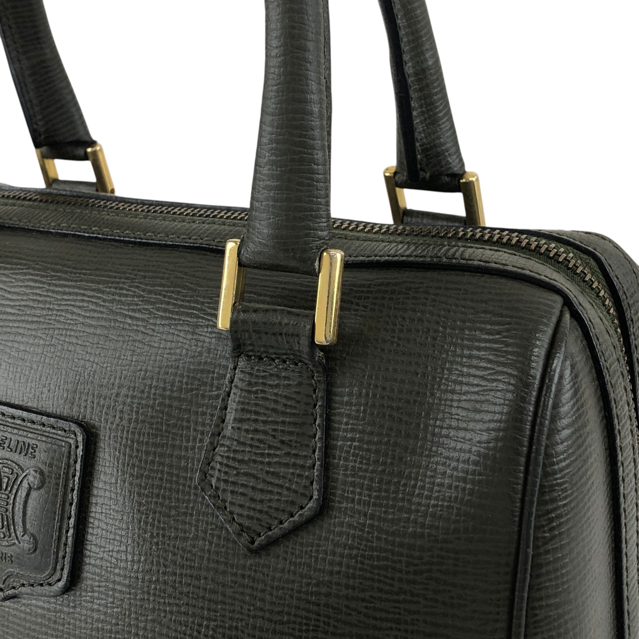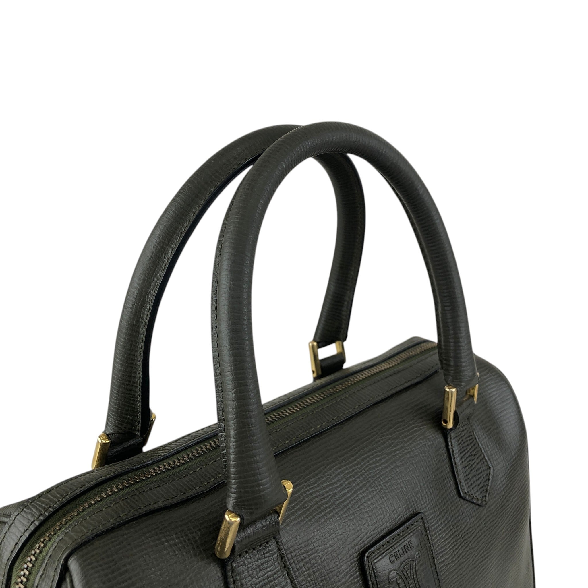 CELINE セリーヌ ハンドバッグ カーキ ブラゾン型押し レザー ミニボストン vintage ヴィンテージ オールド 3aca5z