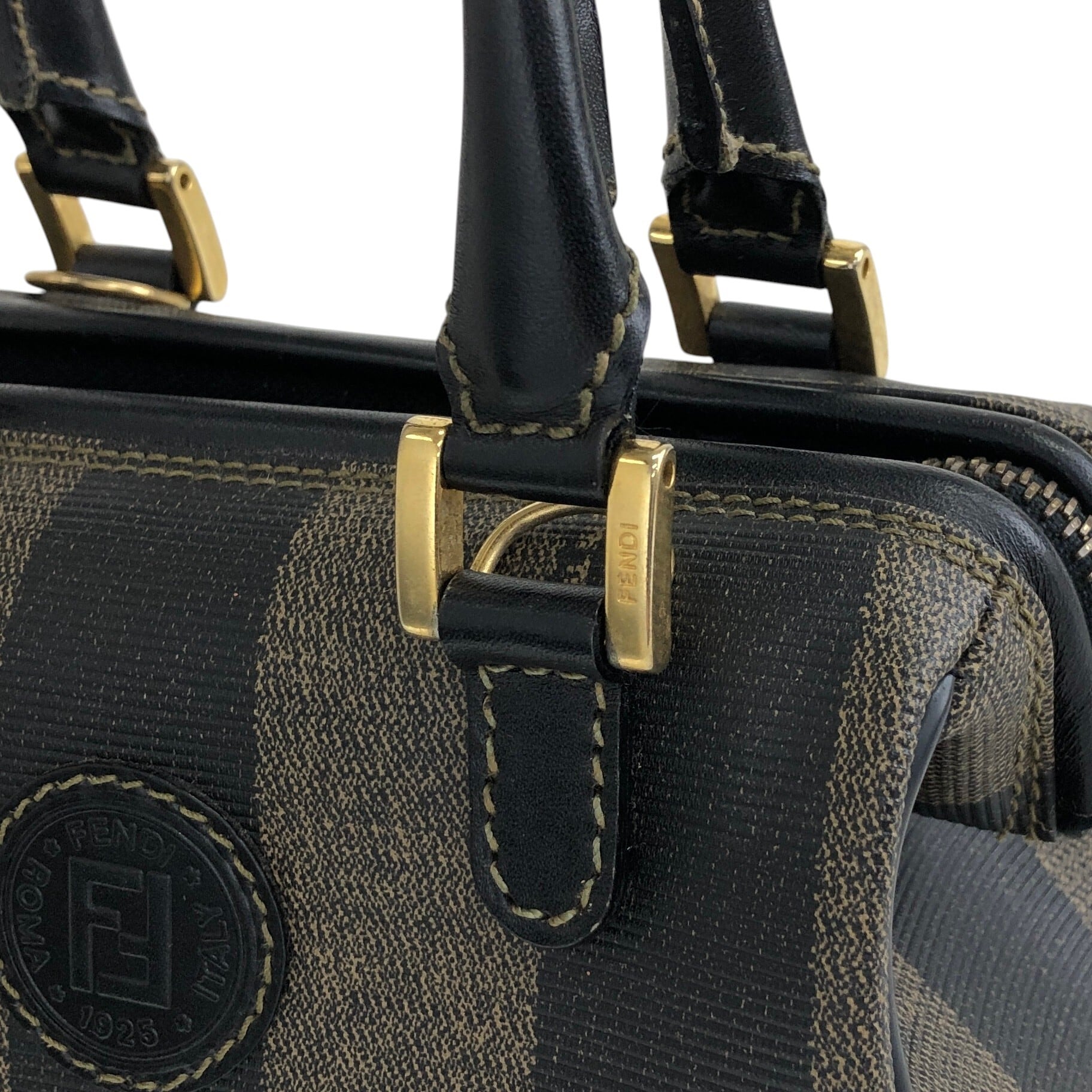 FENDI フェンディ ぺカン ショルダーバッグ ブラウン FFロゴ PVCレザー ミニボストン 2WAY vintage ヴィンテージ オールド bhyk7a