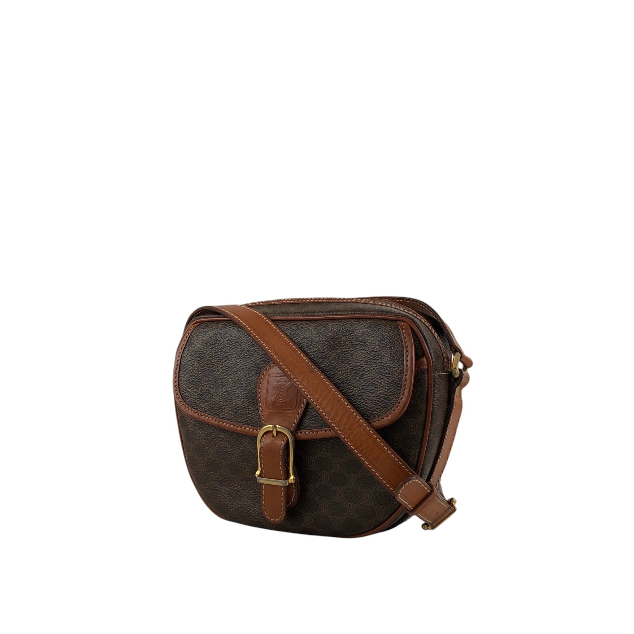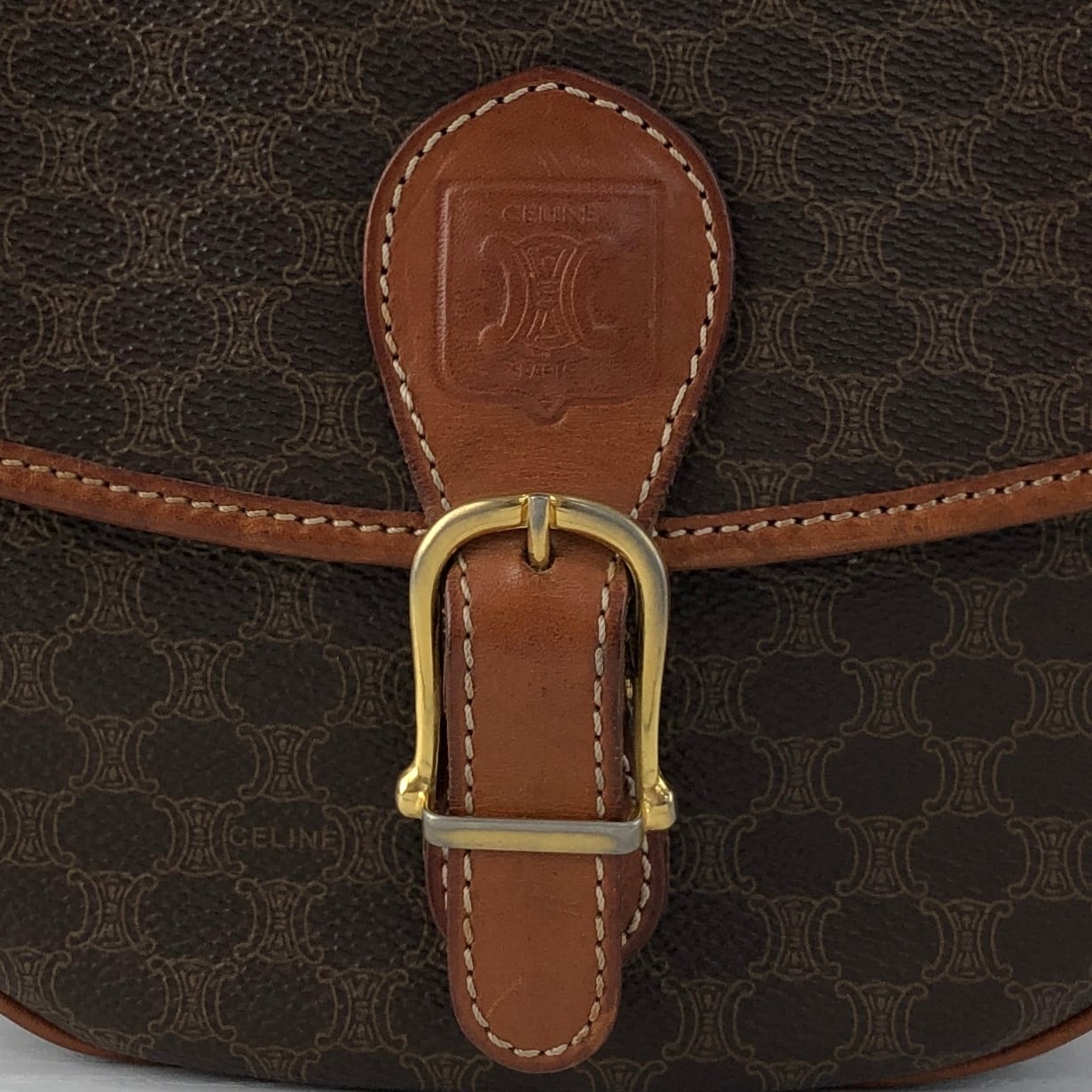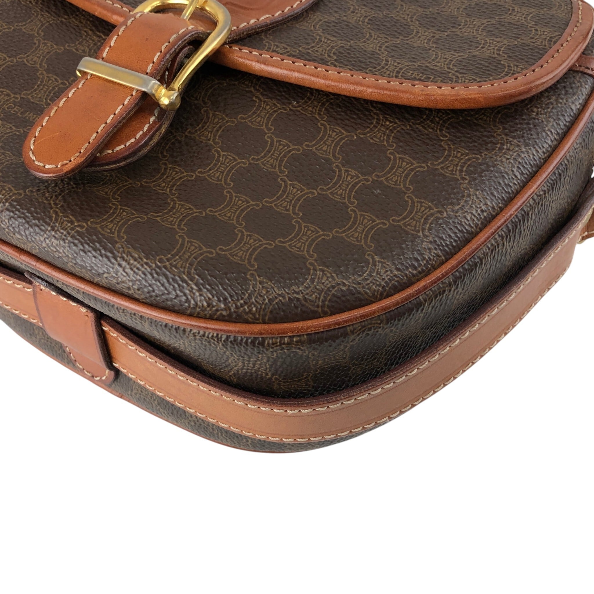 CELINE セリーヌ マカダム ショルダーバッグ ブラウン ブラゾン型押し PVCレザー vintage ヴィンテージ オールド x45cv7