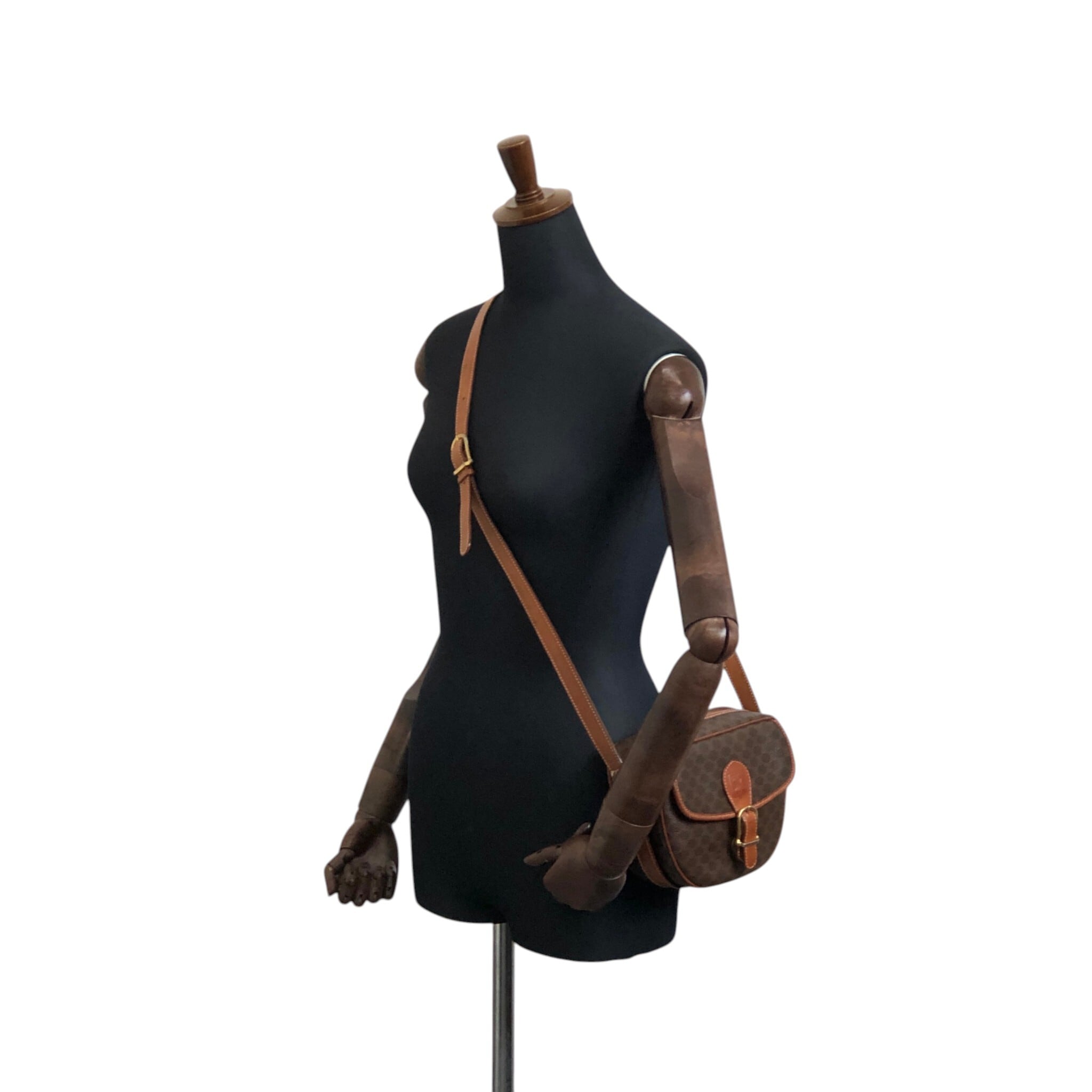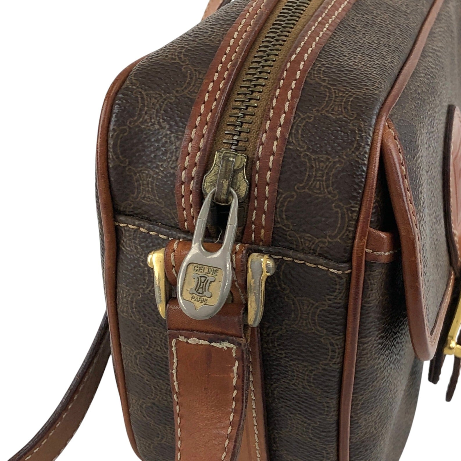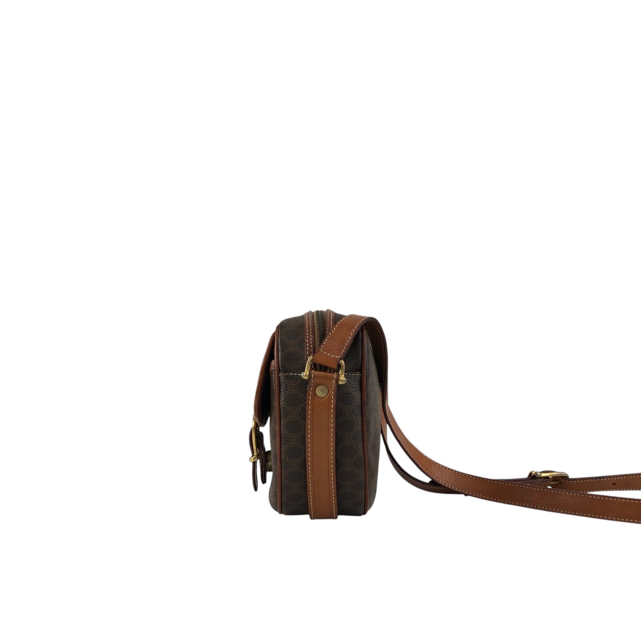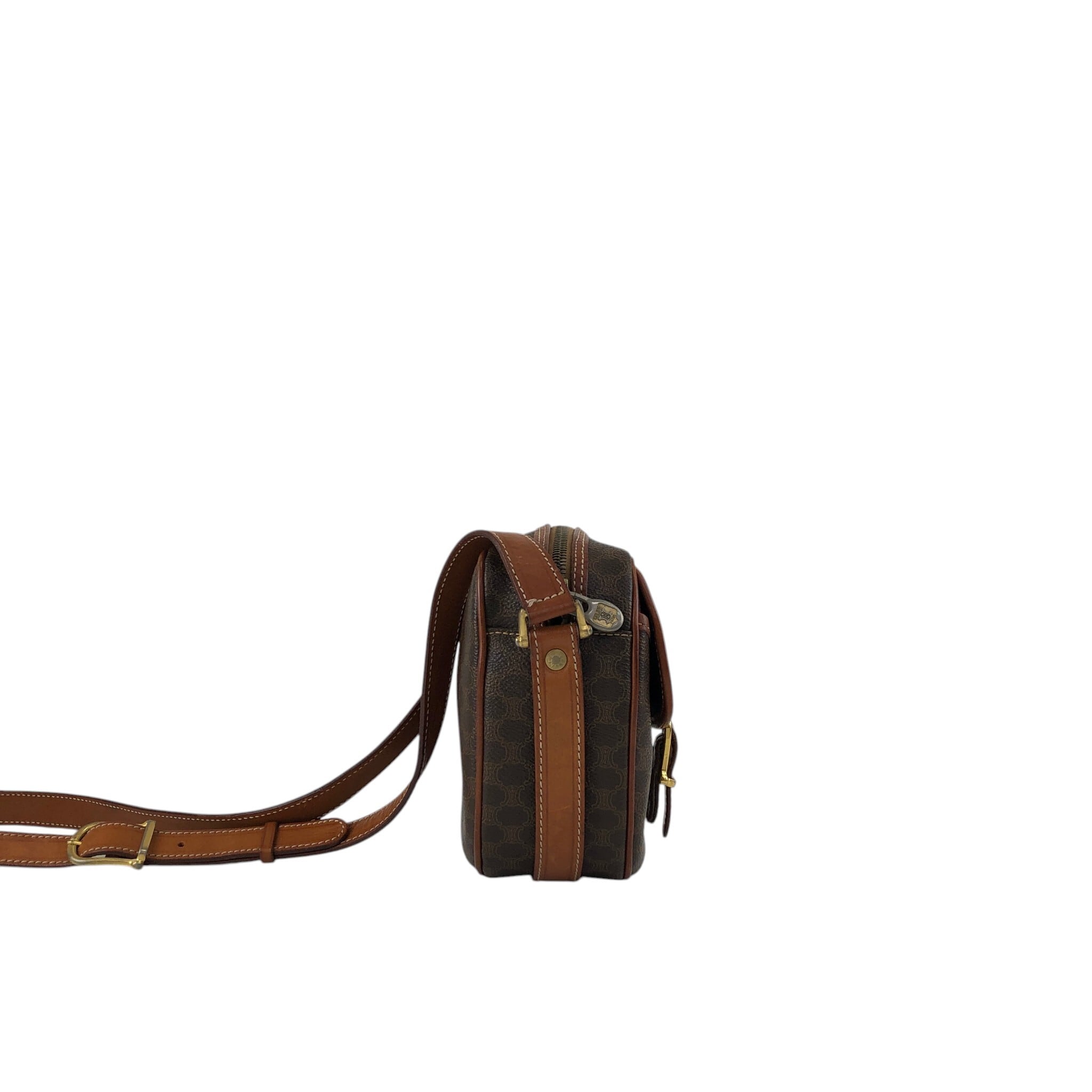 CELINE セリーヌ マカダム ショルダーバッグ ブラウン ブラゾン型押し PVCレザー vintage ヴィンテージ オールド x45cv7