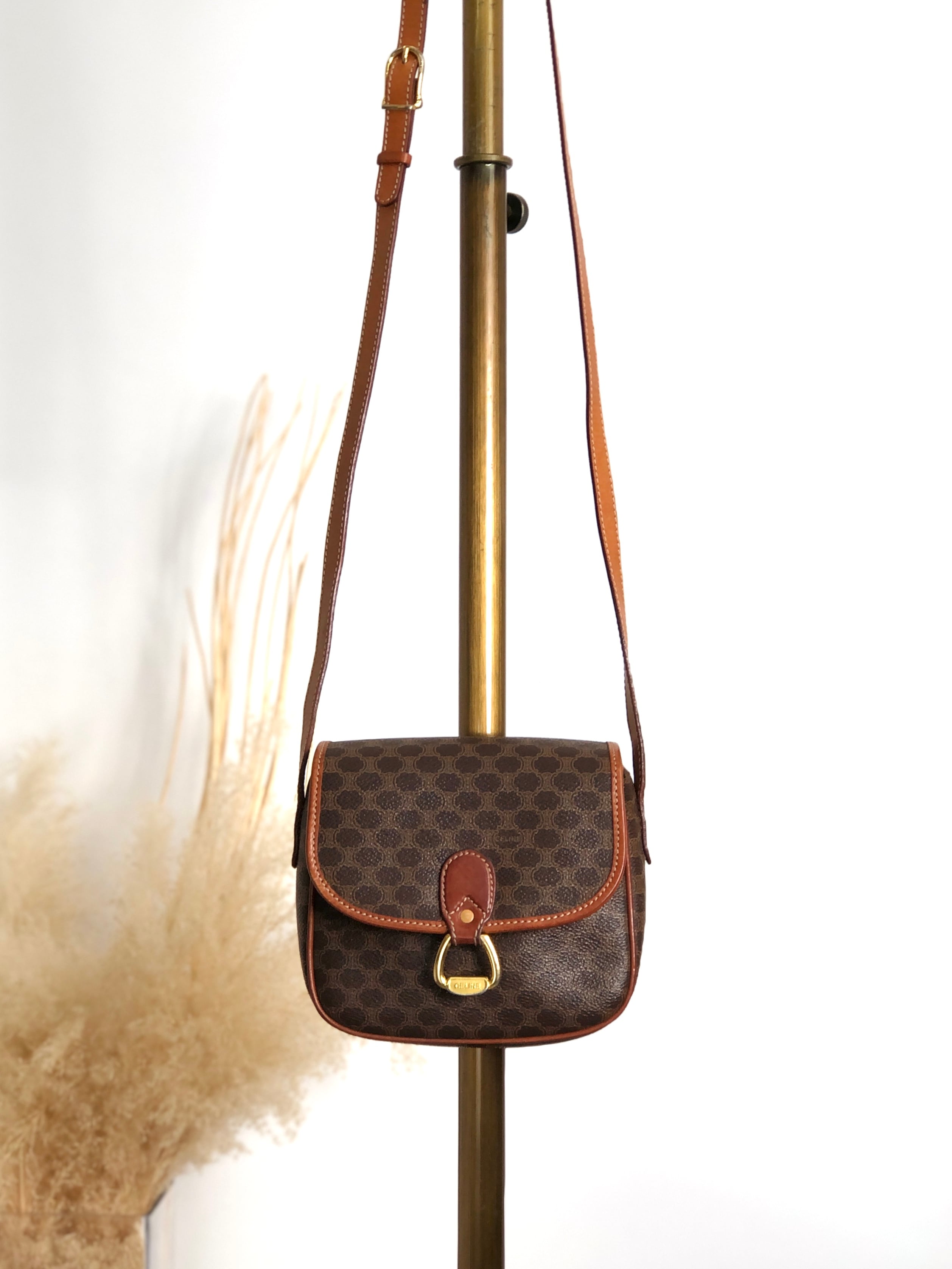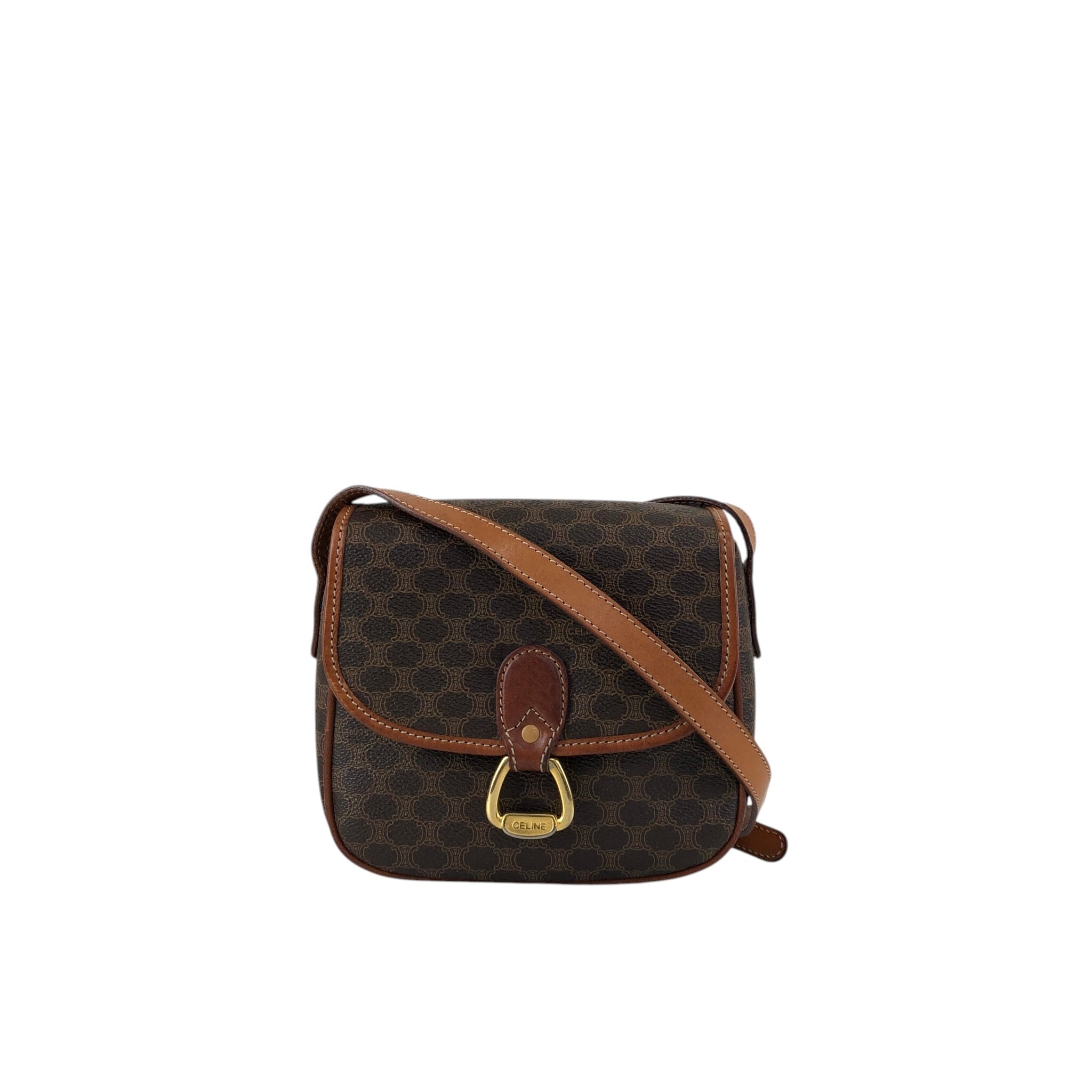 CELINE セリーヌ マカダム ショルダーバッグ ブラウン ホースビット PVCレザー ミニバッグ vintage ヴィンテージ オールド ffjd2x