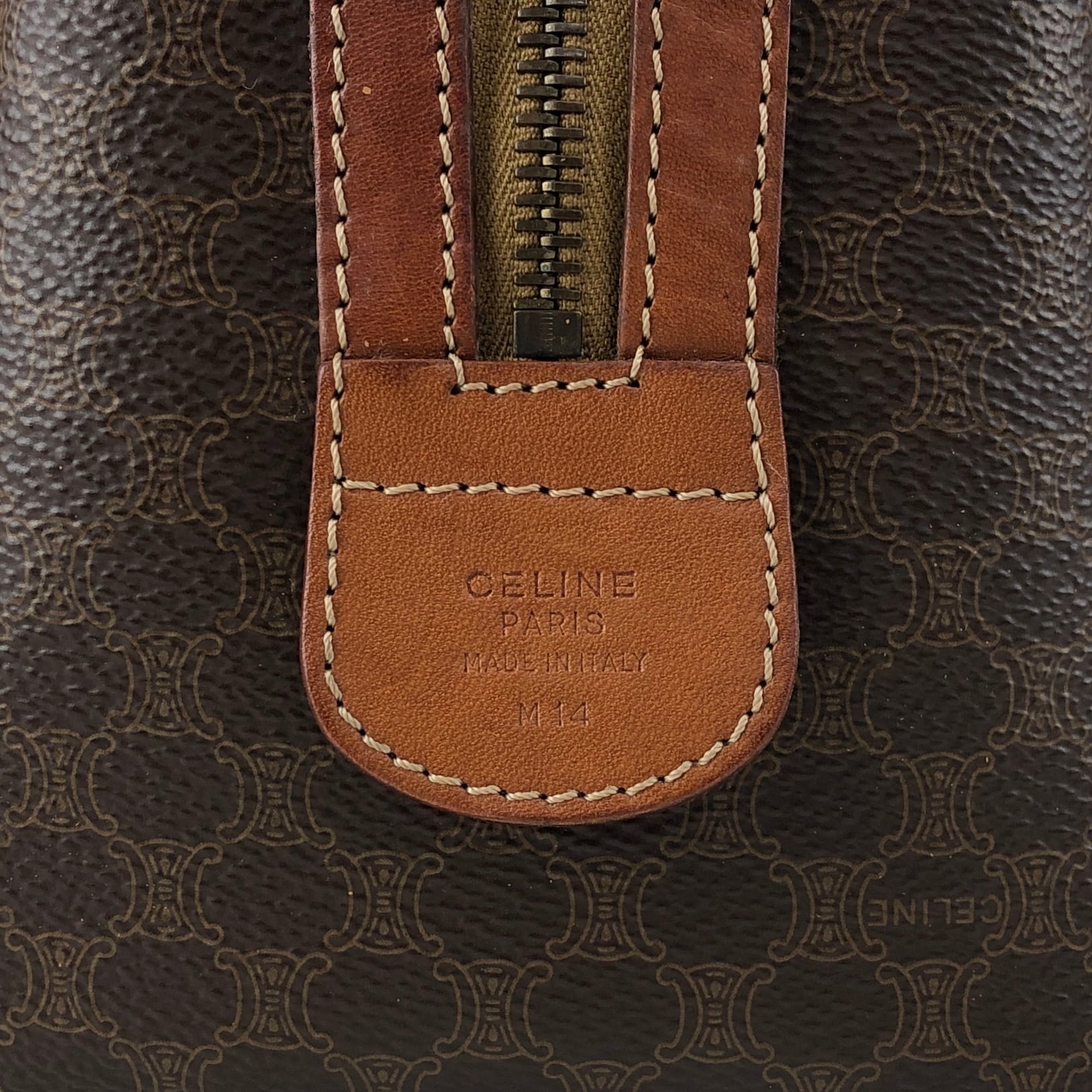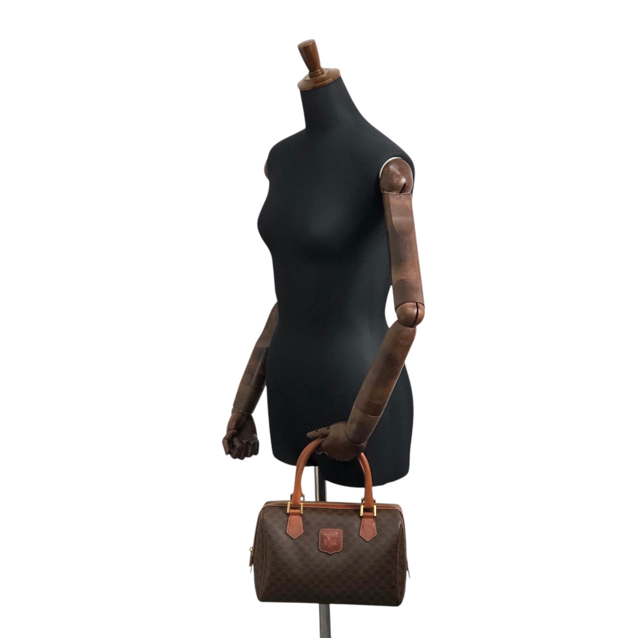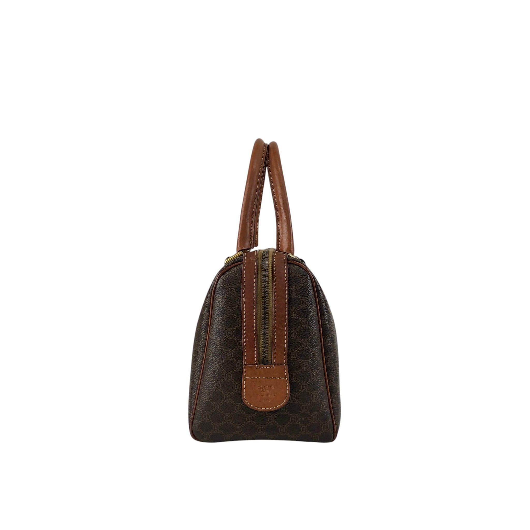 CELINE セリーヌ マカダム ハンドバッグ ブラウン ブラゾン型押し PVCレザー ミニボストン vintage ヴィンテージ オールド f2ydjv